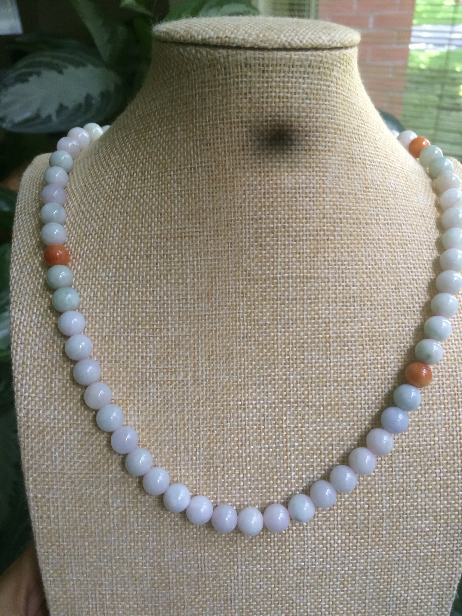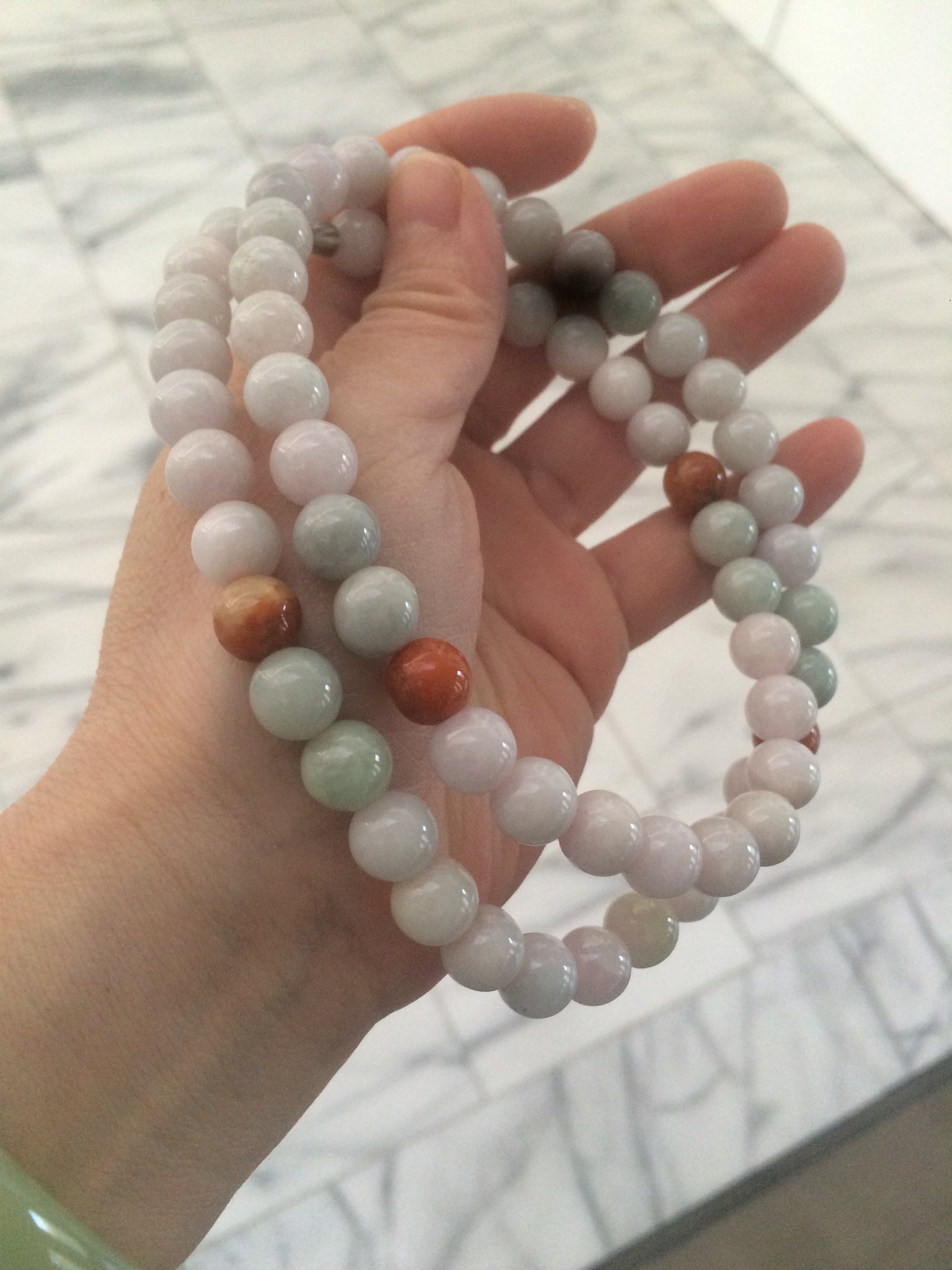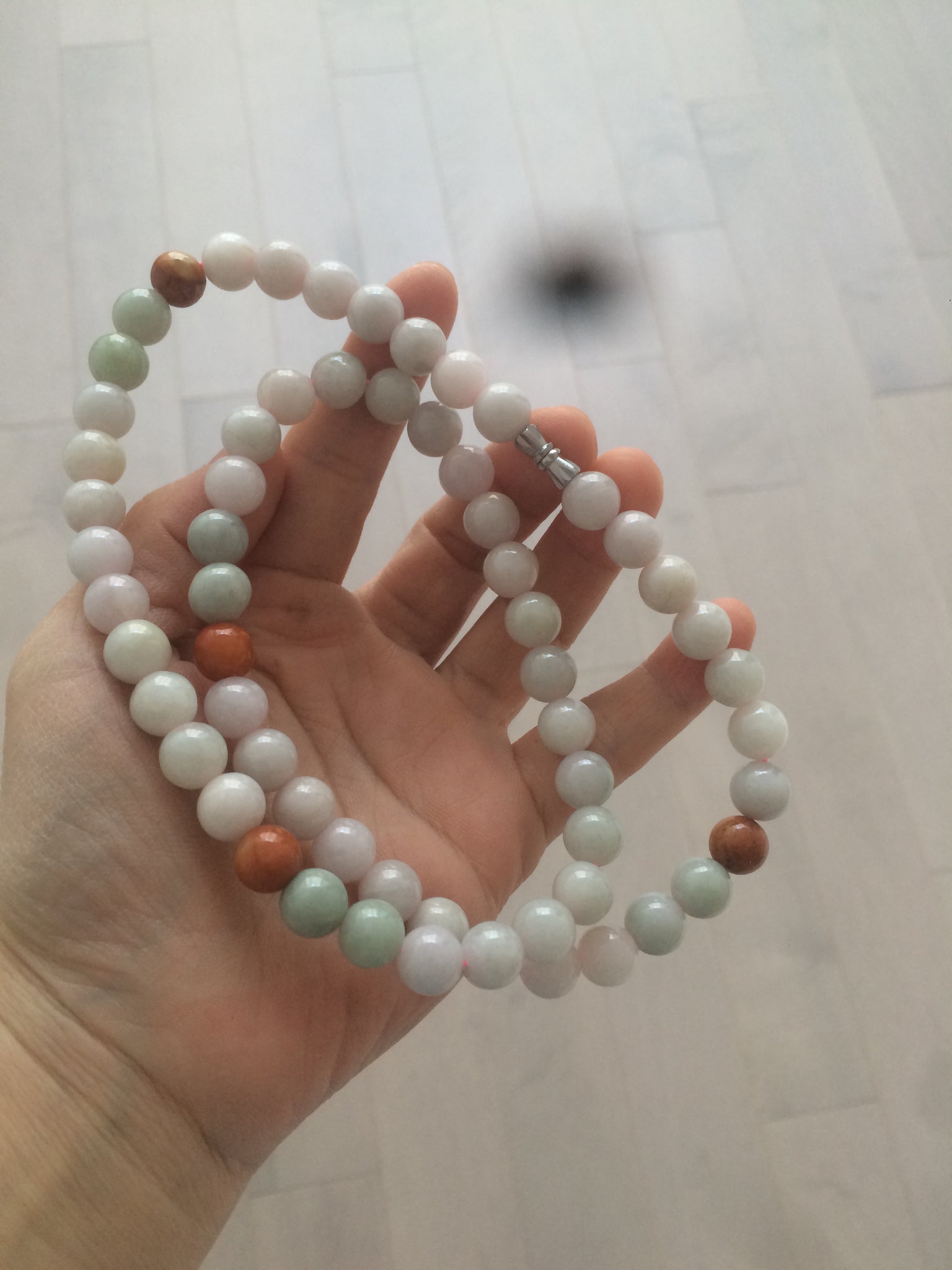 Occasionally, some beads may have cracks or hairlines. Cotton line or color root. The purple is really light, lighter than photos. Without a certificate but 100% natural jadeite jade guaranteed.
