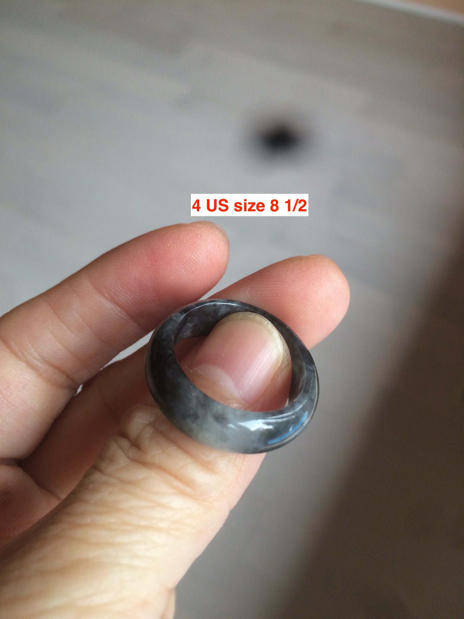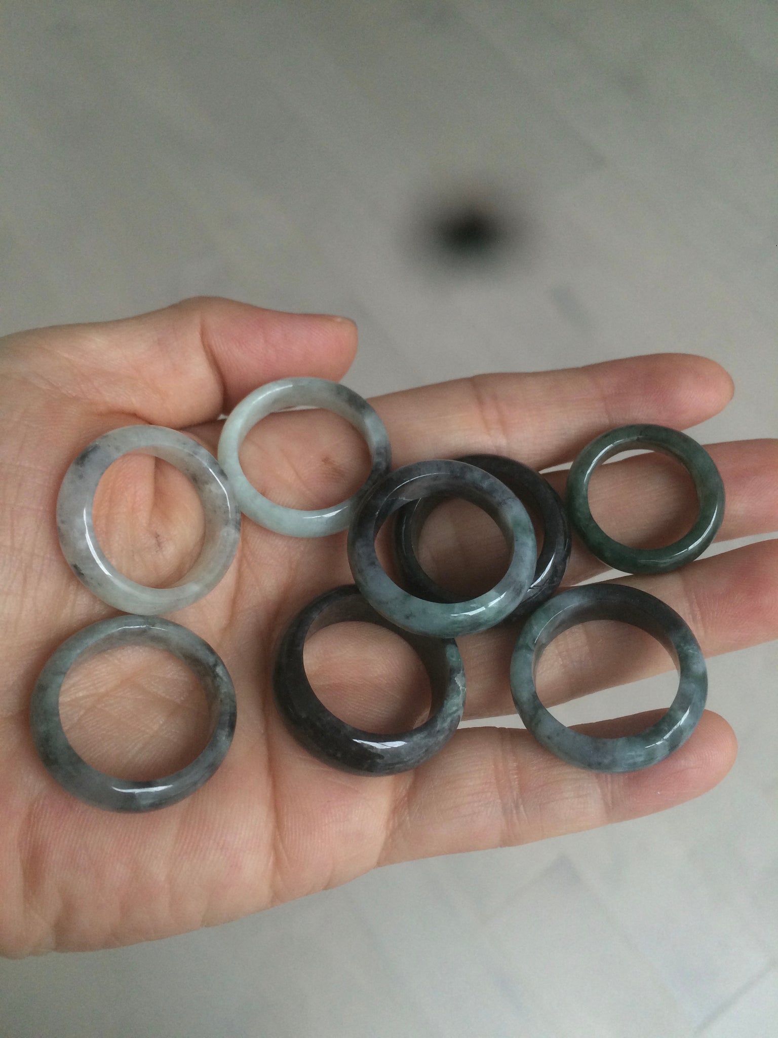 Jadeite jade band ring, different size. All more or less have defects. Please check each item's description for defects. For the ring with an around-the-bangle or cut-through crack. Tight fit is not recommended.