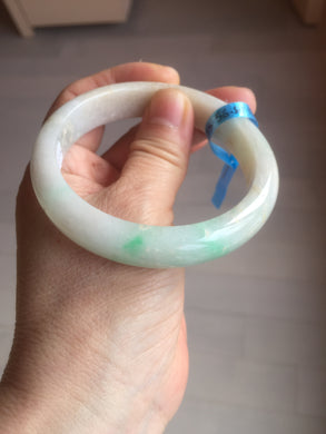 56.8mm certified type A 100% Natural white/light green jadeite jade bangle B75-9276