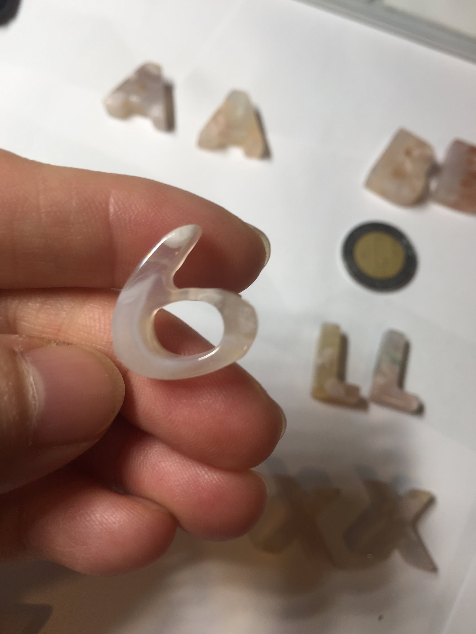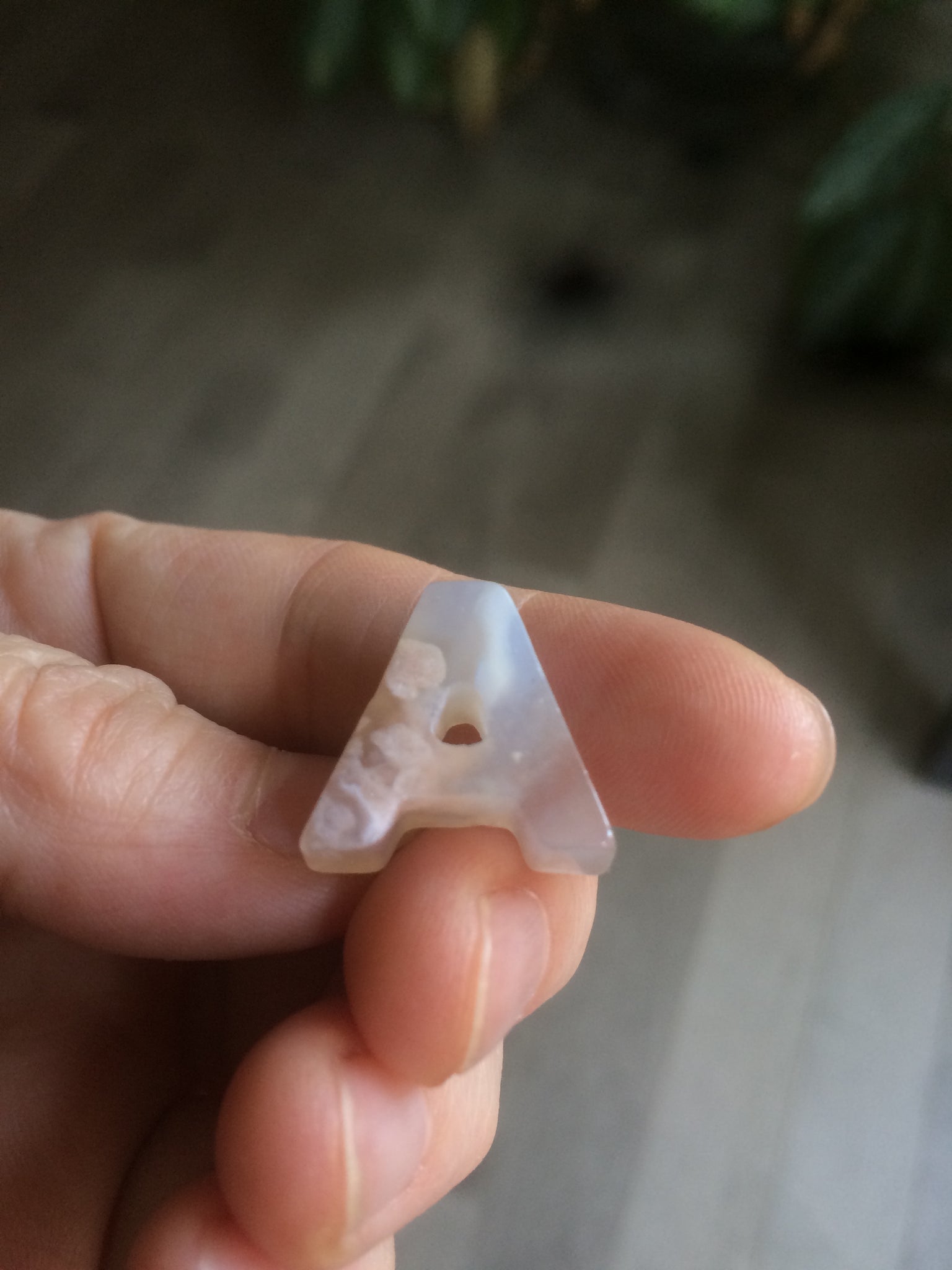 1, It is a pure letter. It doesn't have an extra hole on it. It is a supply. You have to decide what you want to create with it.