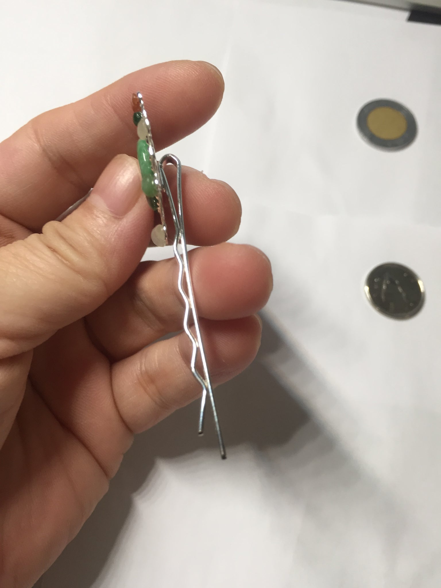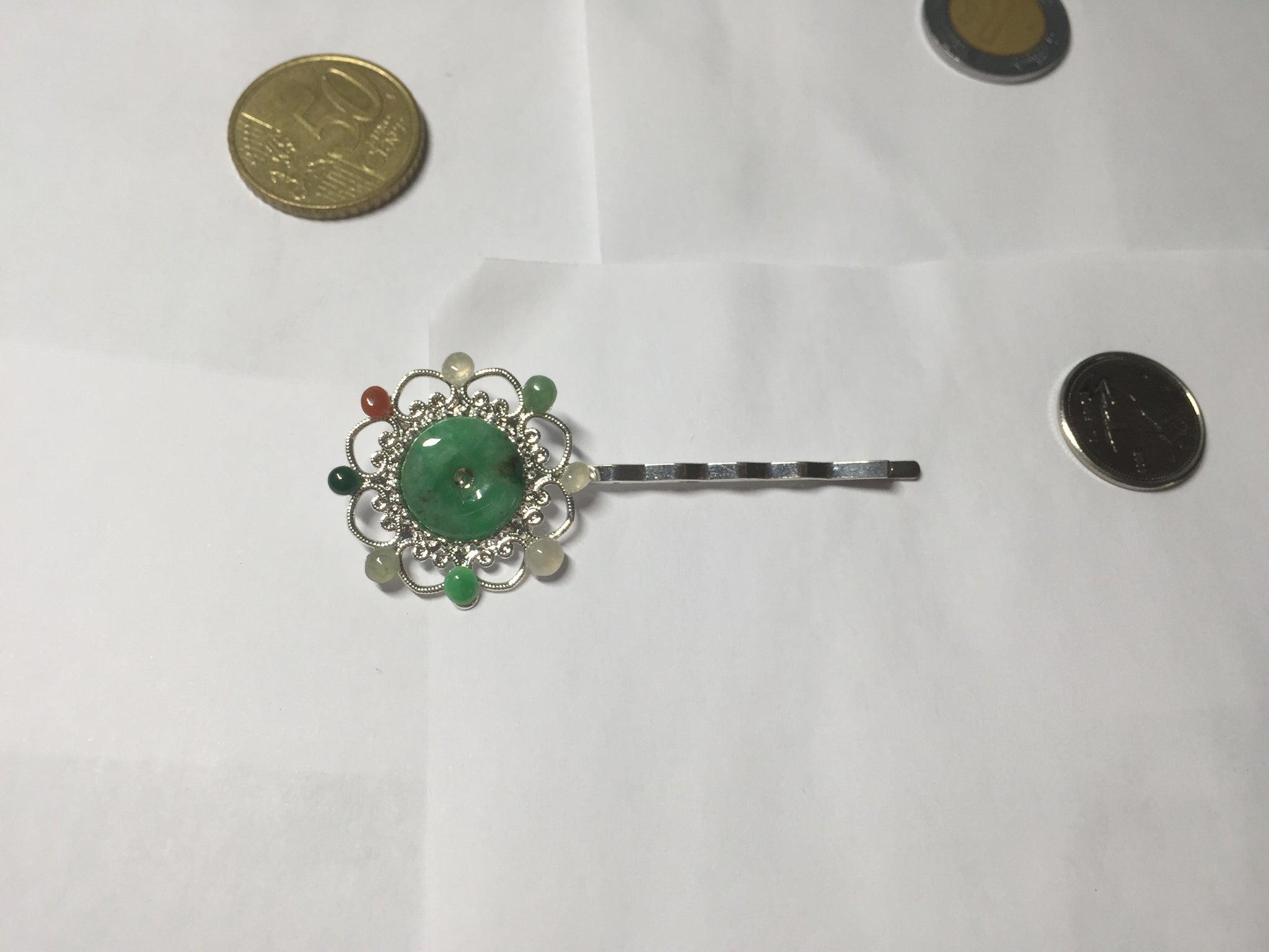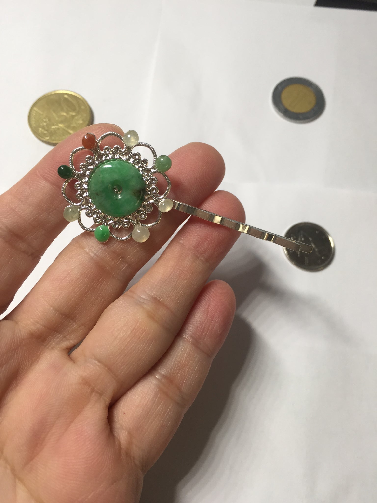 100% natural Type A sunny green red white Jadeite Bead flower hair clip PD167