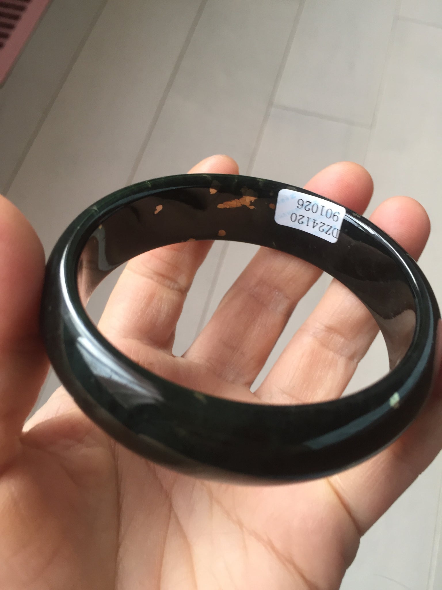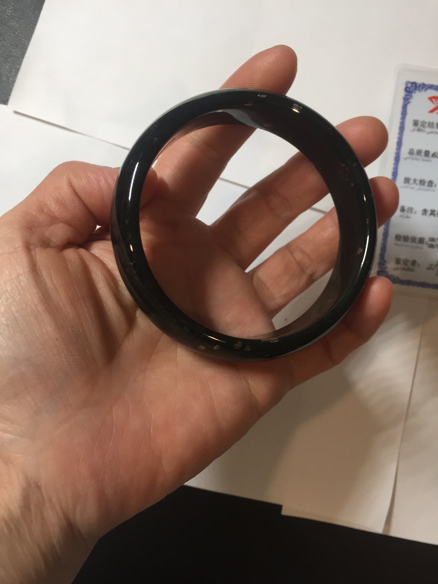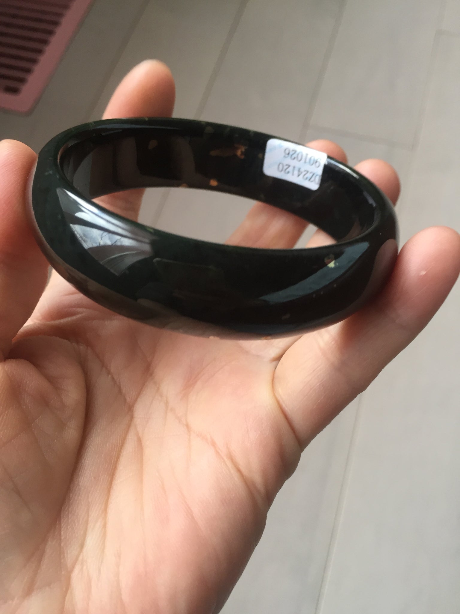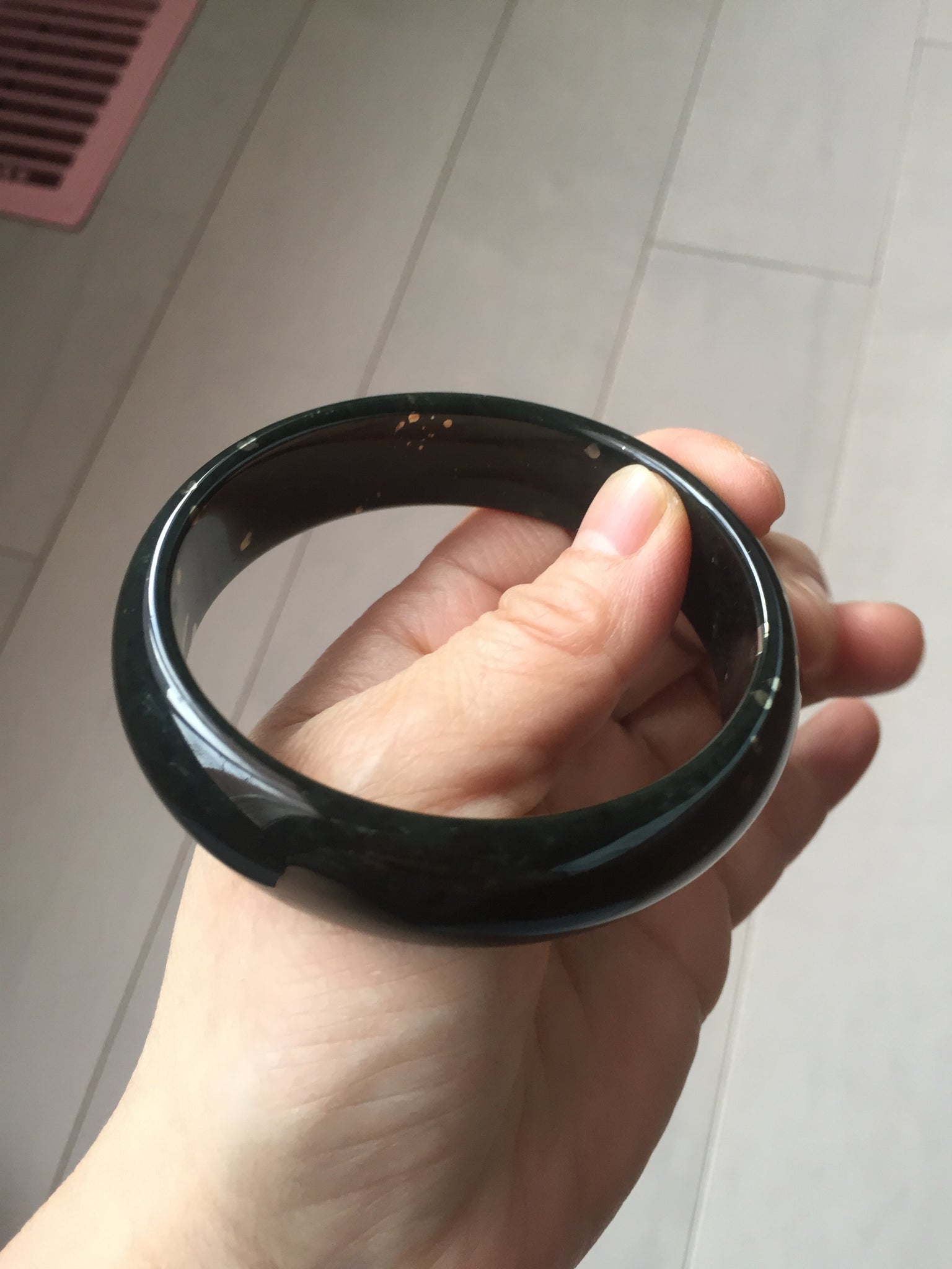 No crack. No hairline. Some metal spots. The metal spots are naturally formed, not inlaid. It is dark green. Under normal light, it is more close to black.