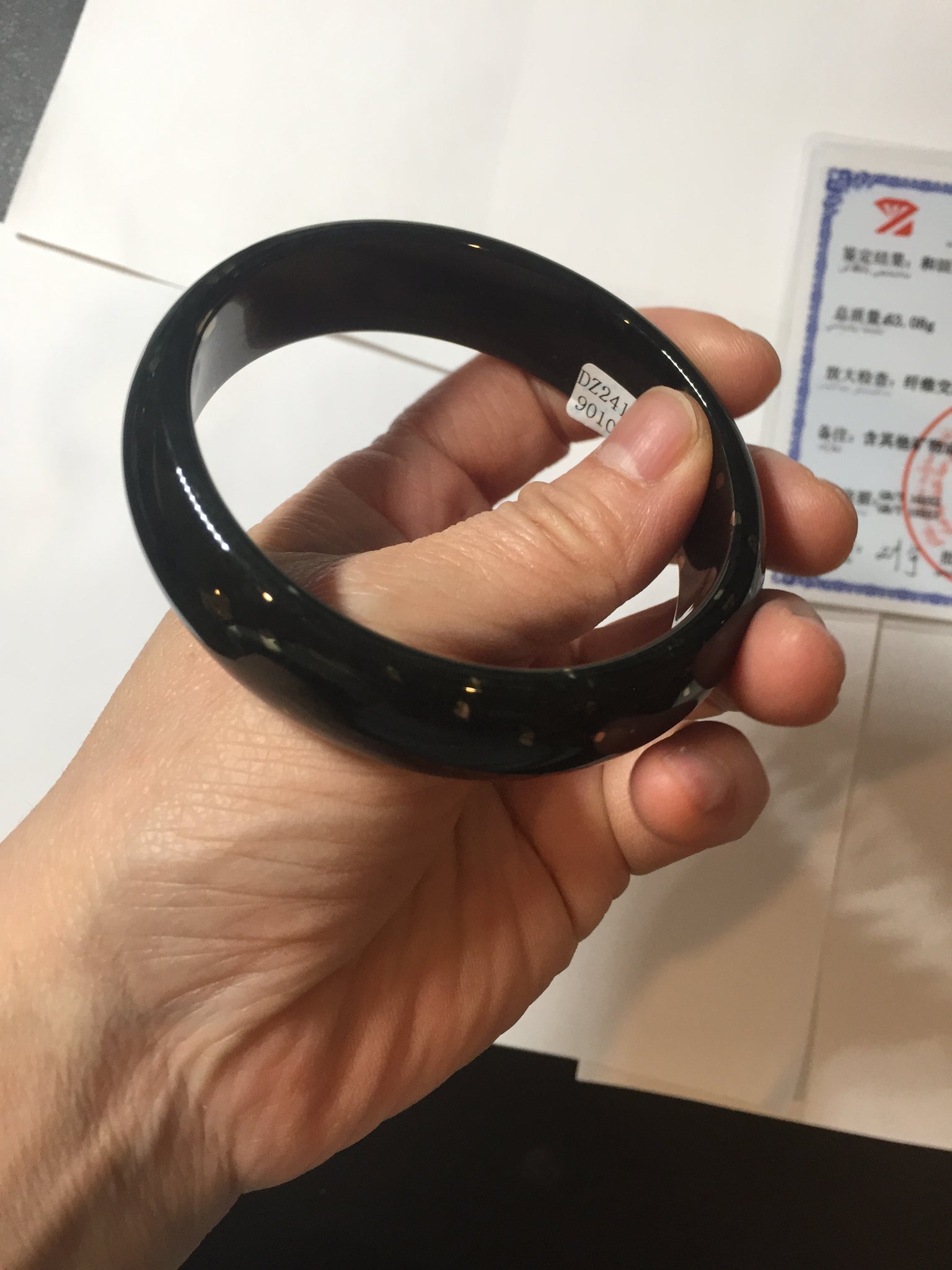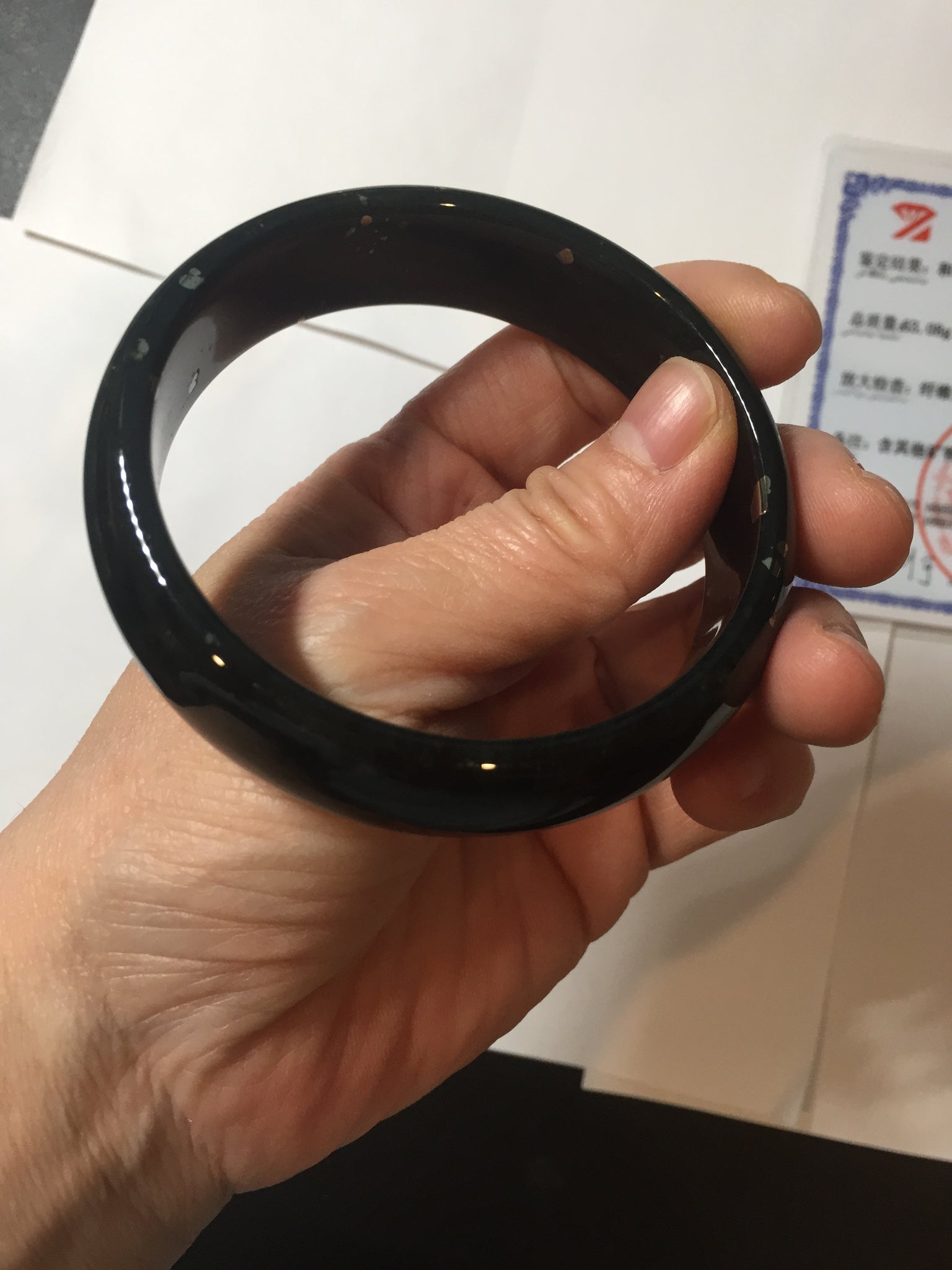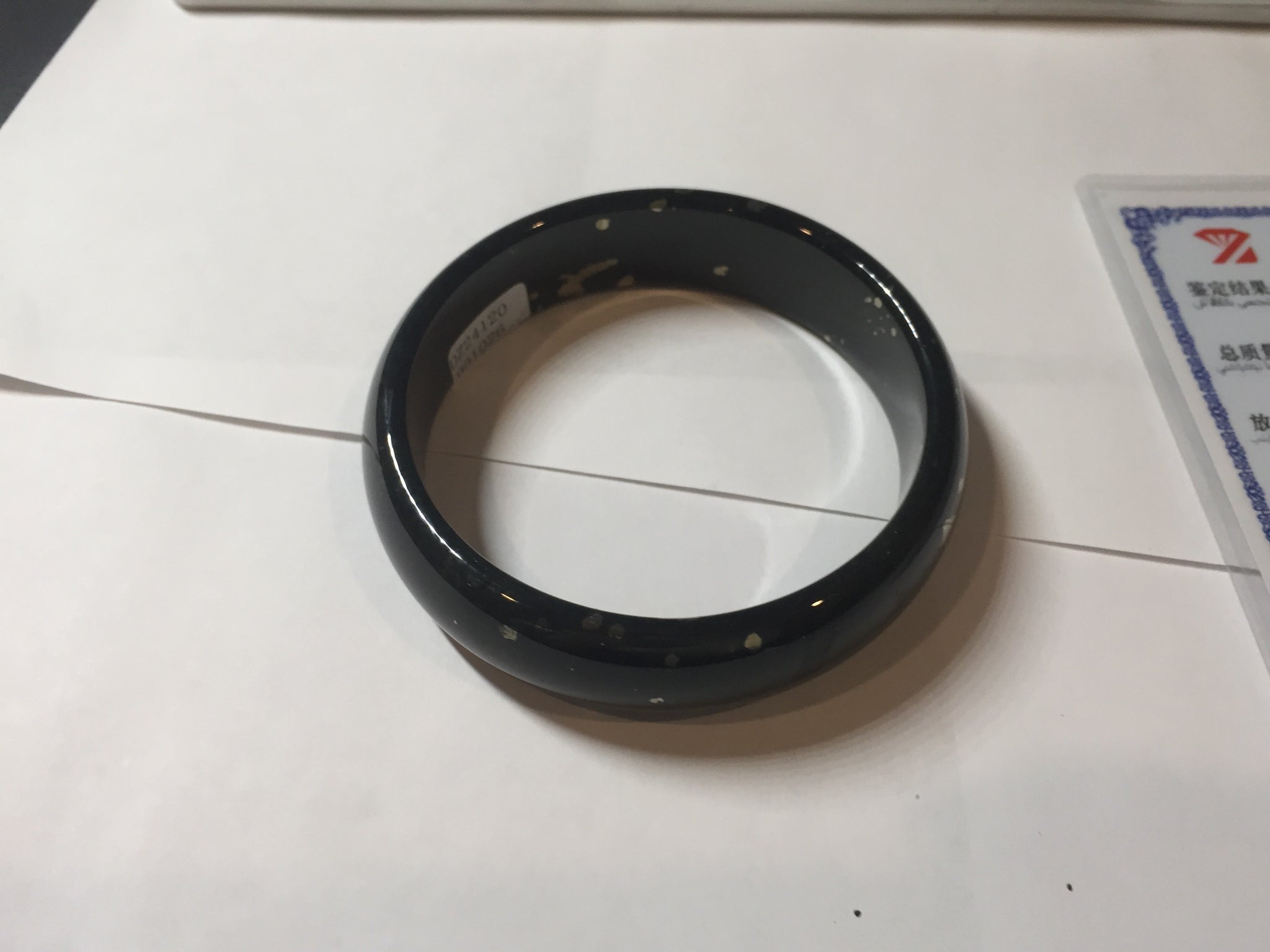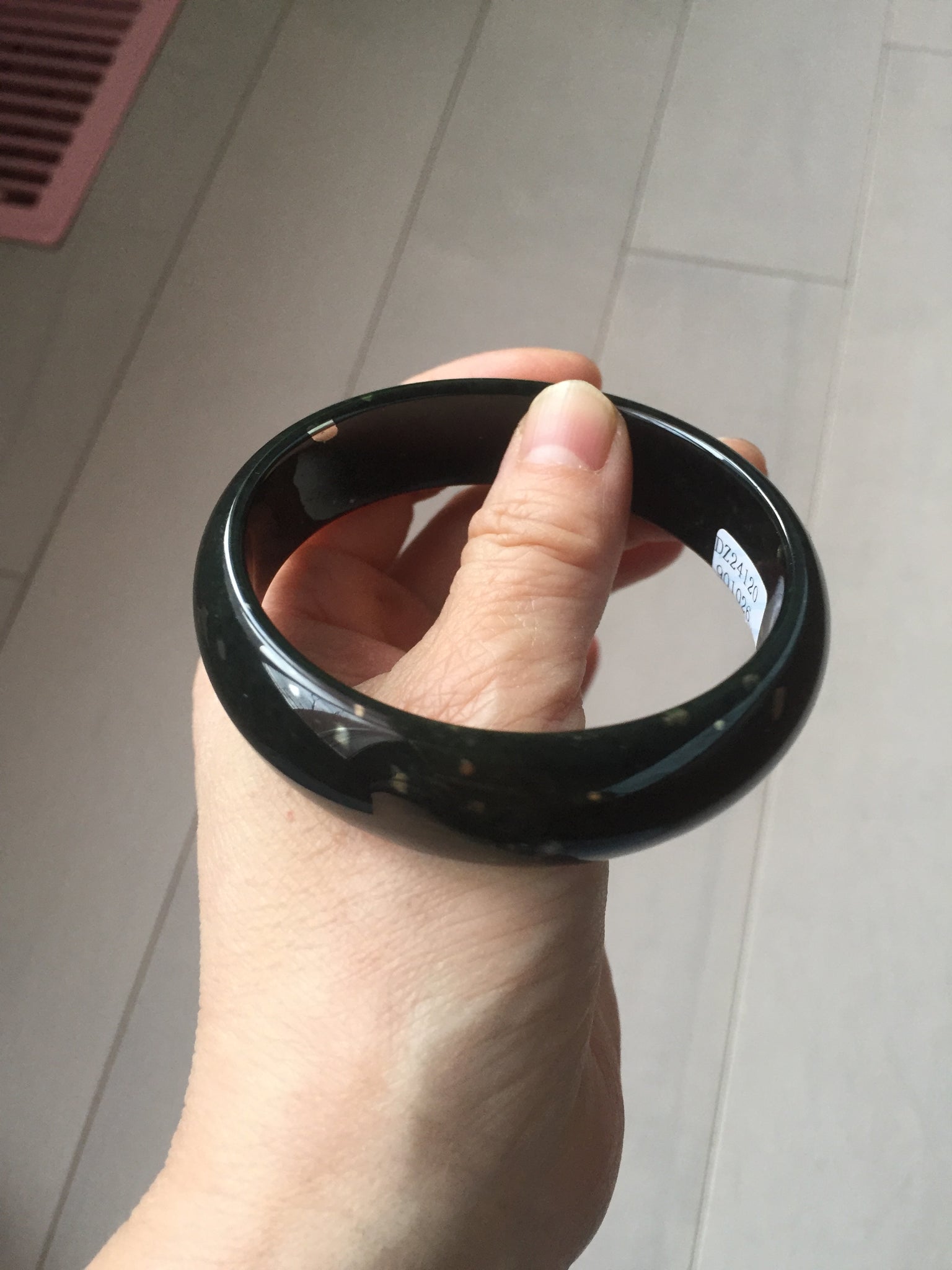 No crack. No hairline. Some metal spots. The metal spots are naturally formed, not inlaid. It is dark green. Under normal light, it is more close to black.