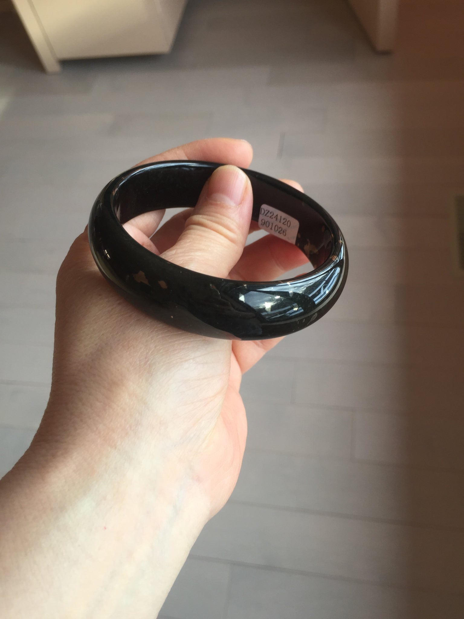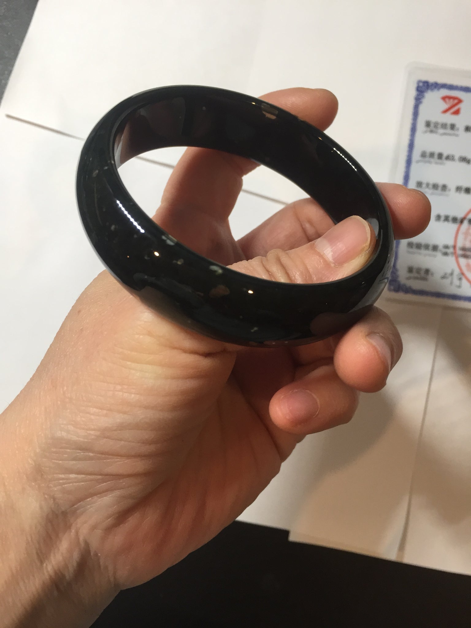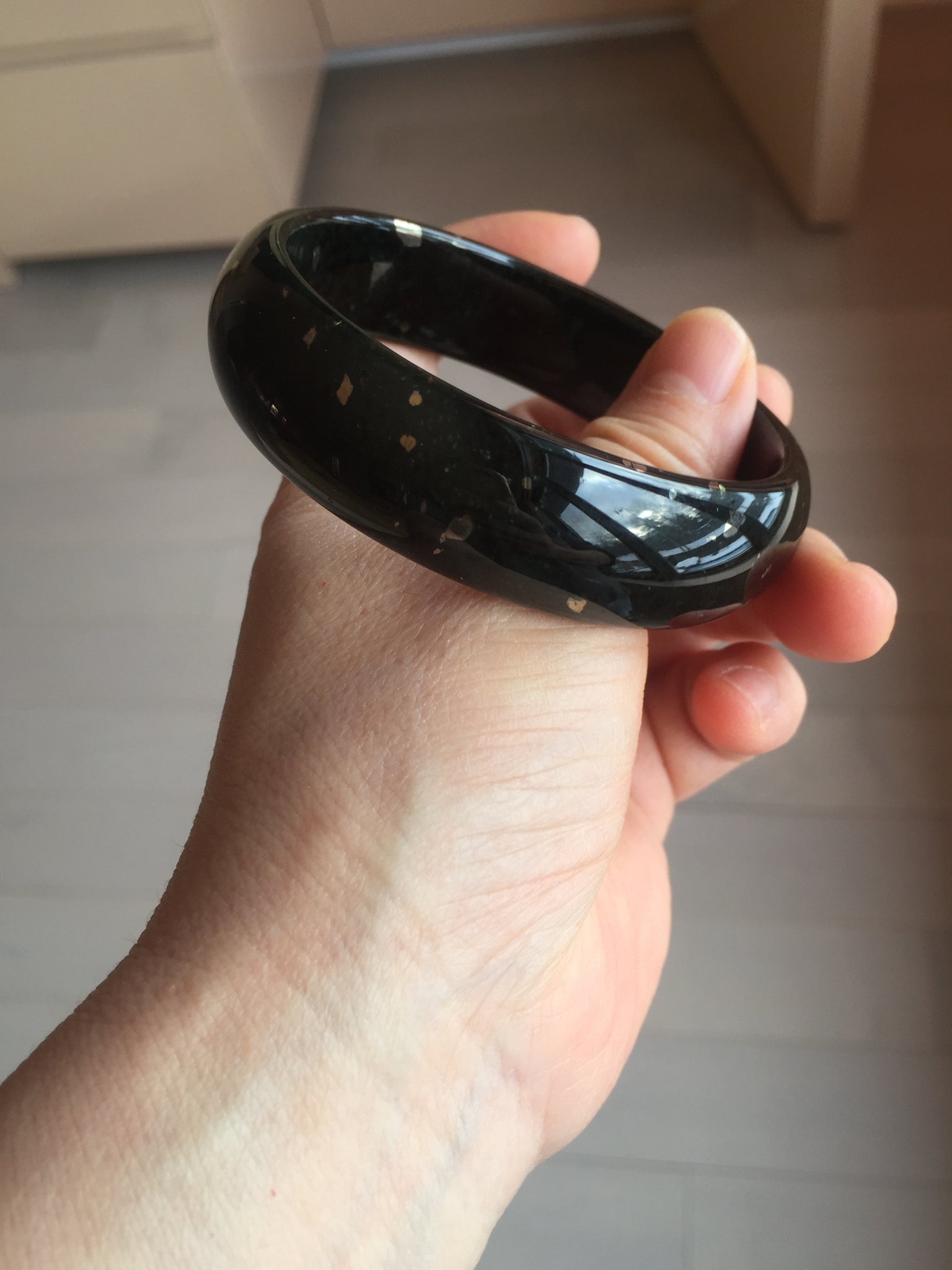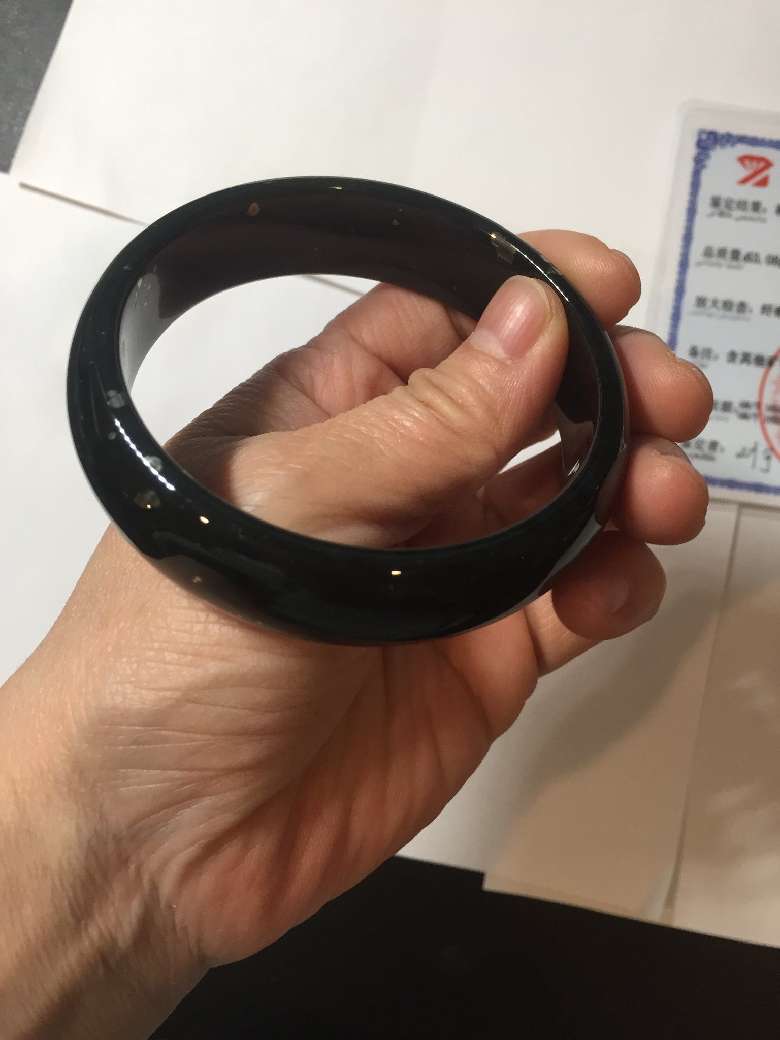 No crack. No hairline. Some metal spots. The metal spots are naturally formed, not inlaid. It is dark green. Under normal light, it is more close to black.
