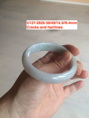 53-57mm Type A 100% Natural light green/white Jadeite Jade bangle (with defects) group GL15