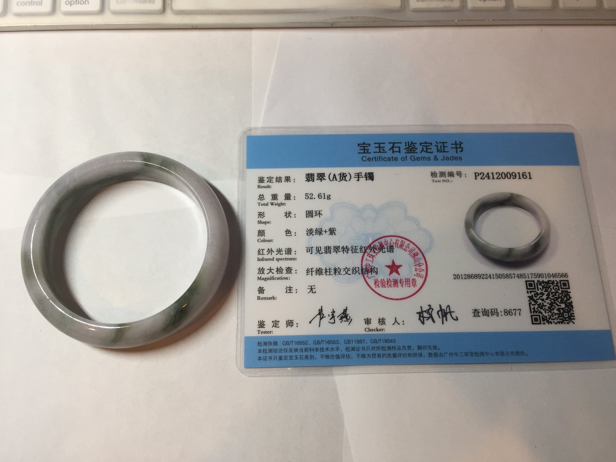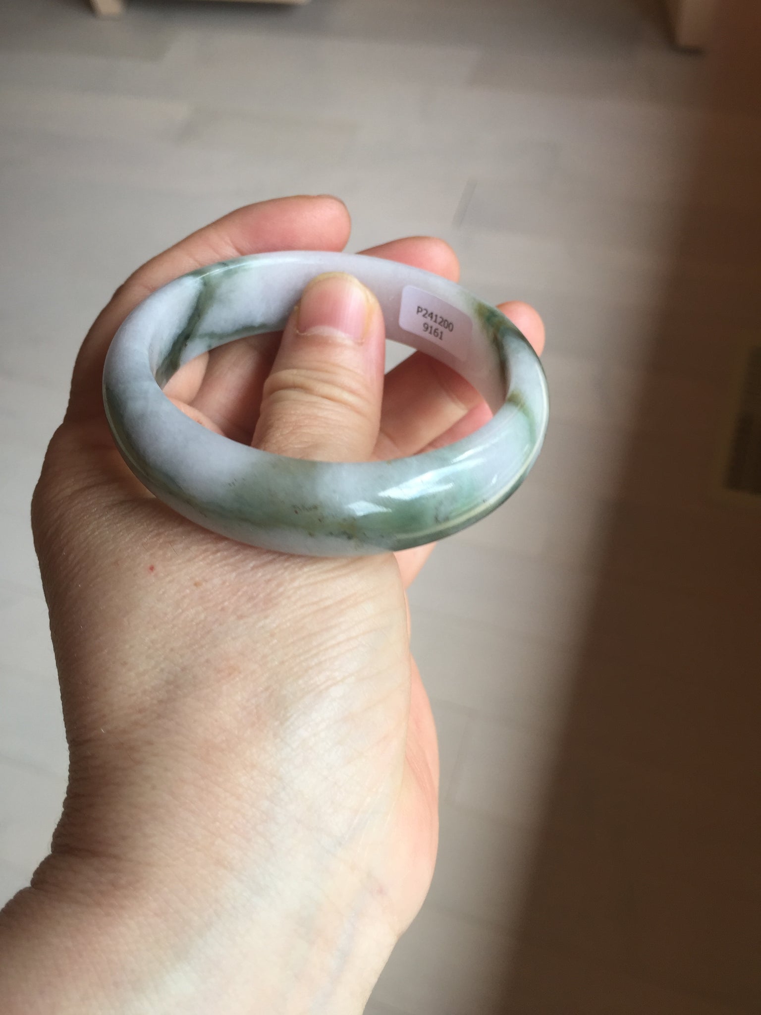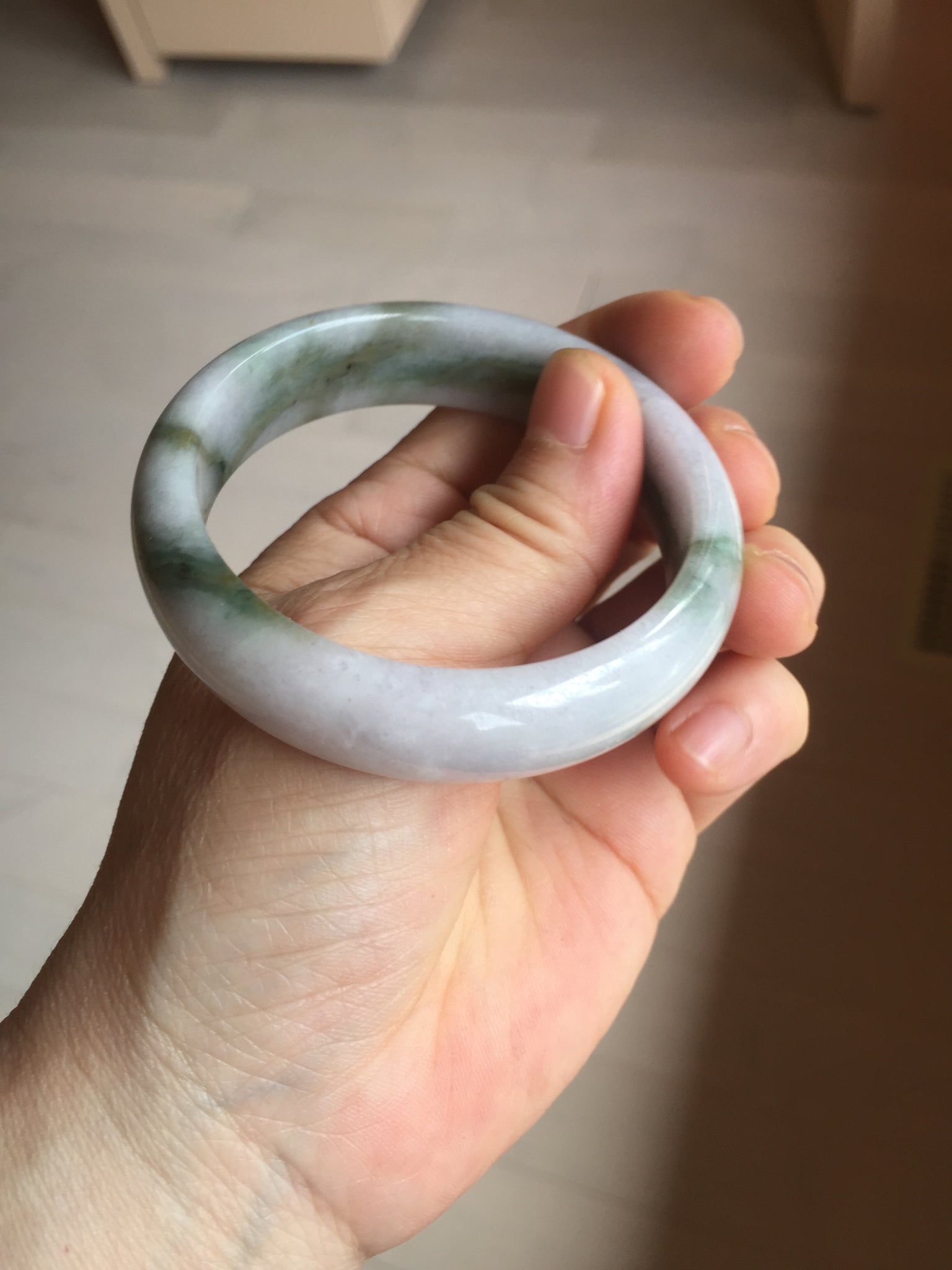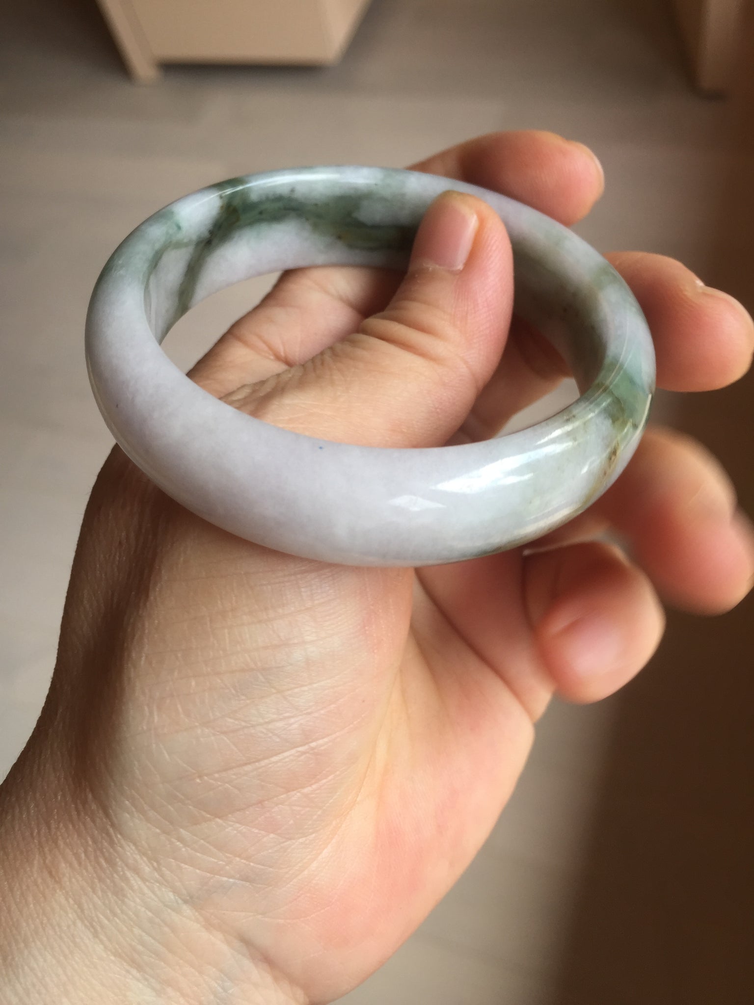 This bangle has flowing elegant and natural green veins, quite like green gauze scarf drifting through gentle breeze. I name this bangle as "苏堤绕绿".