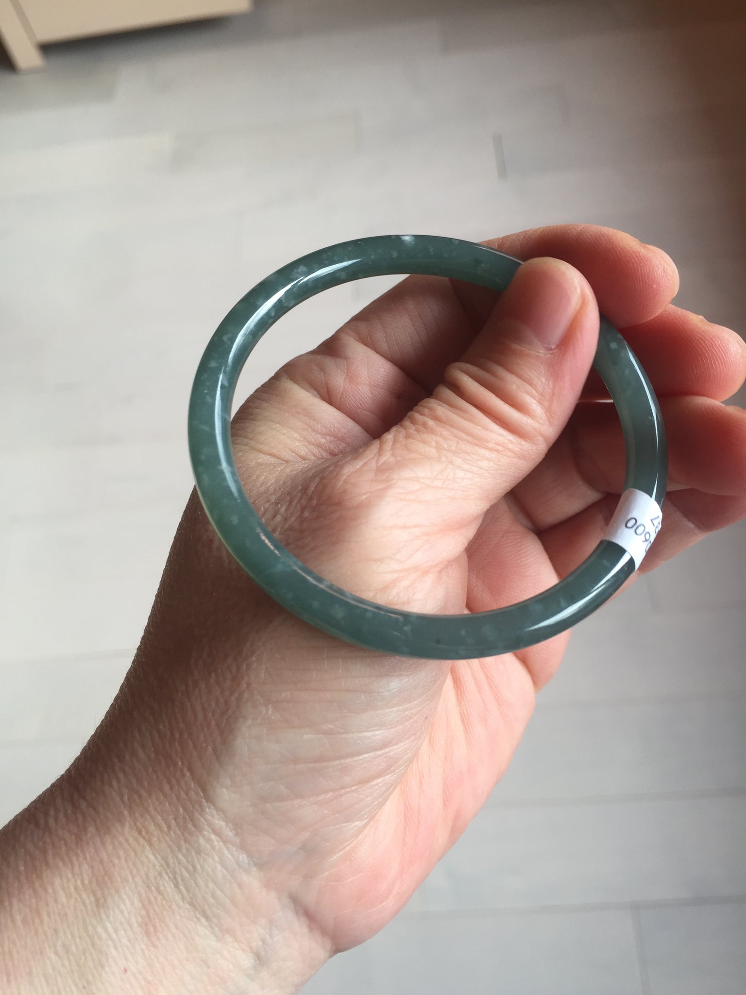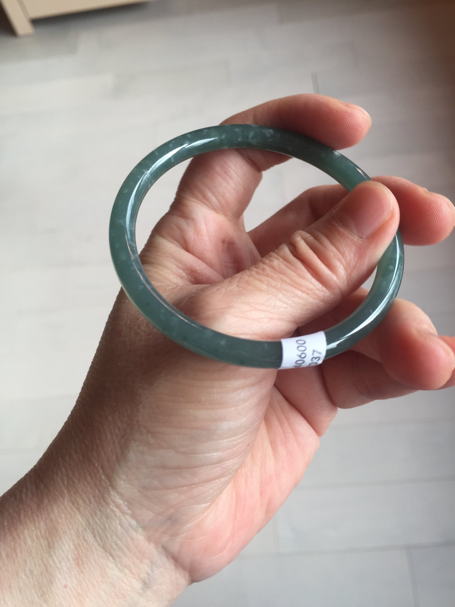 56.5mm Certified Type A 100% Natural dark green/blue/gray Guatemala slim round cut Jadeite bangle PE59-7037