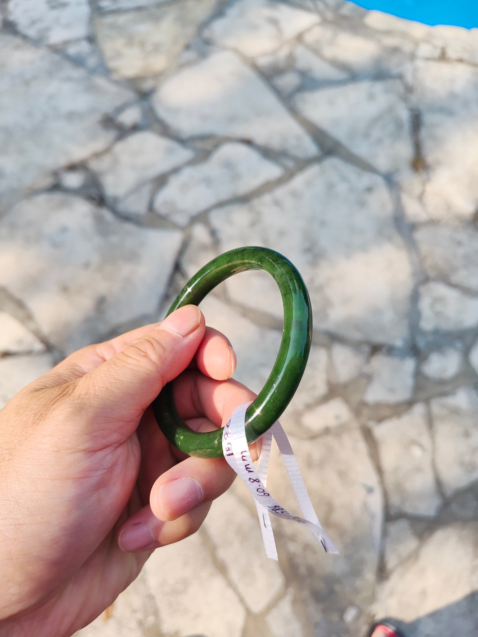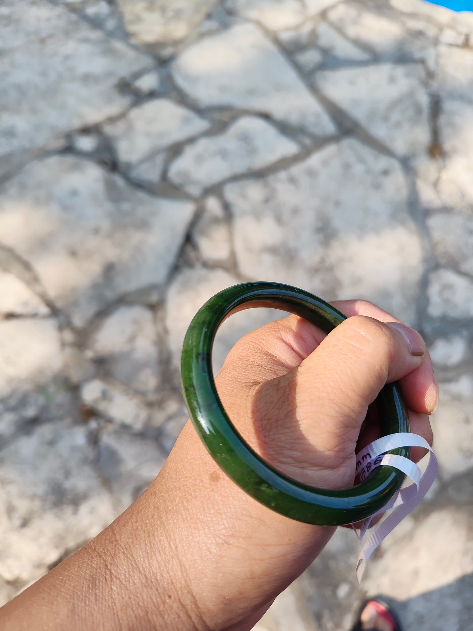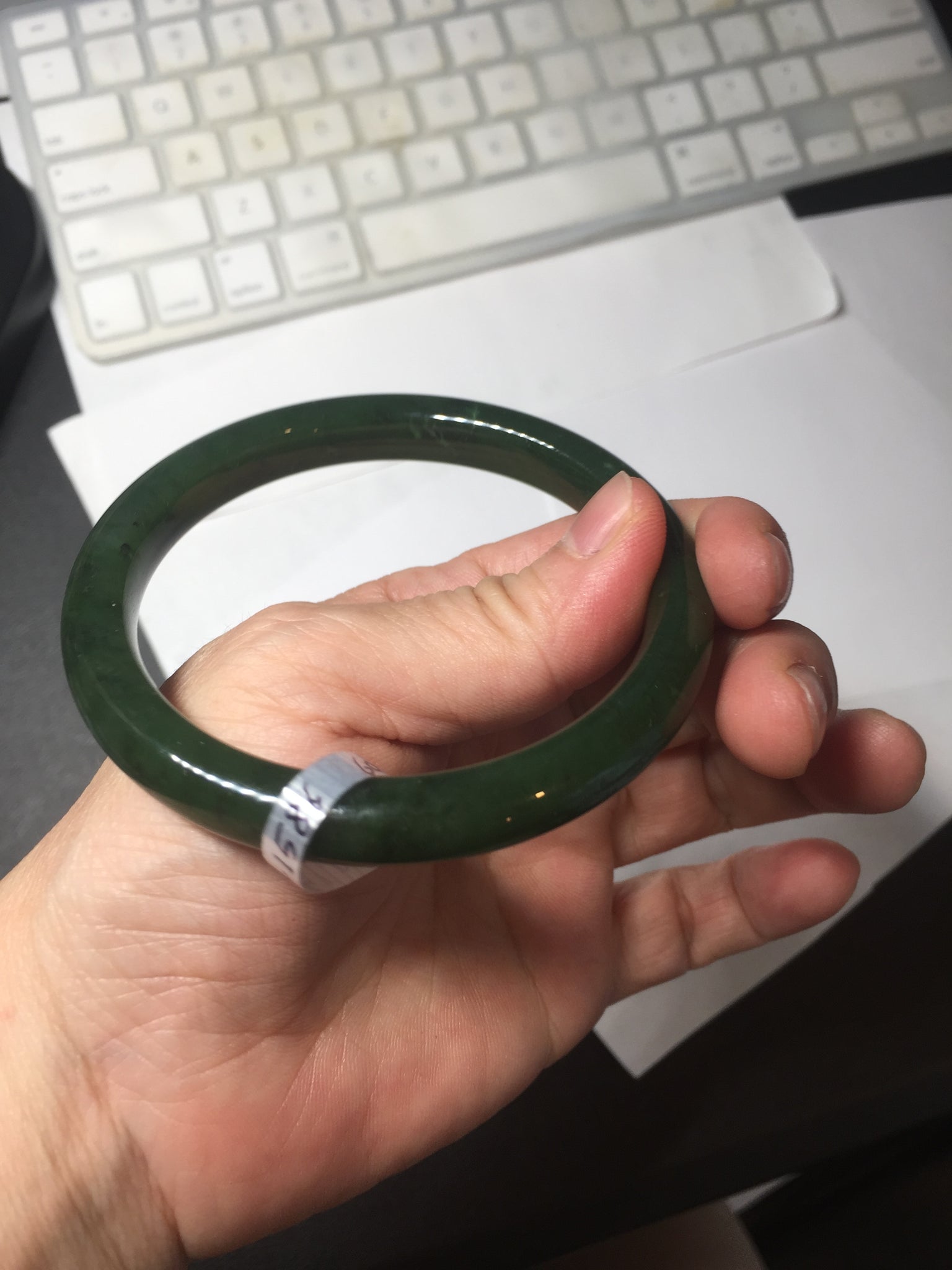 60.8mm certified 100% Natural dark green/black nephrite Jade(碧玉)  bangle HN15-1586