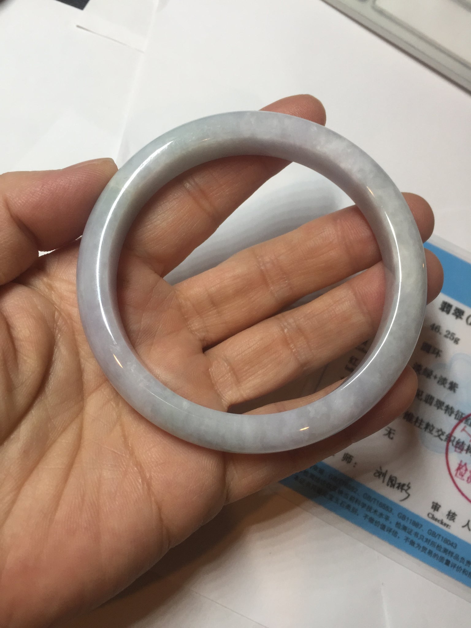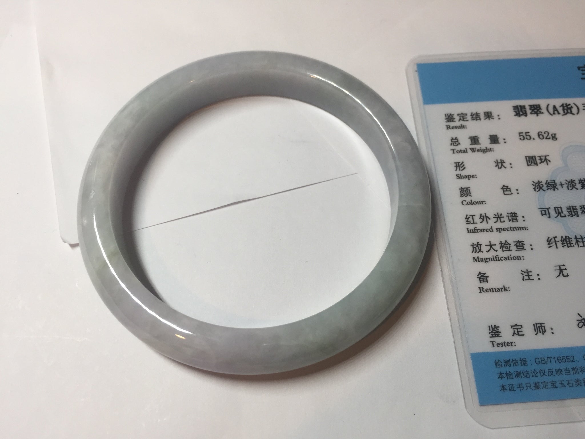 62mm Certified Type A 100% Natura light green white purple slim Jadeite bangle X151-3831