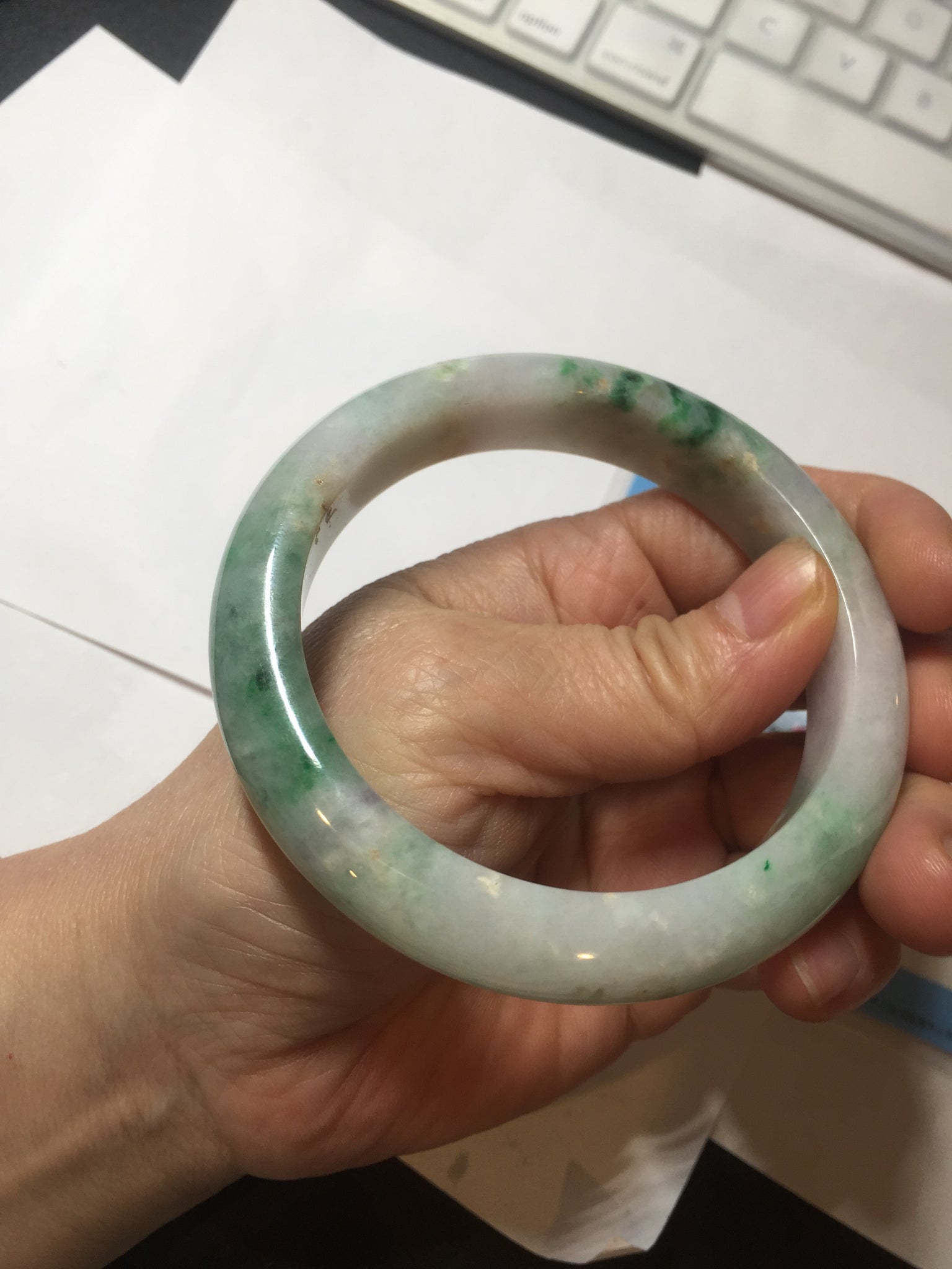 60.5mm certified Type A 100% Natural light green sunny green light purple Jadeite Jade bangle BK140-5278