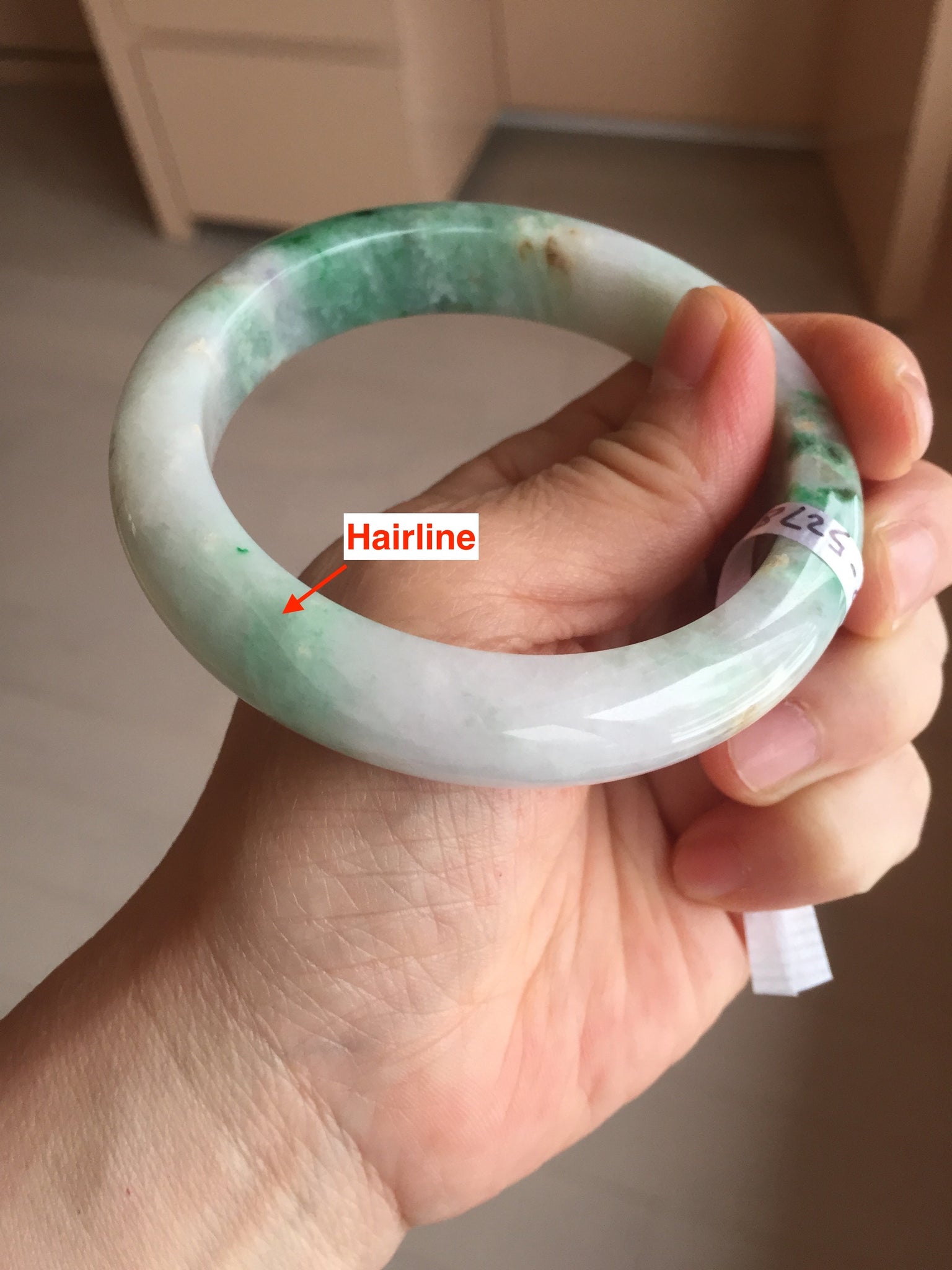 Jade root, or hairline root, and are not considered cracks. A crack is considered to be a crack you can feel that runs up and down the width of the bangle.