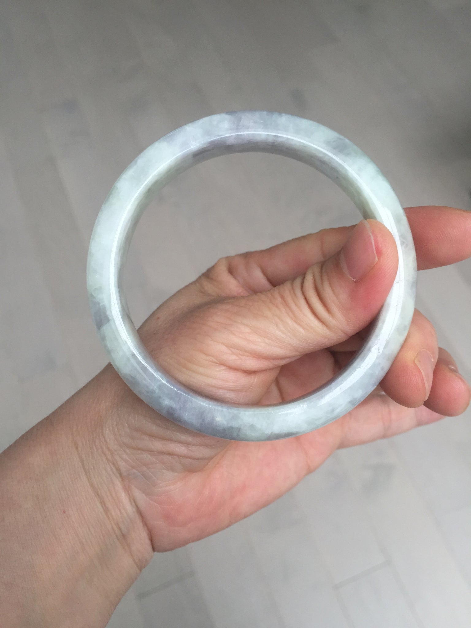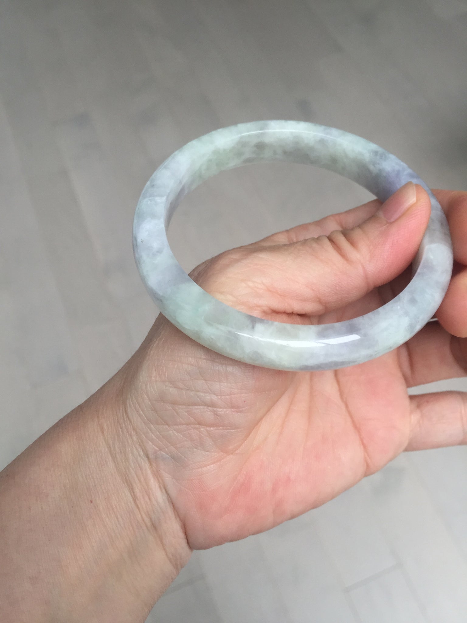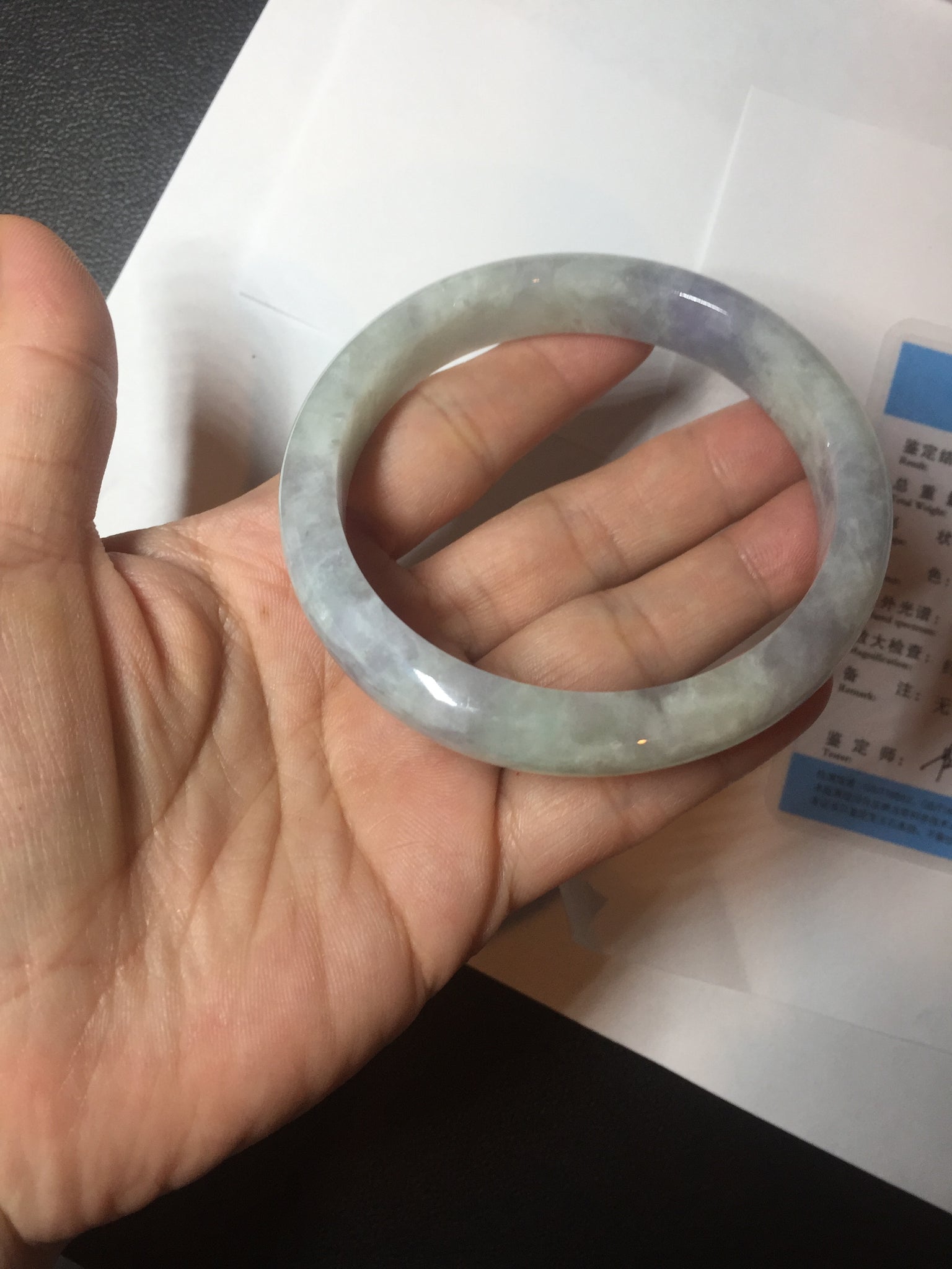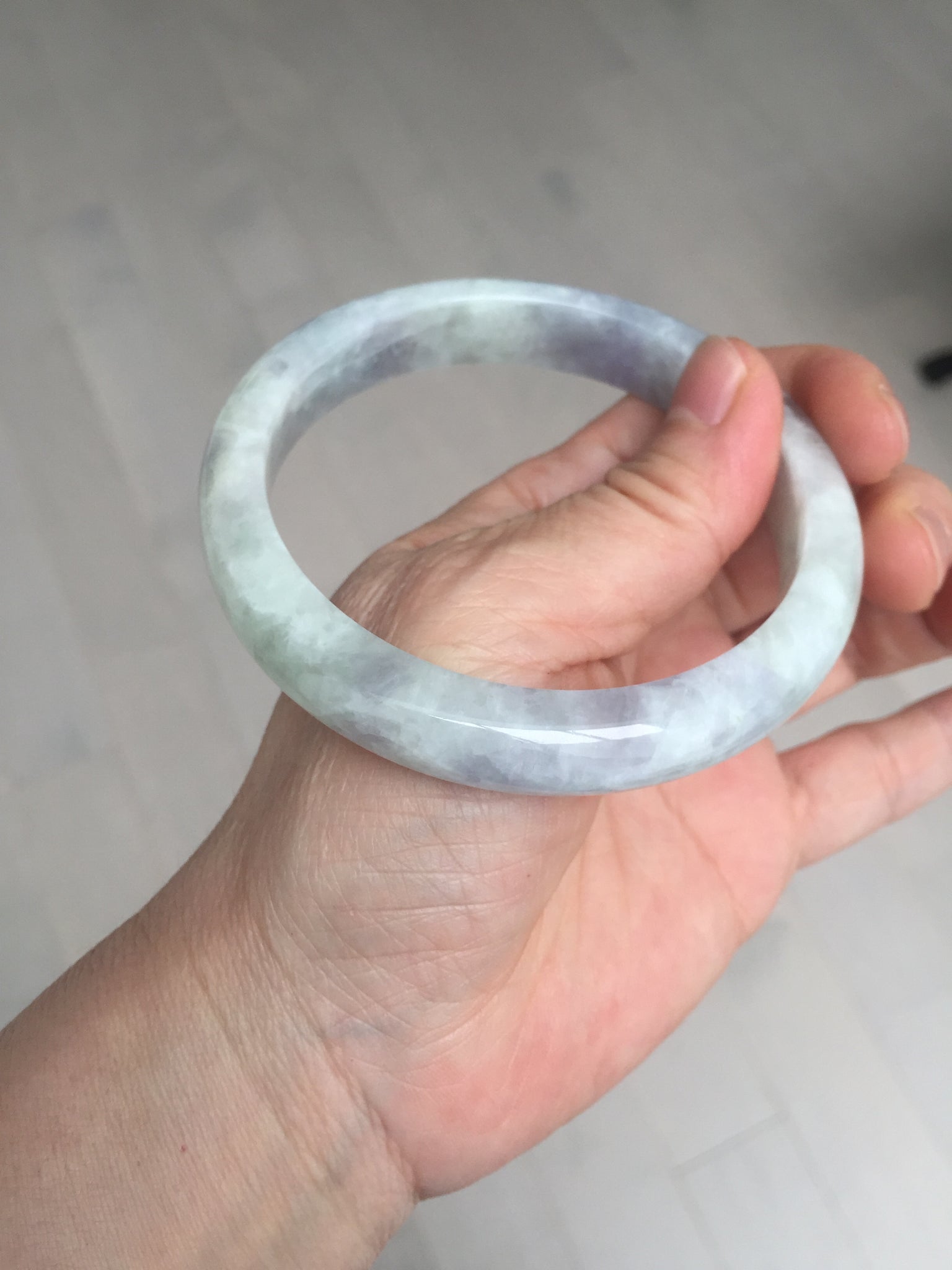 Some surface cracks. The bangle is solid(Guaranteed!). The texture is not fine. Some hairlines and cotton lines. Some blisters. Quite a lot of cotton areas(May not be showed all due to the photo space limit). The purple lighter than in the photos due to the purple color always being more camera-friendly.