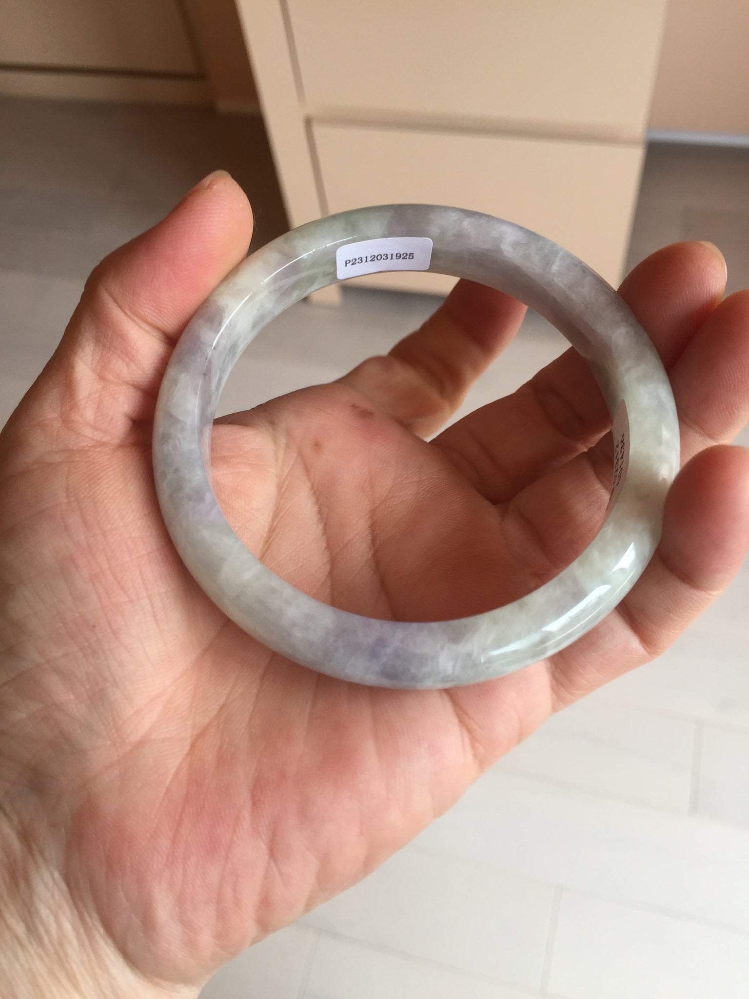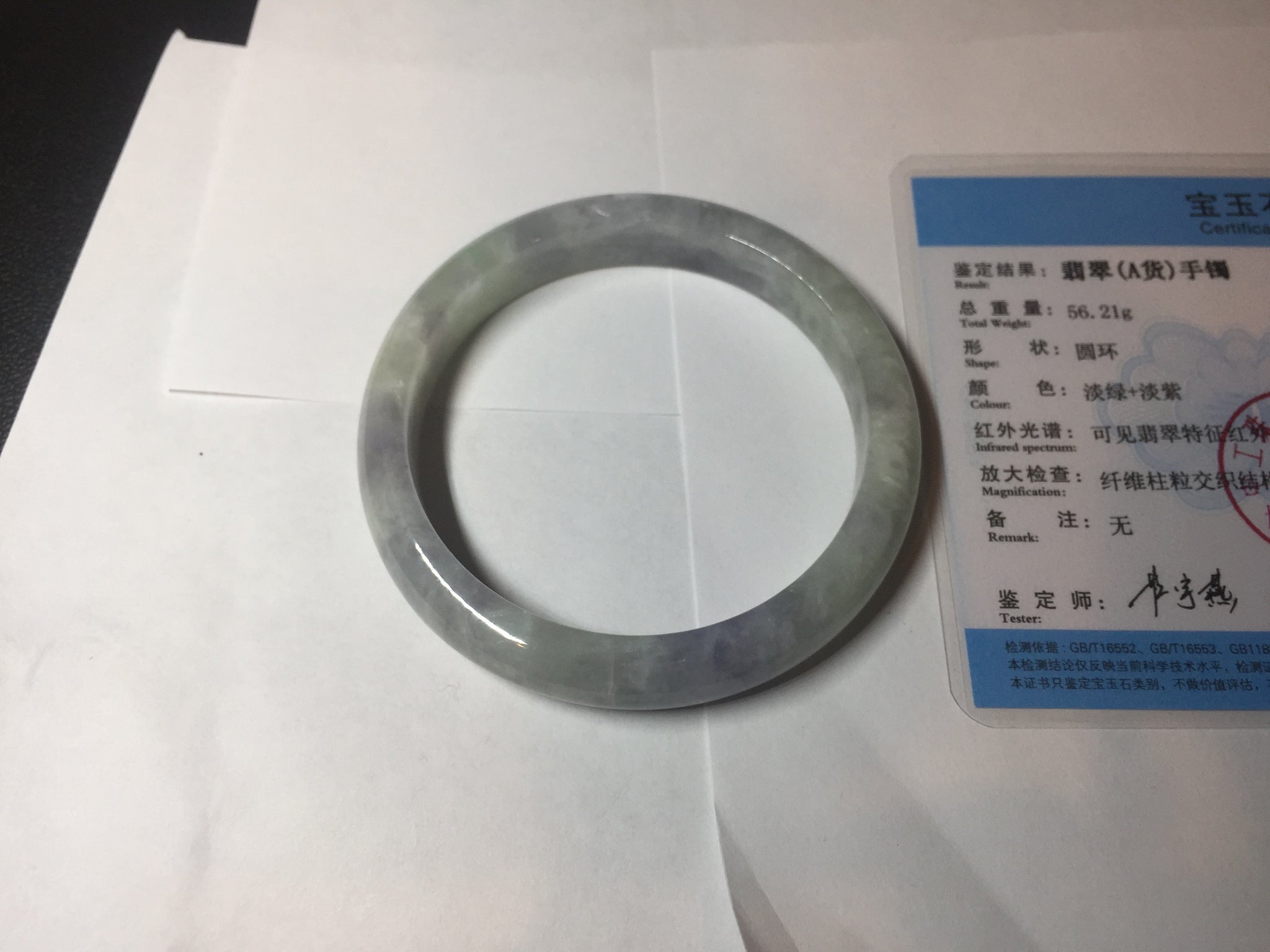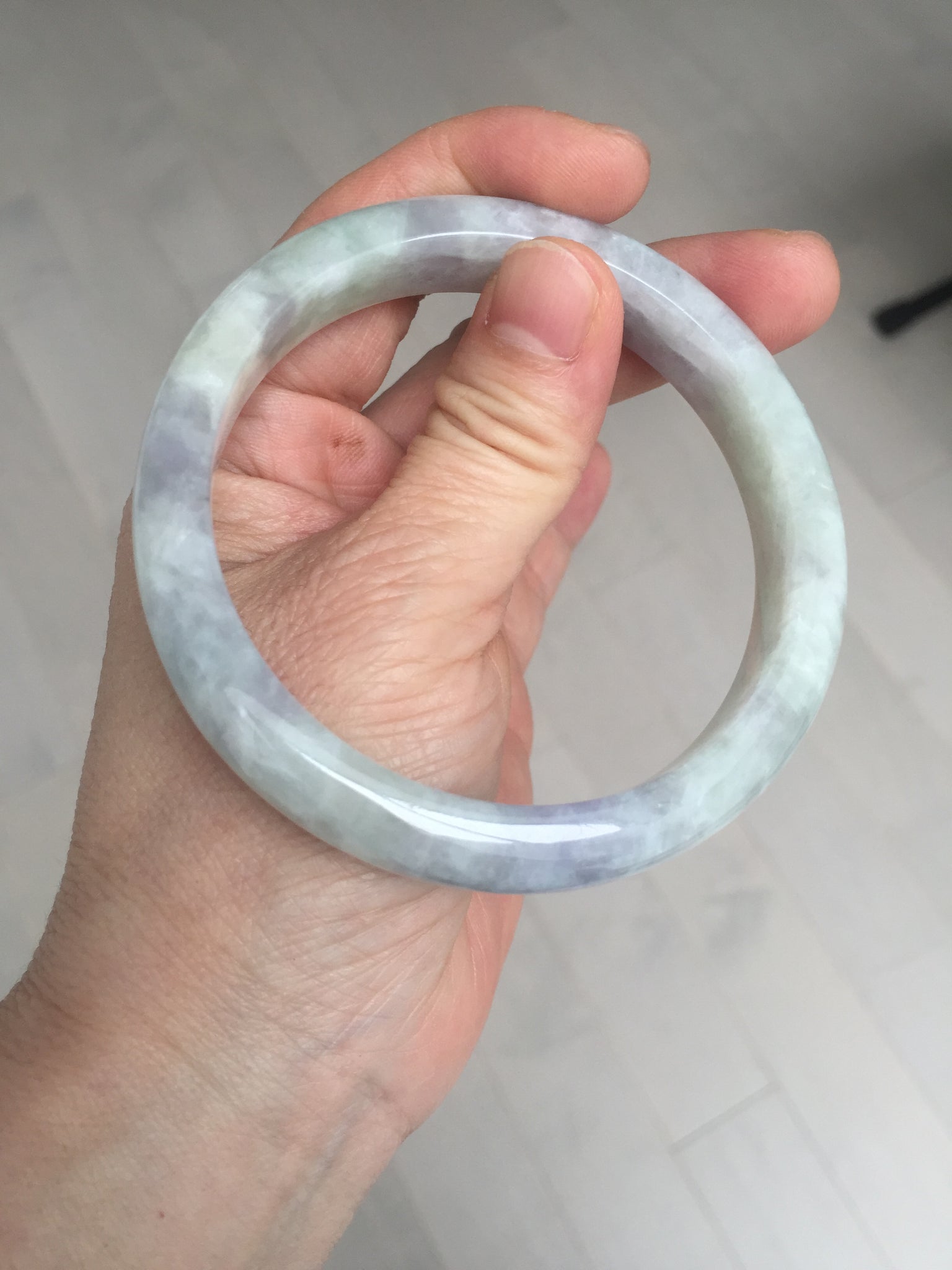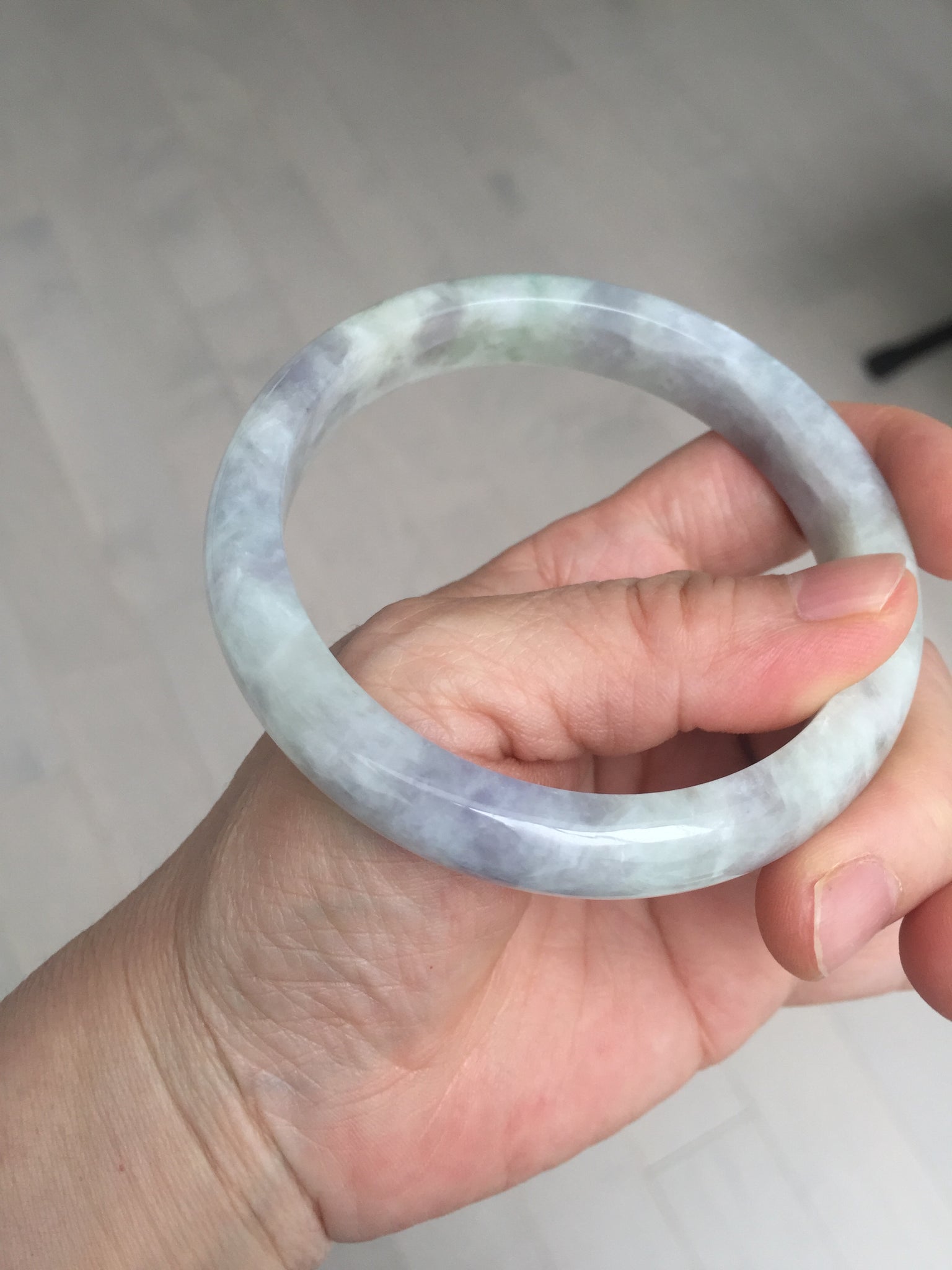 Some surface cracks. The bangle is solid(Guaranteed!). The texture is not fine. Some hairlines and cotton lines. Some blisters. Quite a lot of cotton areas(May not be showed all due to the photo space limit). The purple lighter than in the photos due to the purple color always being more camera-friendly.