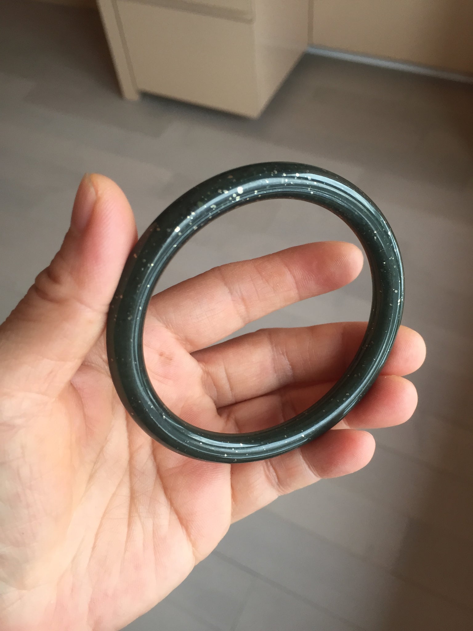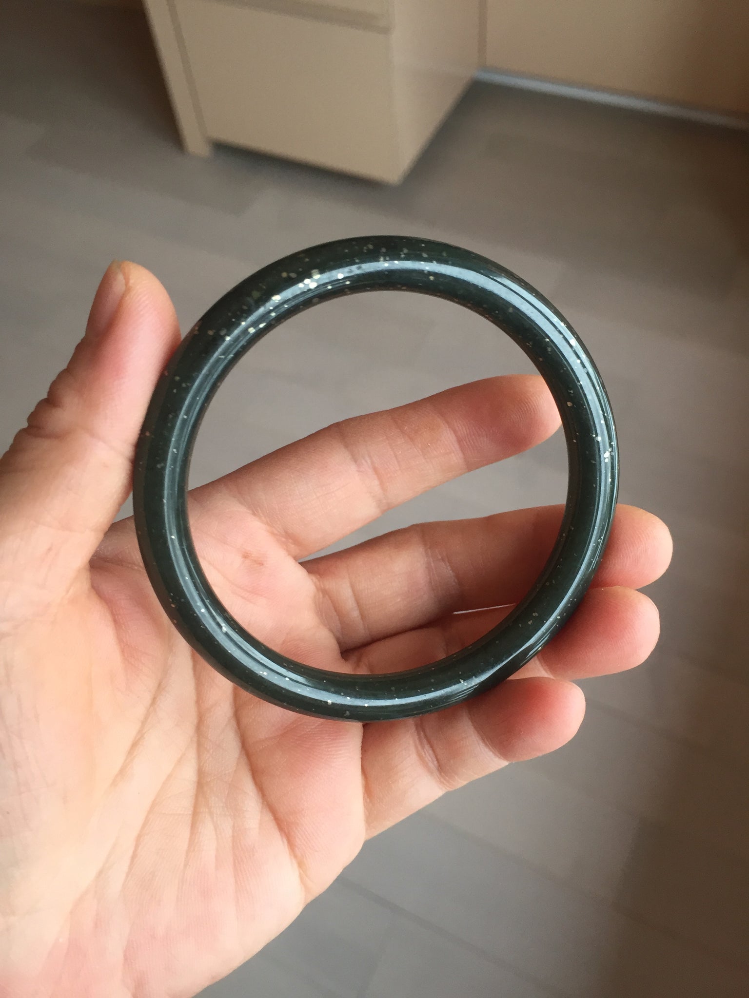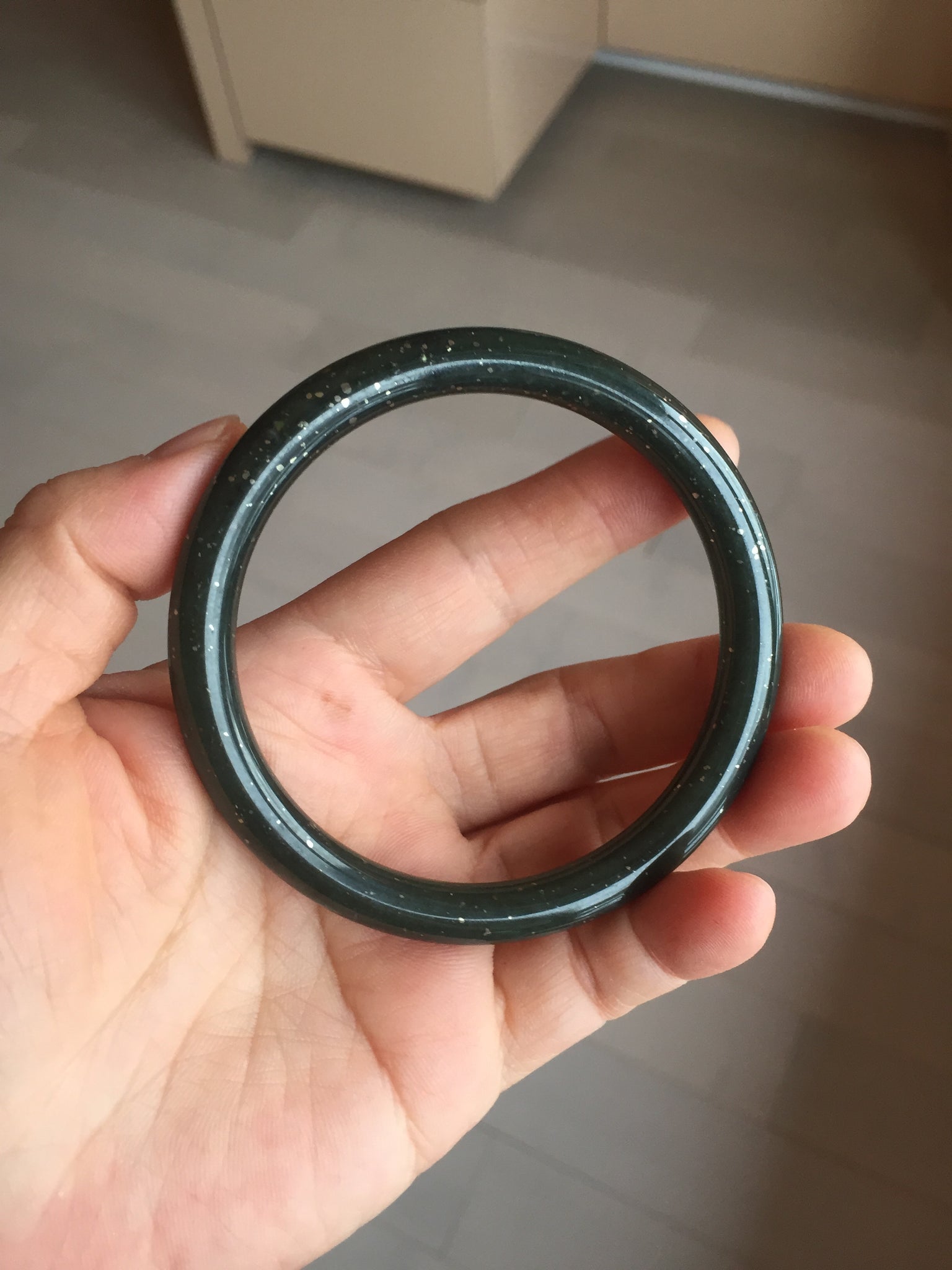 61.2/7.7/7.9mm with dark green and black color and silver metallic specks.