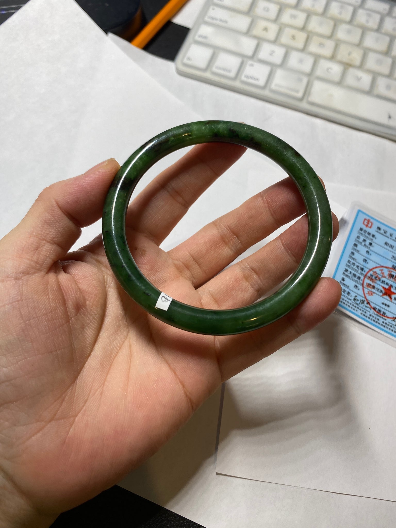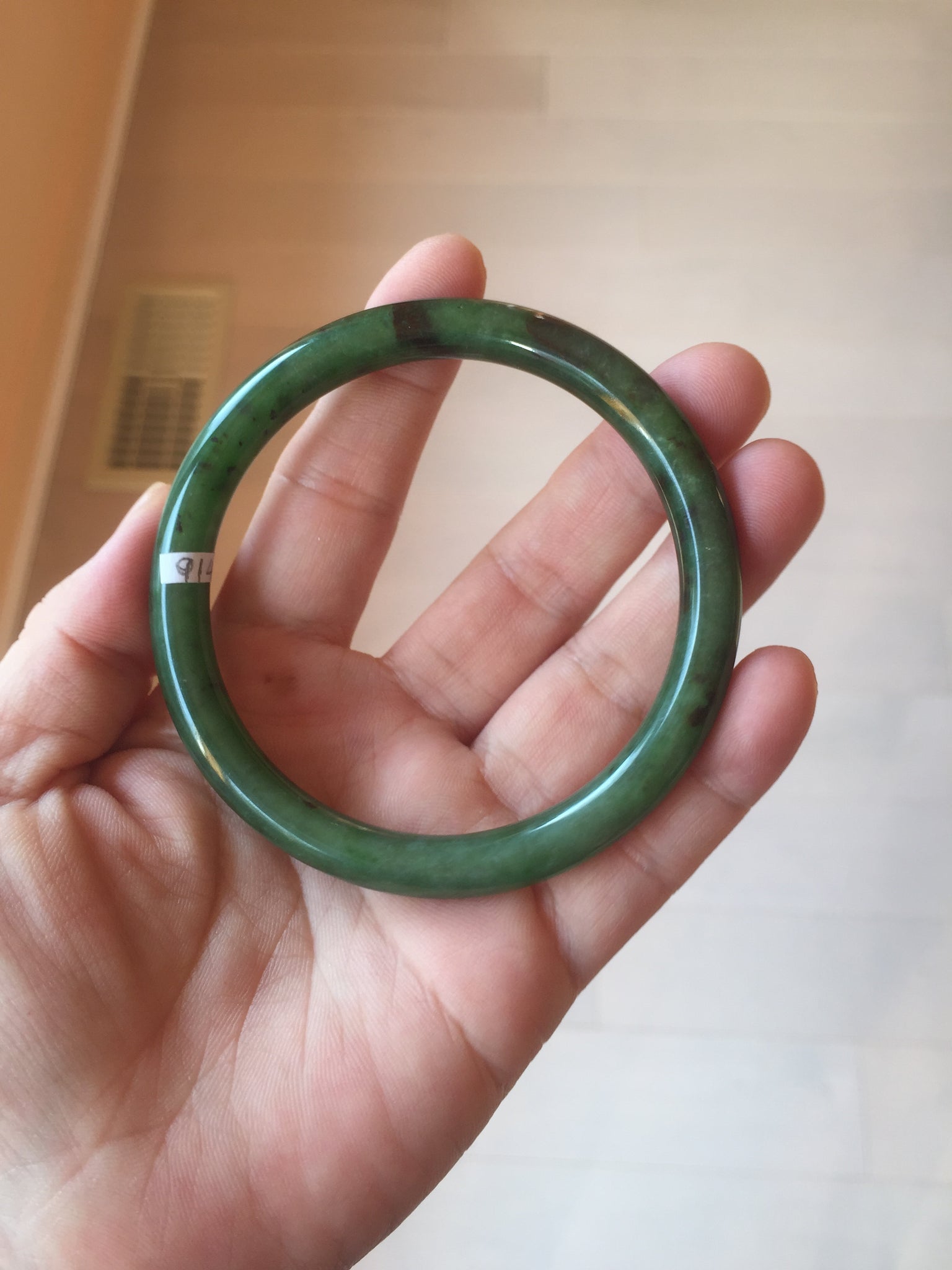 62mm certified 100% Natural dark green/black round cut nephrite (碧玉)  bangle HN20-9149