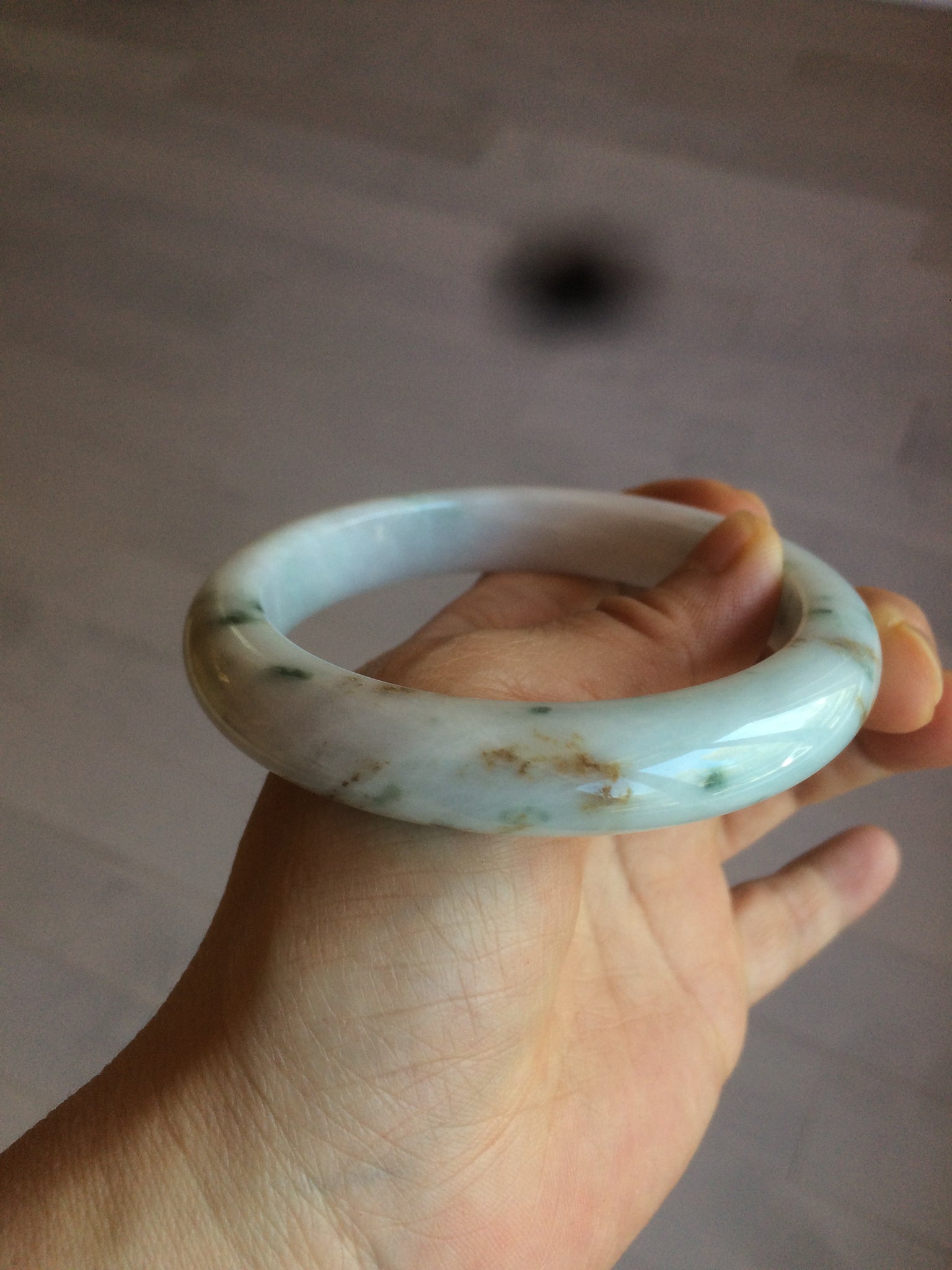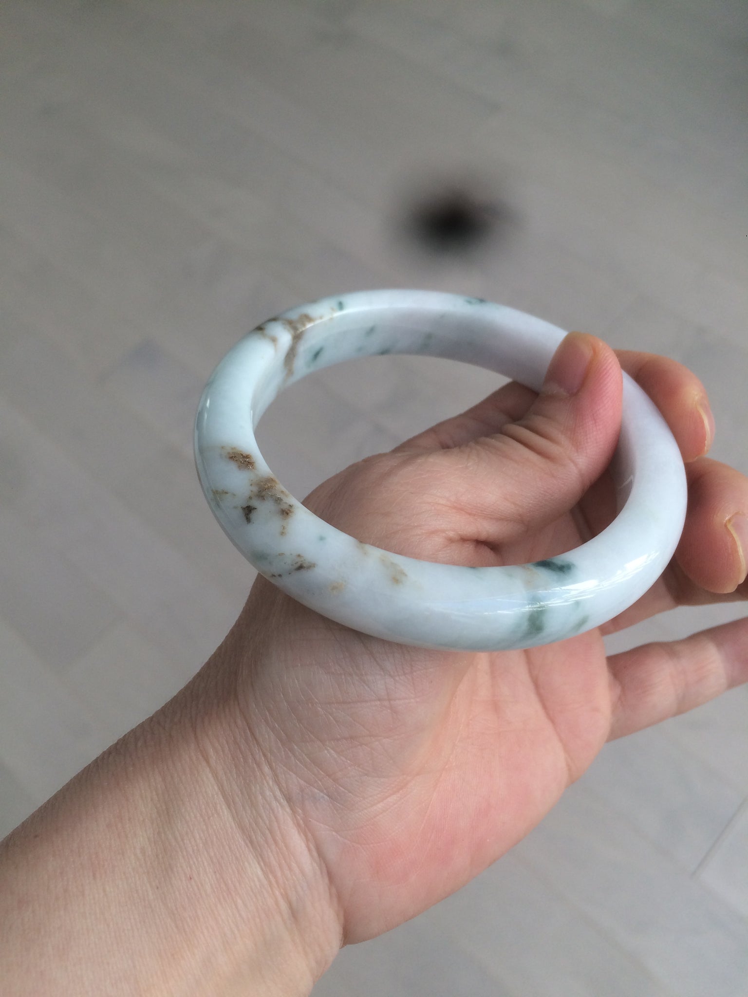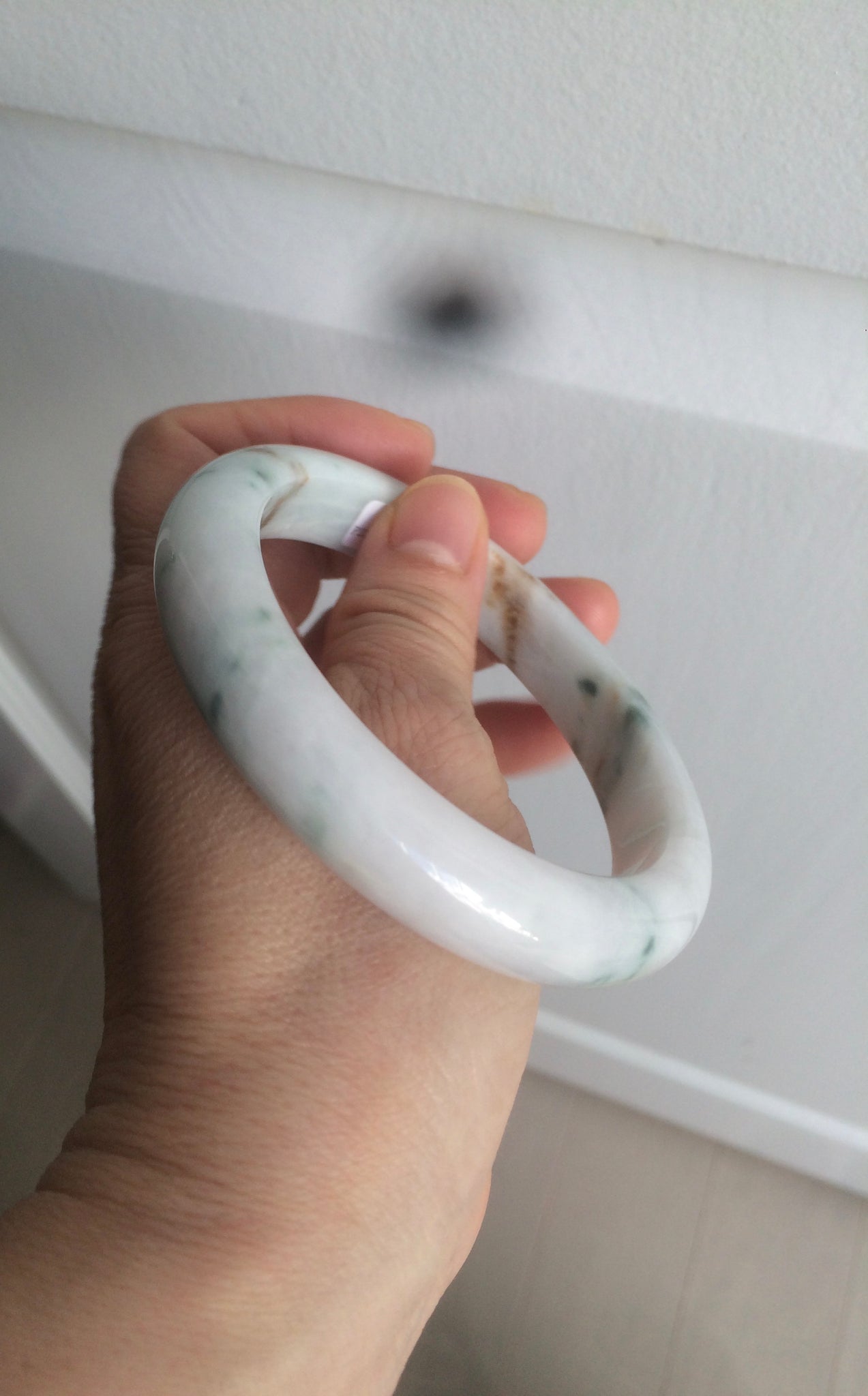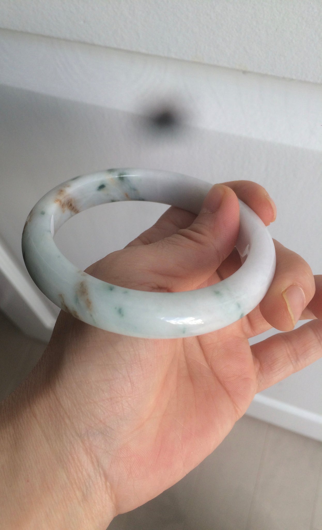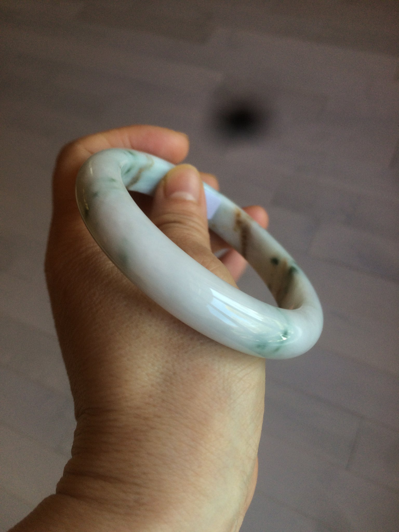 62.7mm Certified Type A 100% Natural light green/white/brown/purple Jadeite Jade bangle AH84-0438