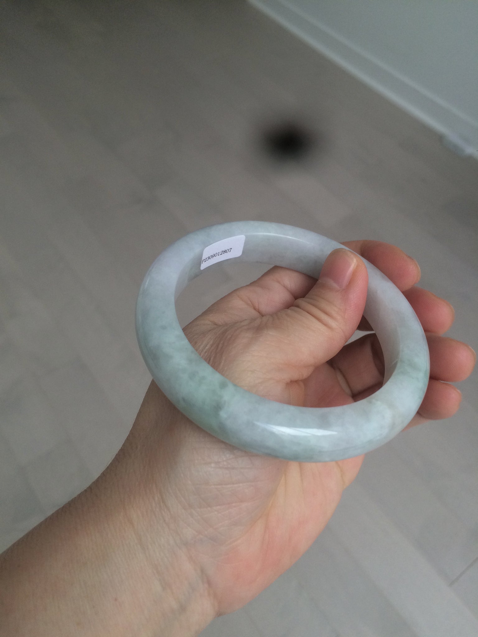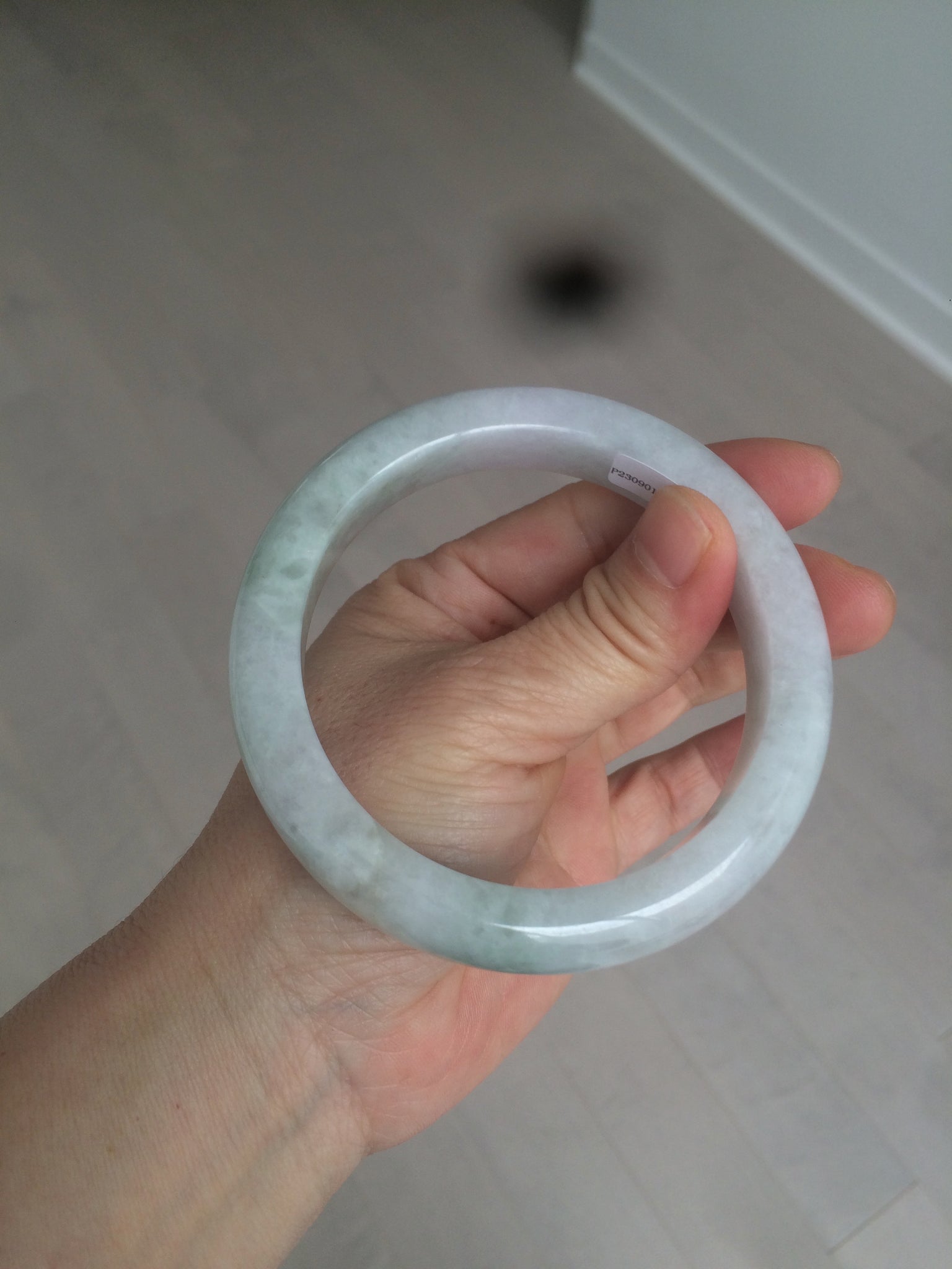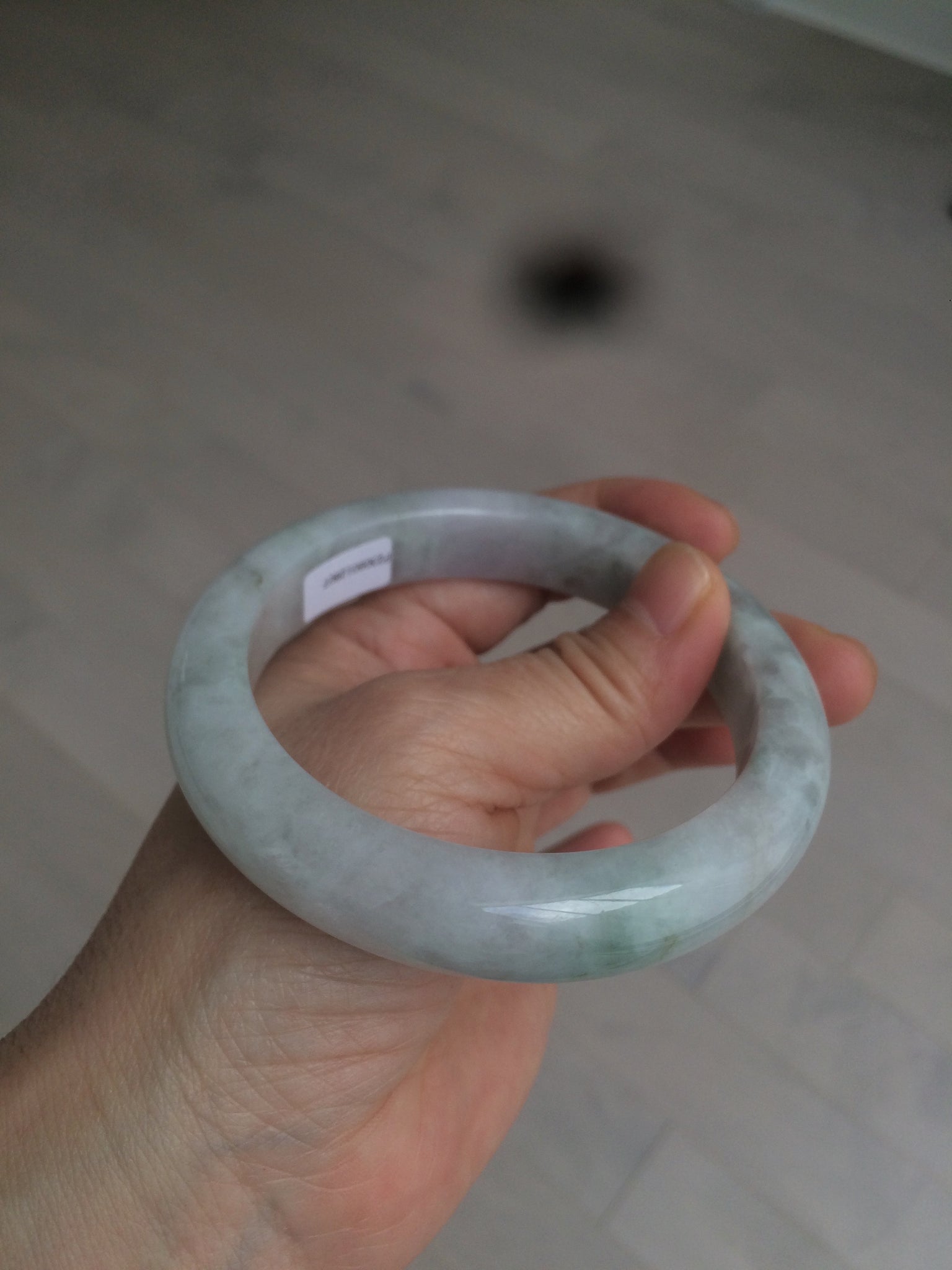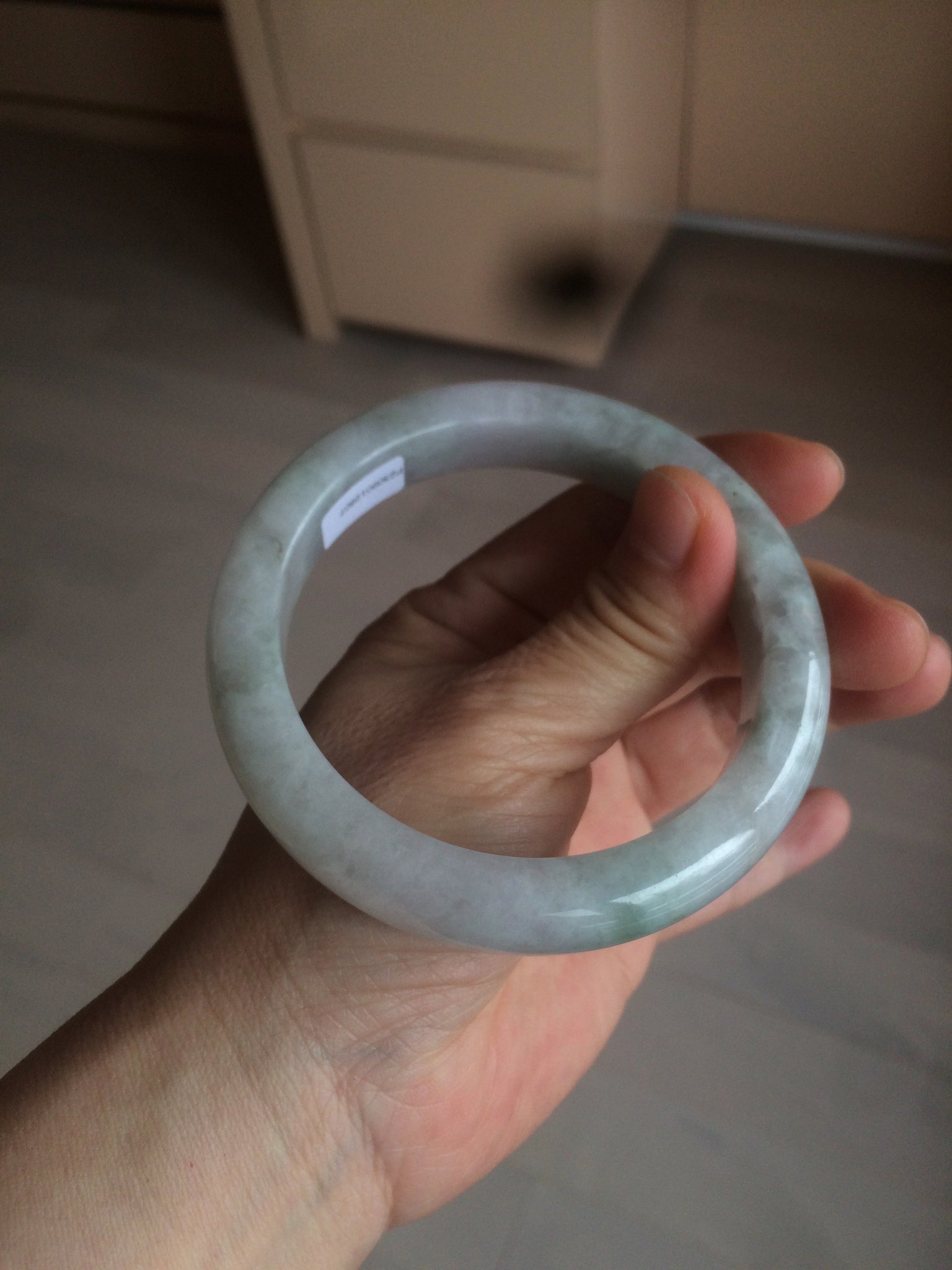 Some cracks. The bangle is solid (Guaranteed!). Make a high-pitched sound when clicked. Quite a lot of hairlines cotton lines, spots, blisters, and areas. The purple is super light. It's only just a hint of purple.