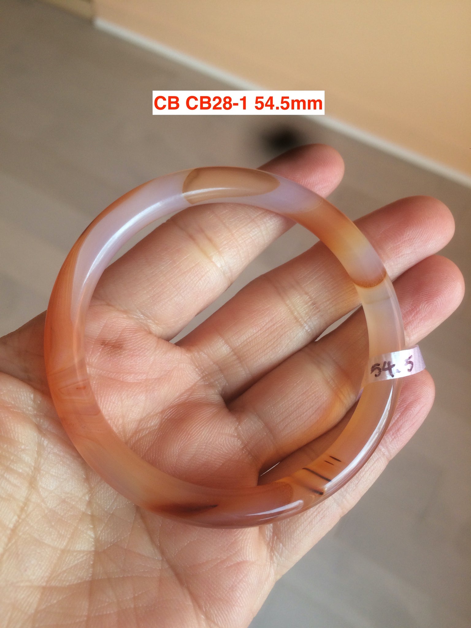 54.4-62mm 100% natural red/orange/brown slim agate bangle CB28