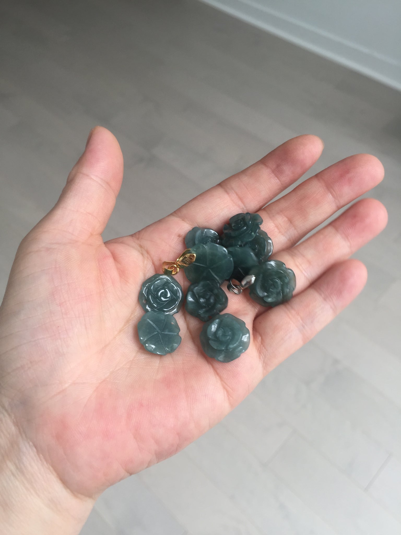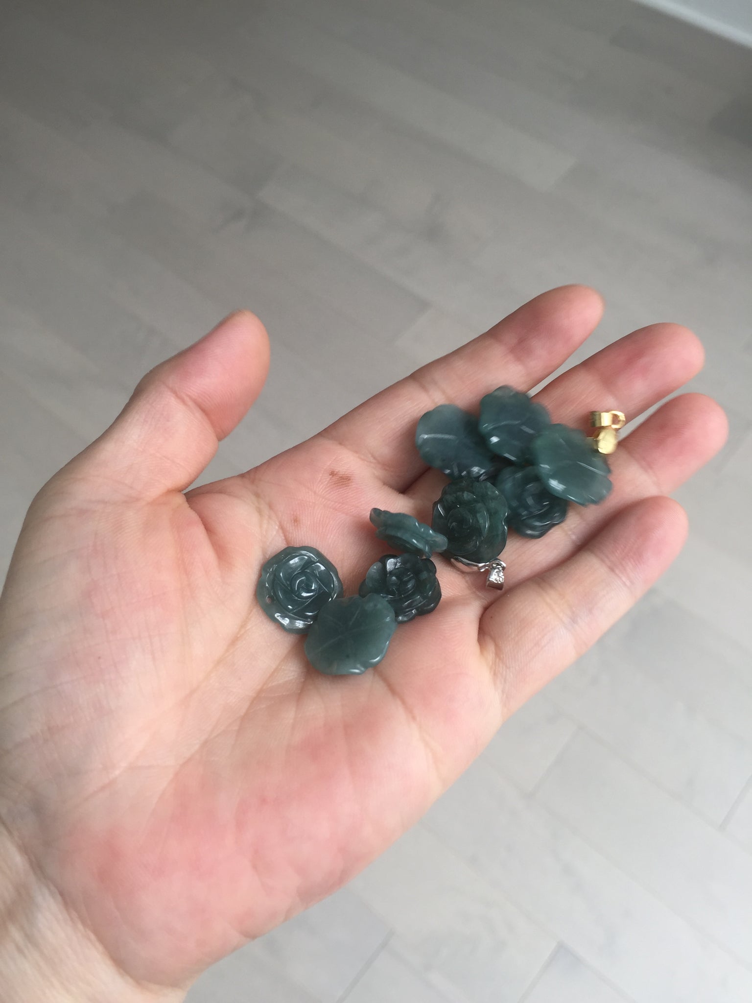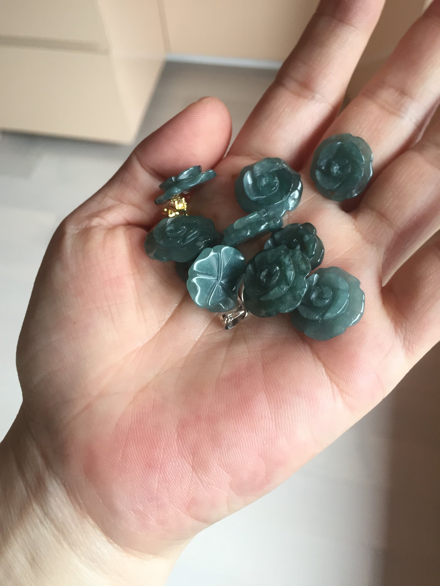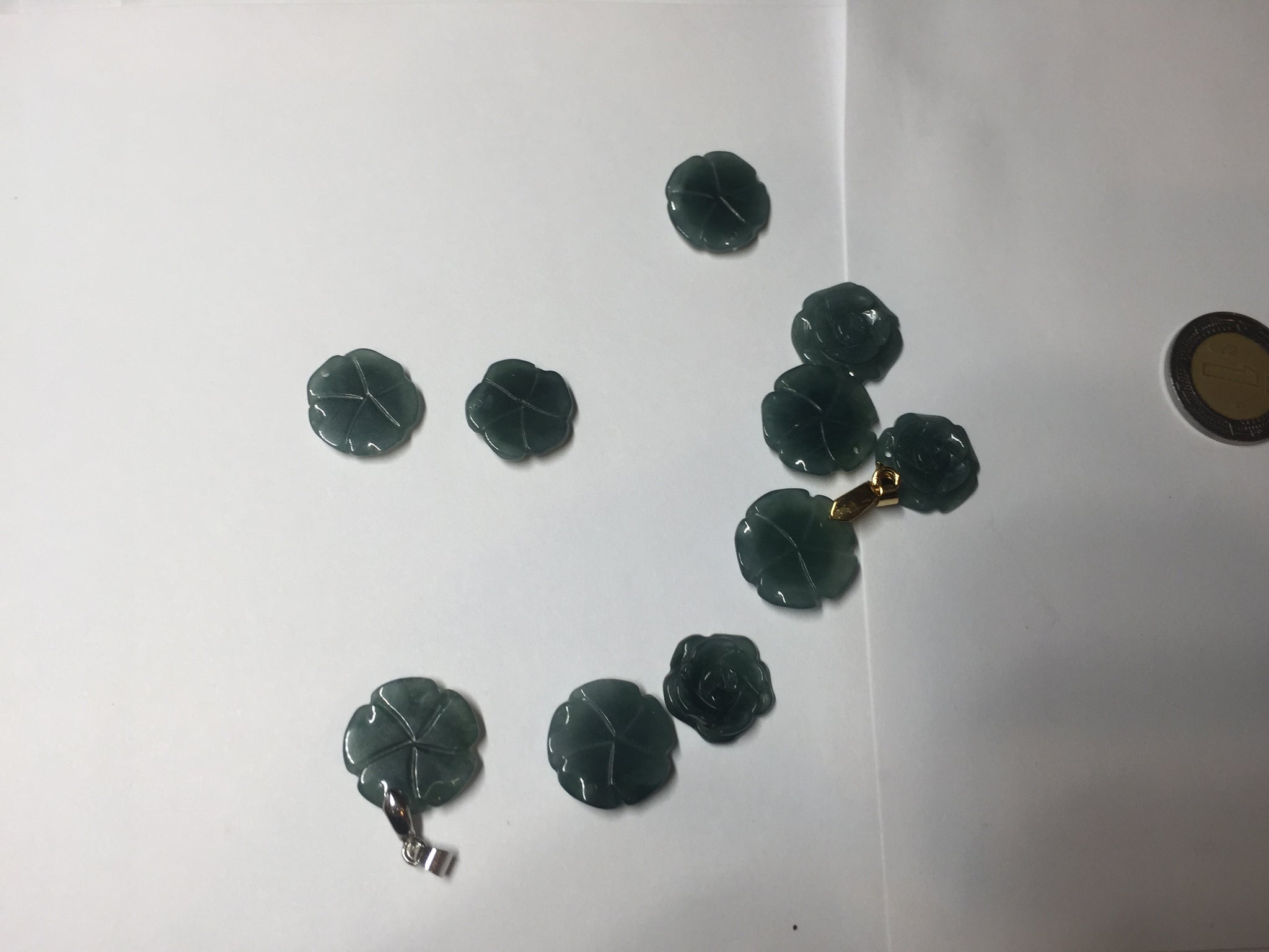 100% Natural blue green gray Guatemala jadeite Jade flower pendant group AR113