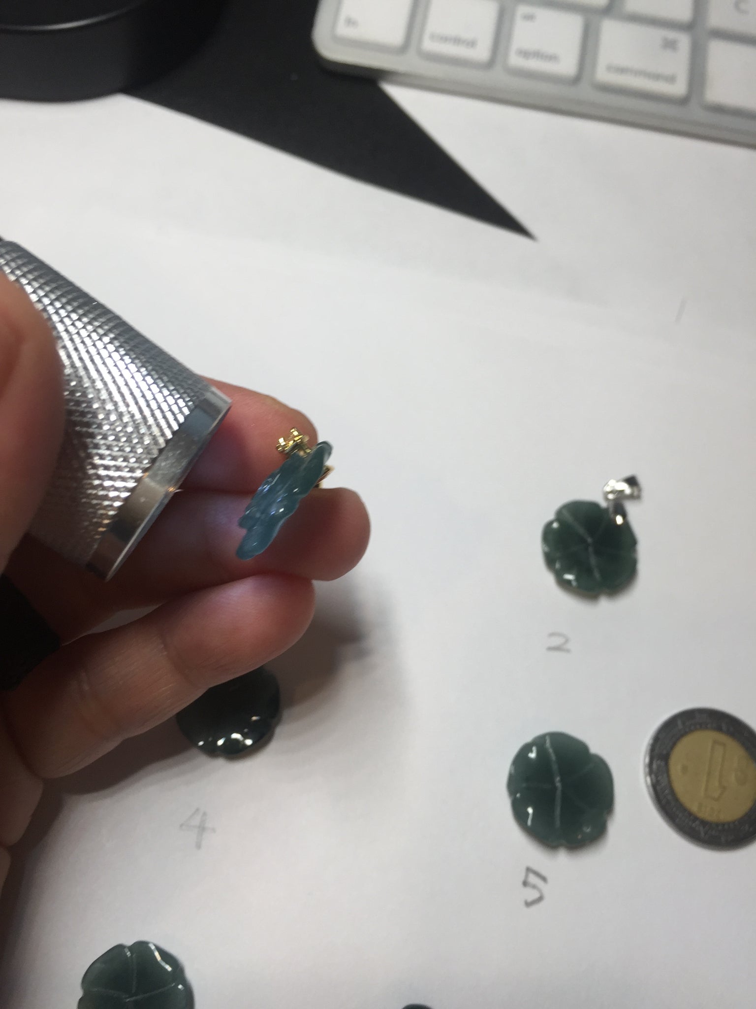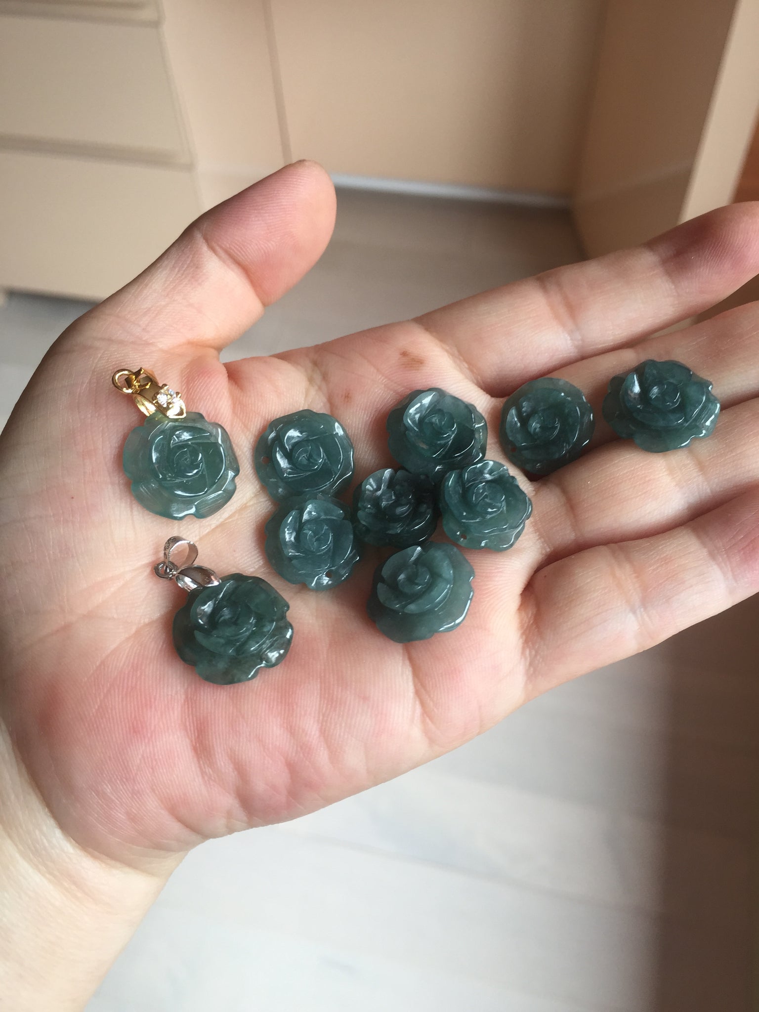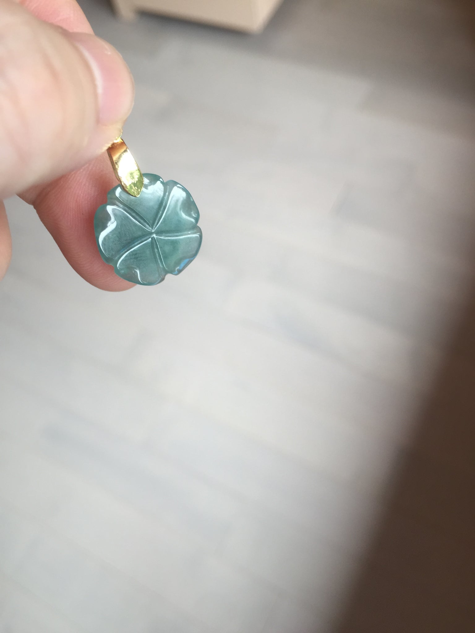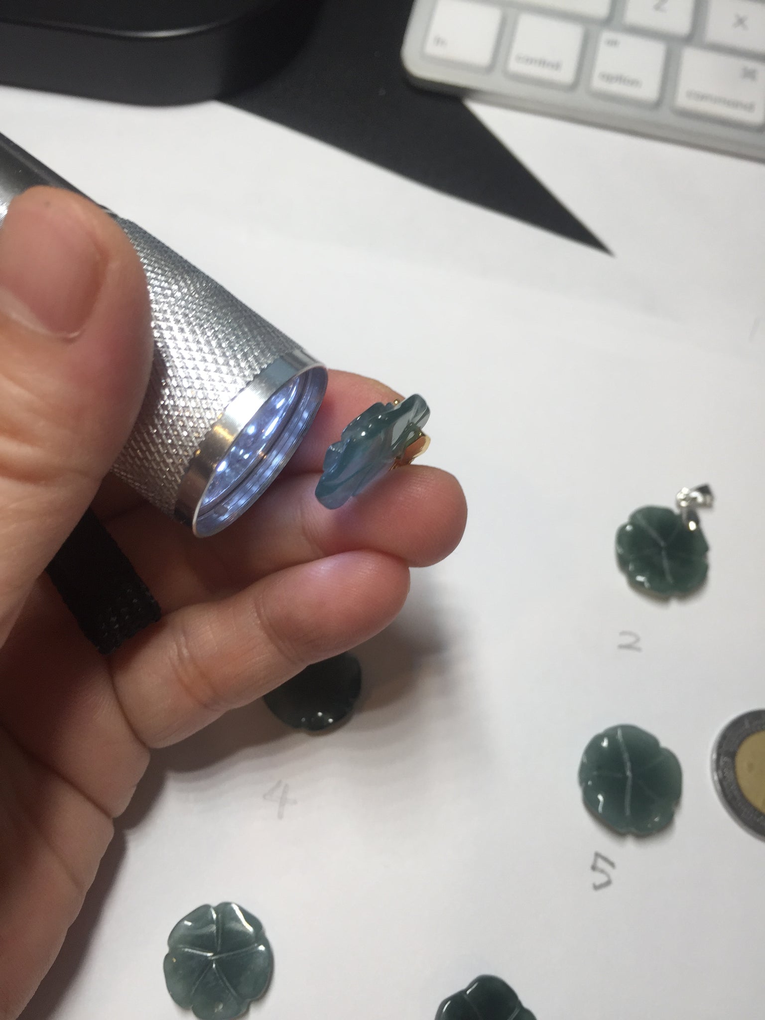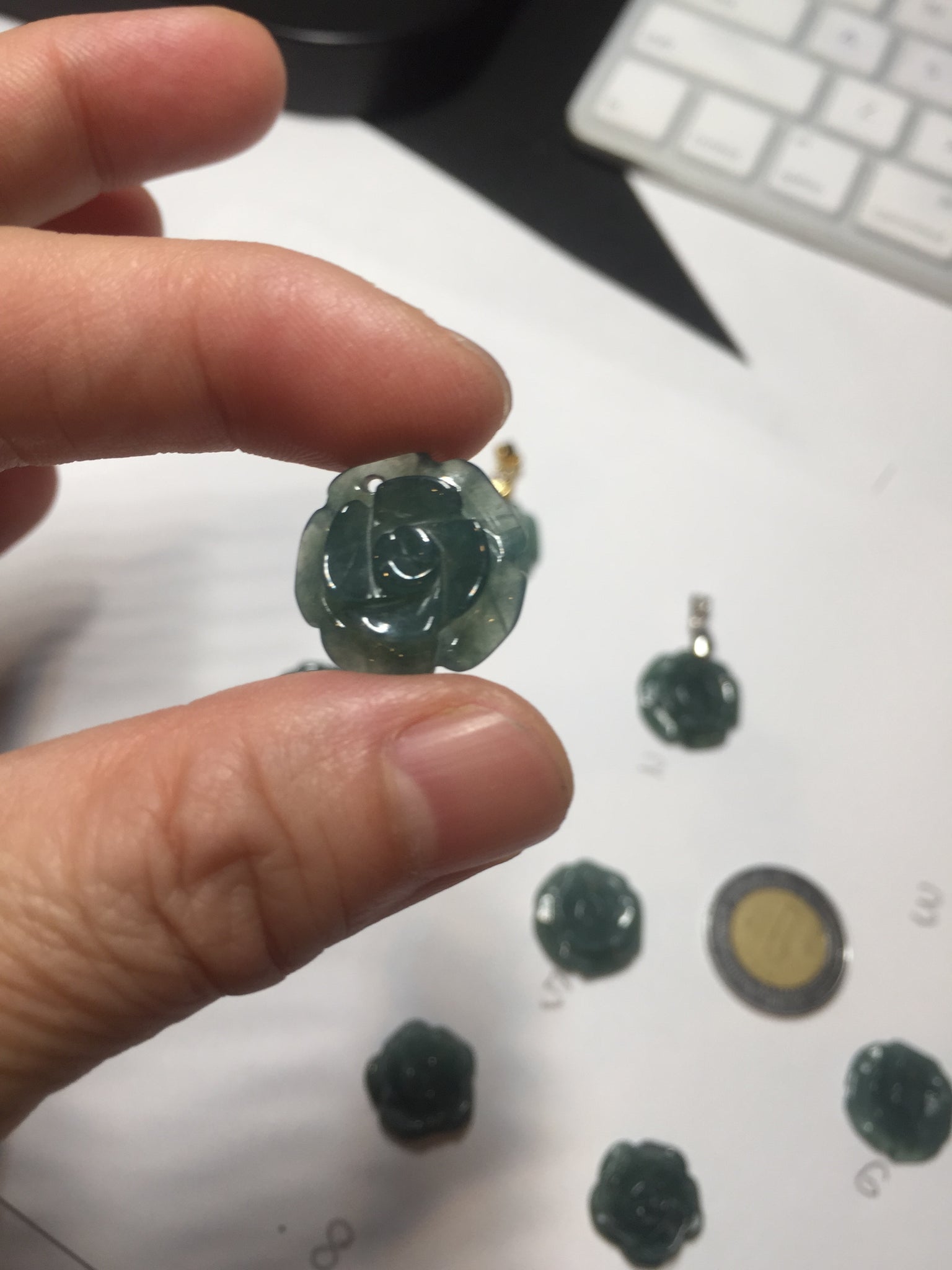 100% Natural blue green gray Guatemala jadeite Jade flower pendant group AR113