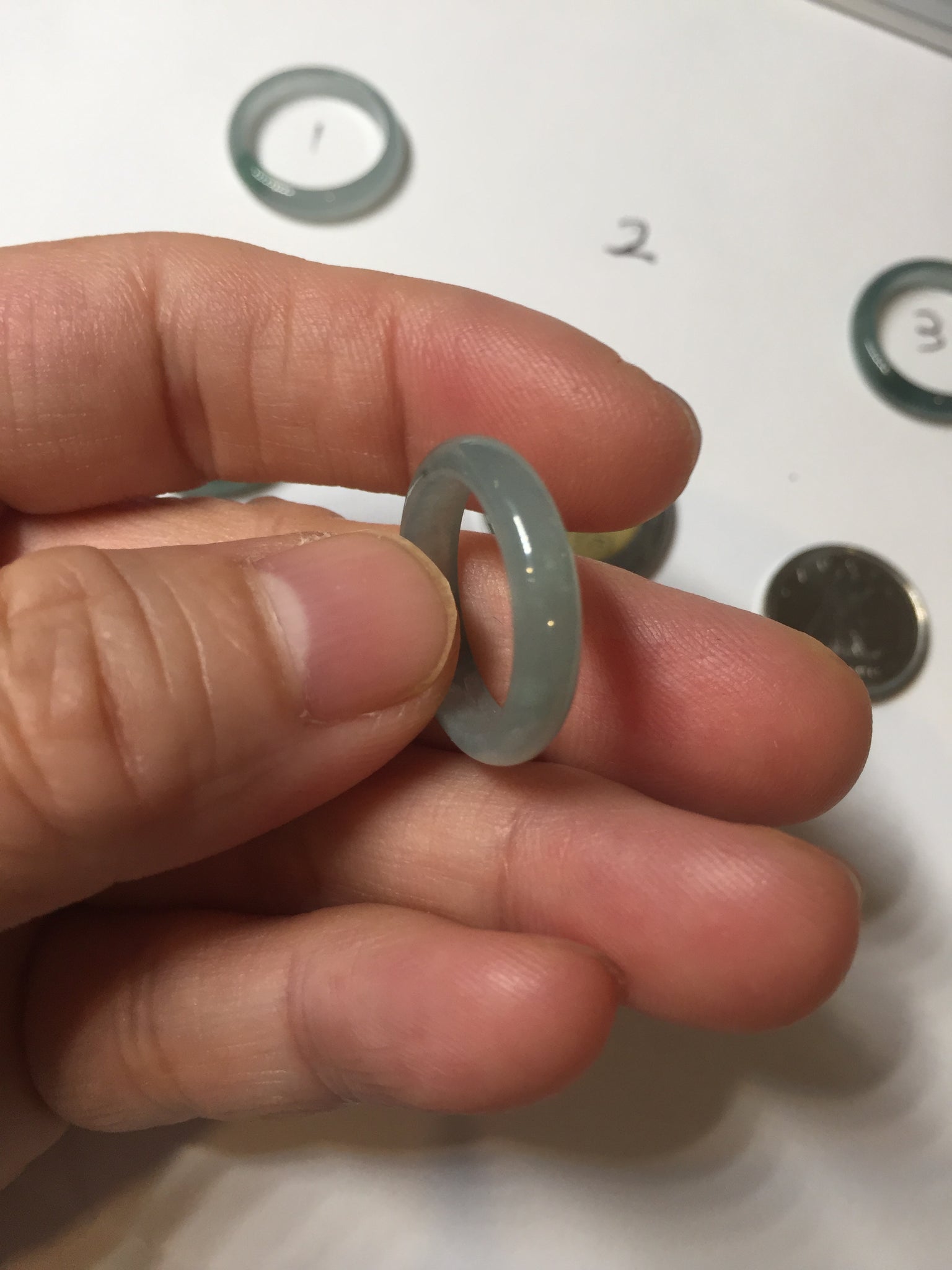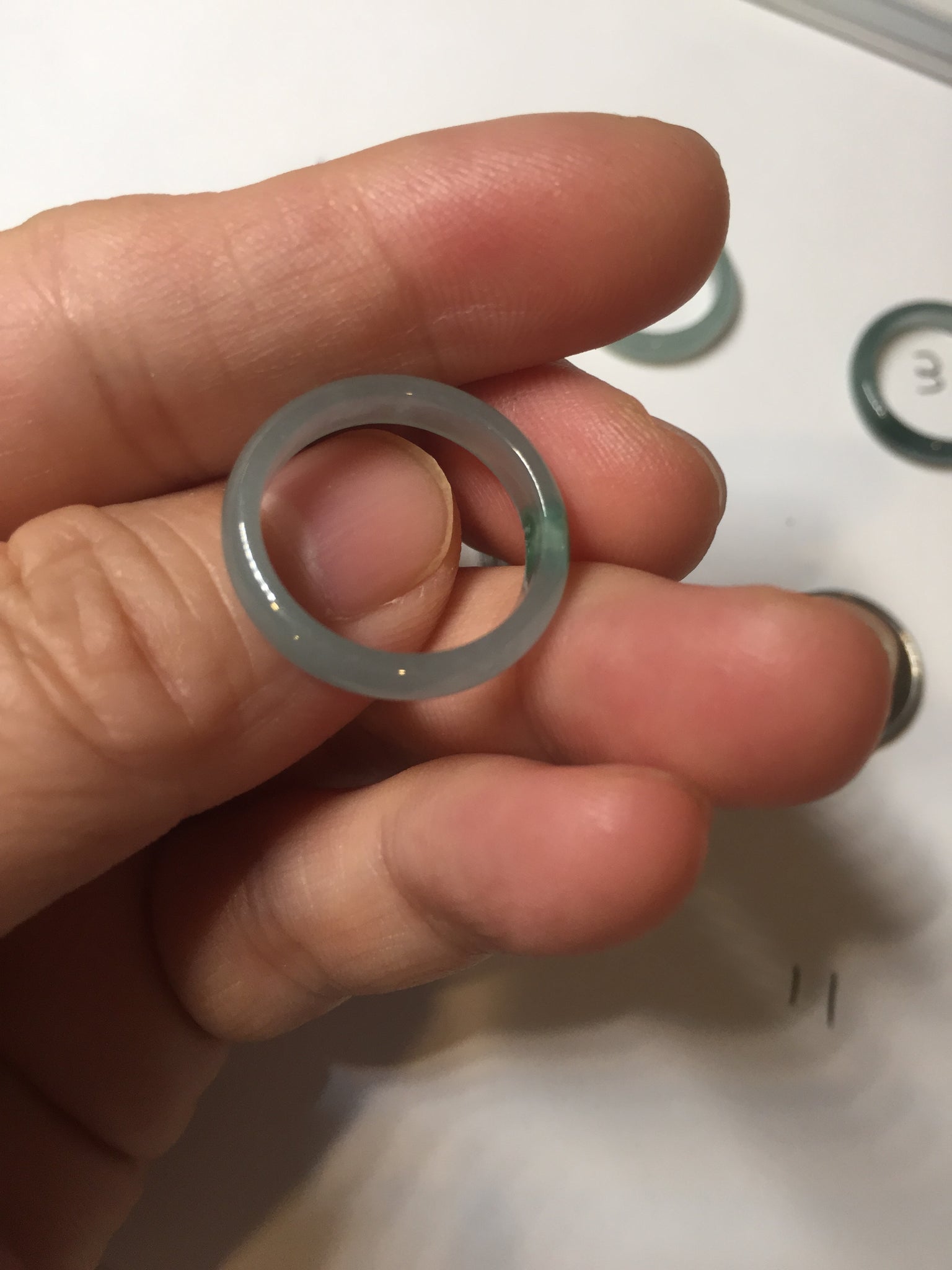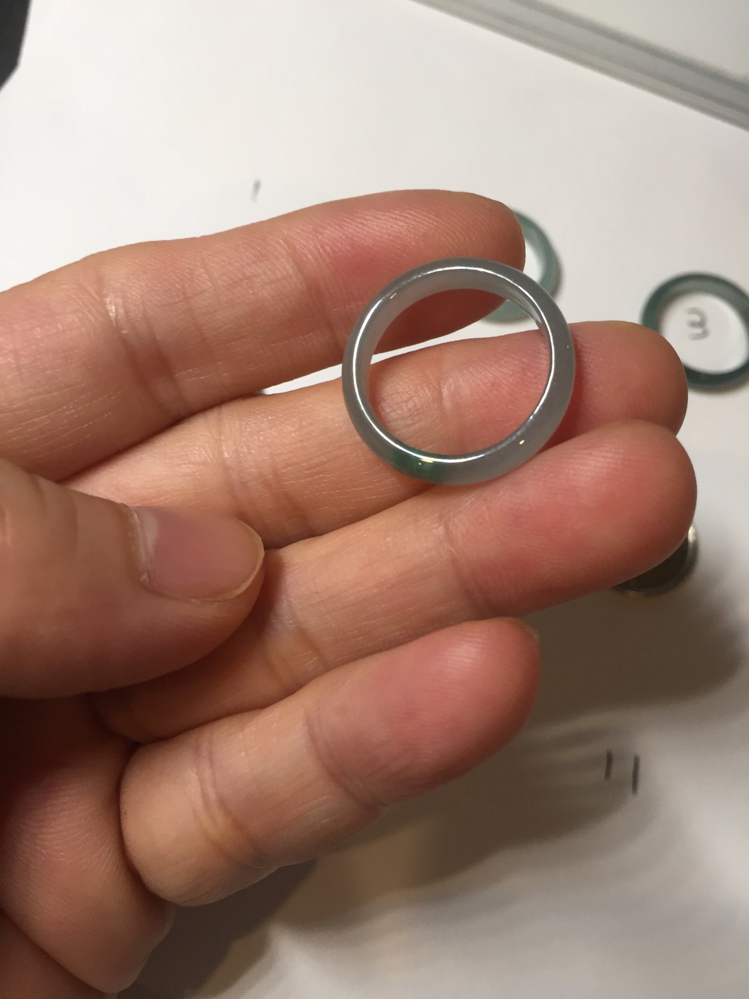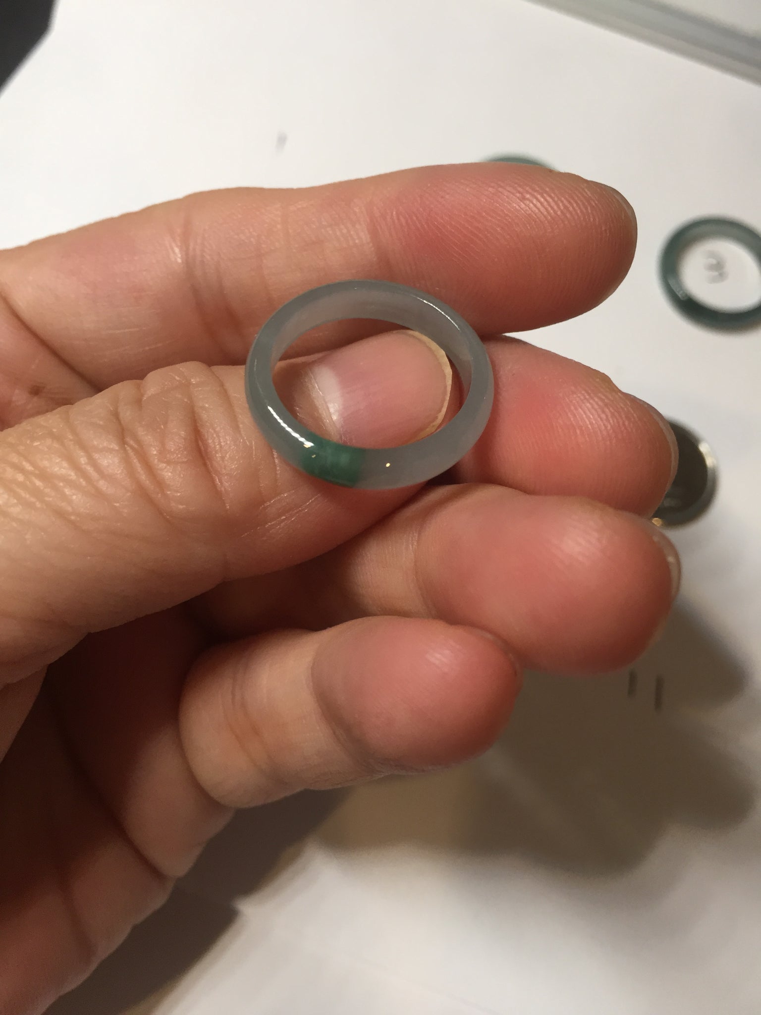 Jadeite jade band ring, icy watery and fine texture.
