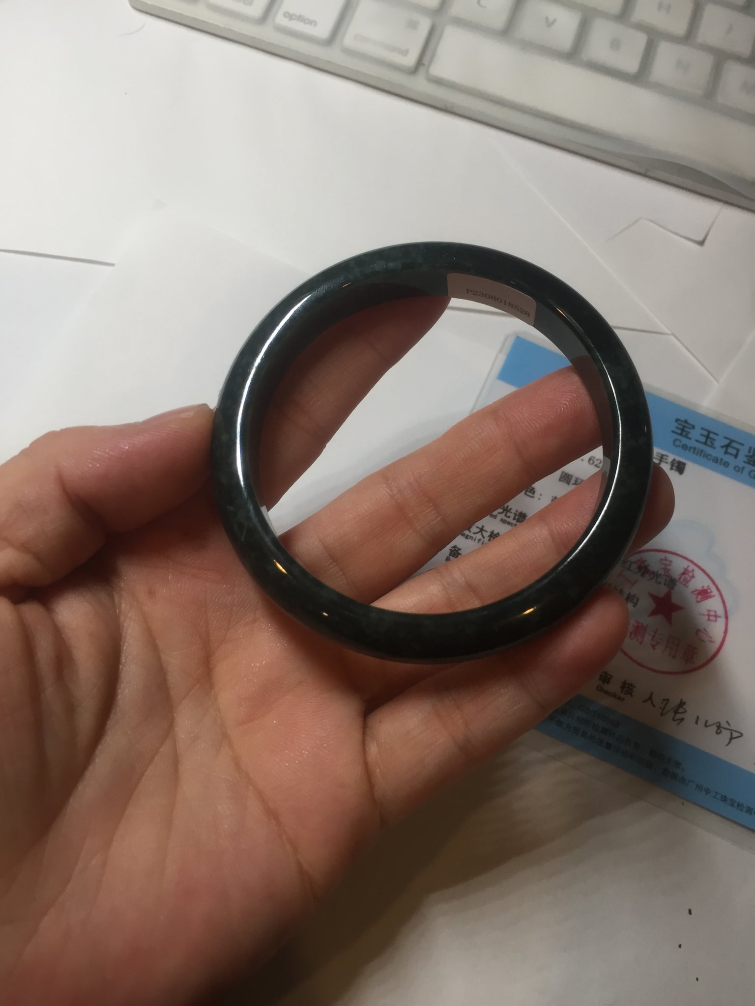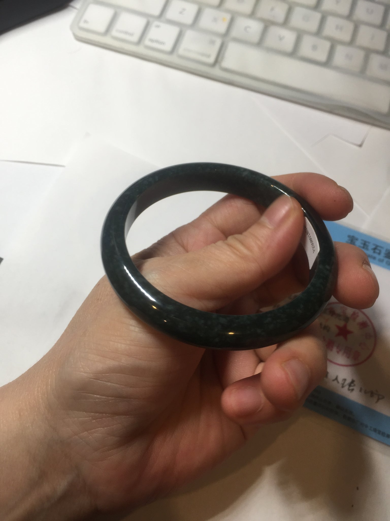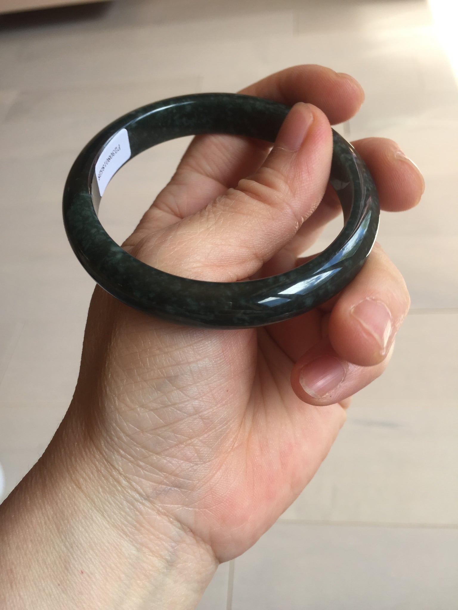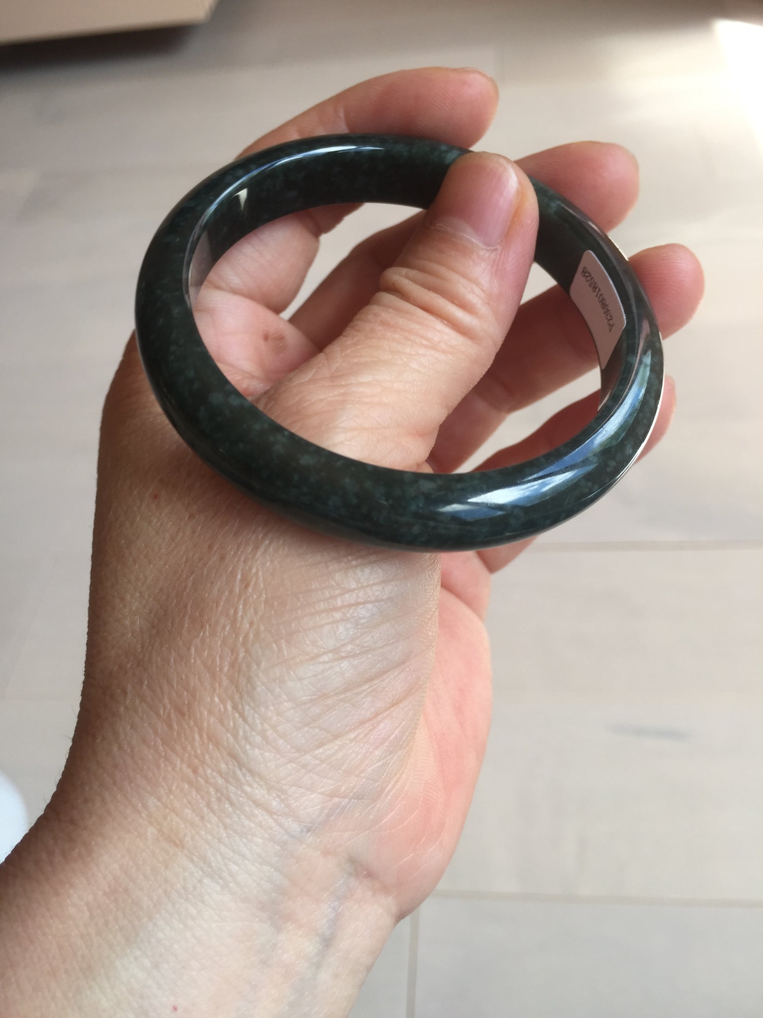 No crack. One hairline. Cotton areas, cotton spots and cotton lines. Has a gray/black color.