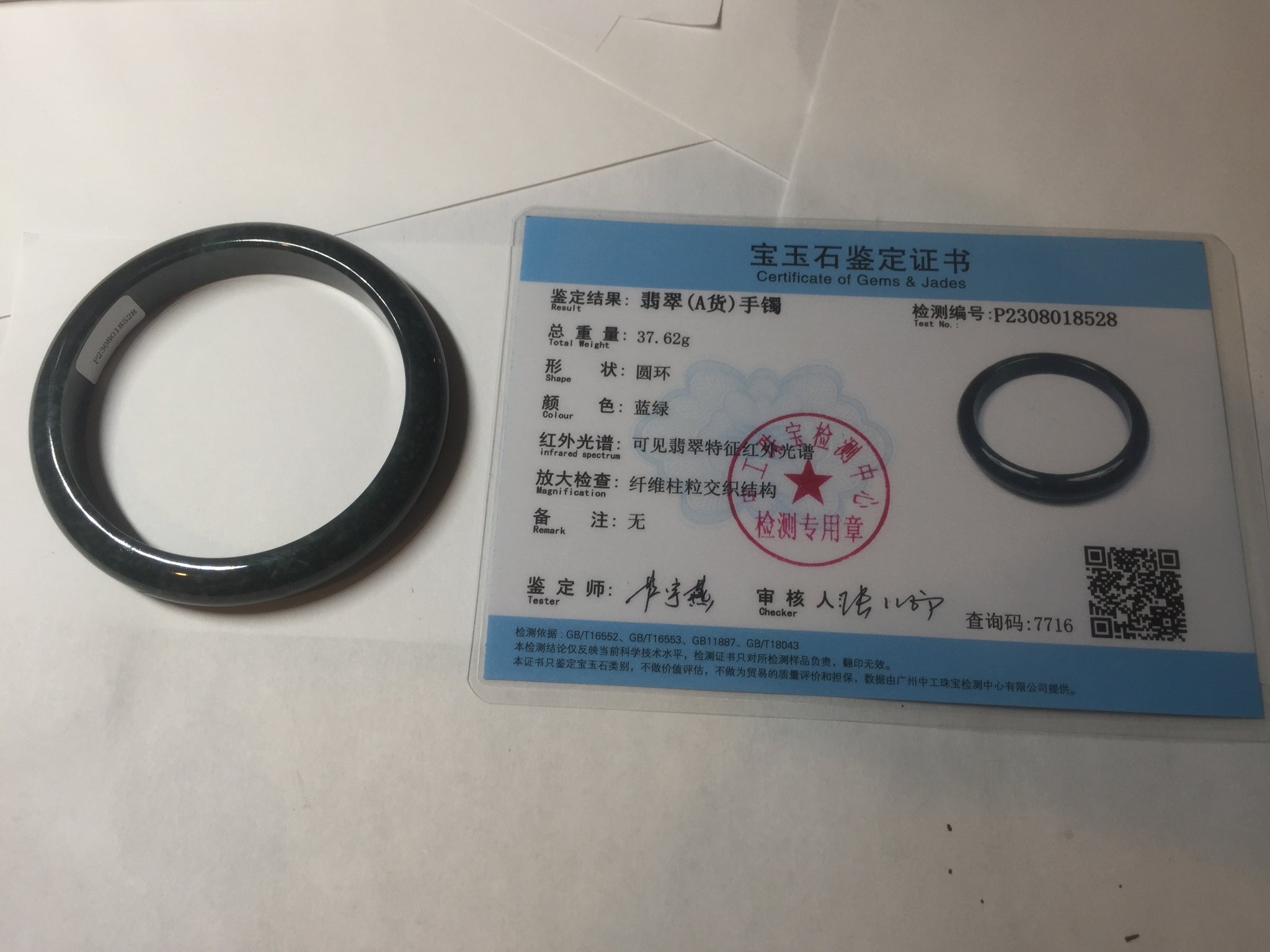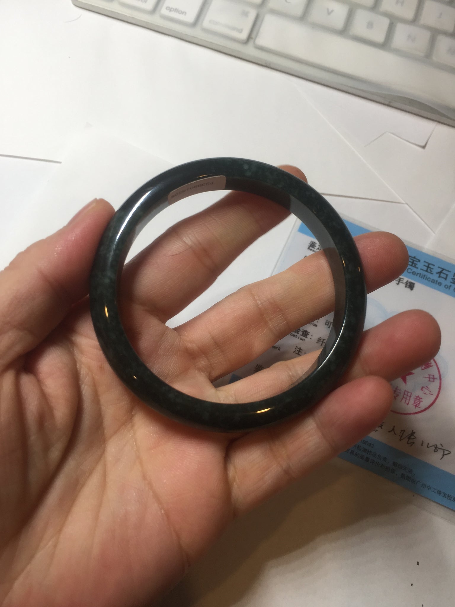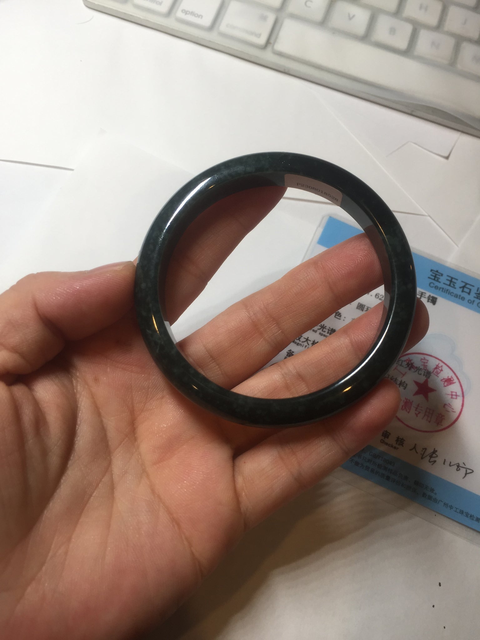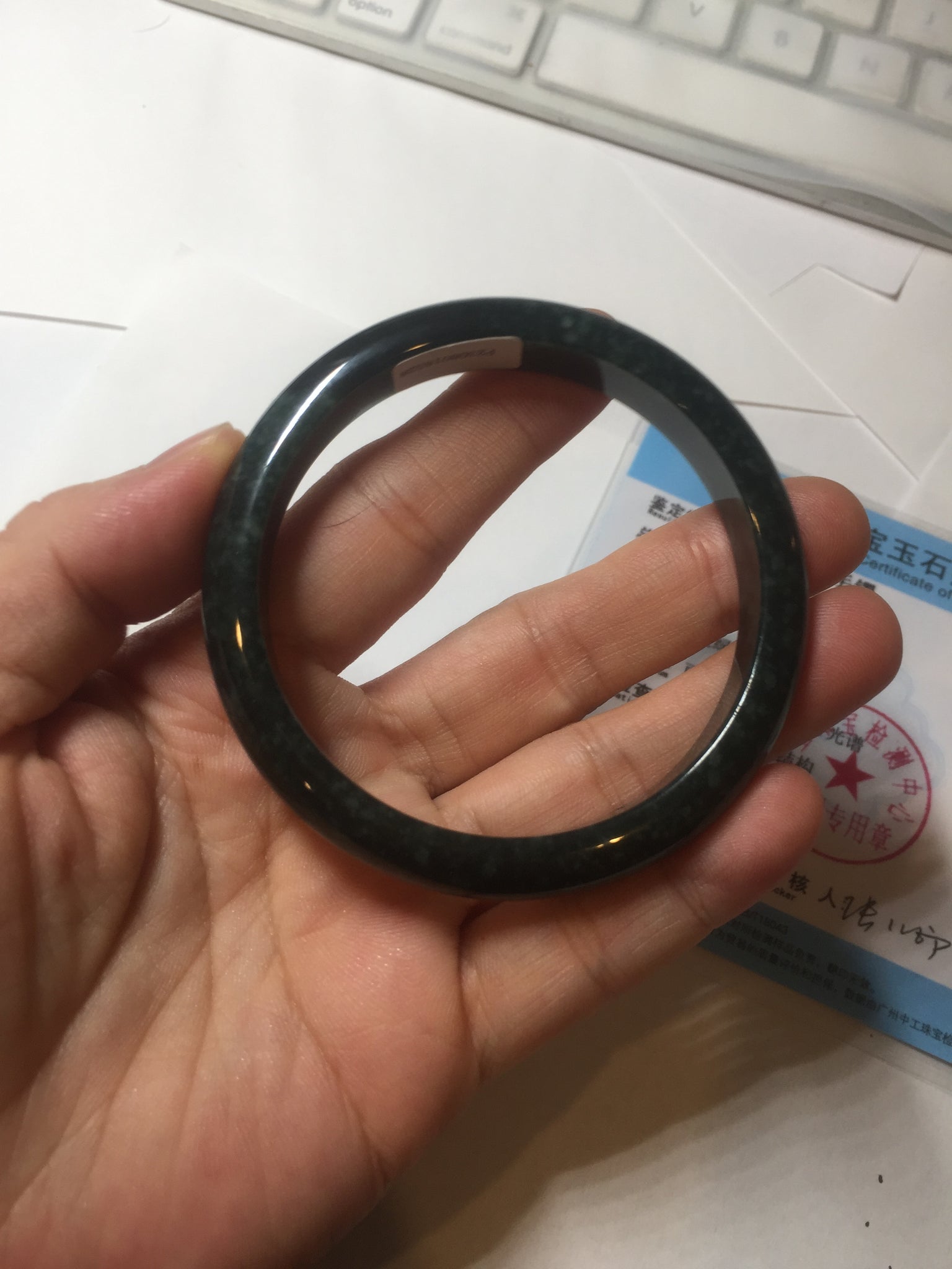 No crack. One hairline. Cotton areas, cotton spots and cotton lines. Has a gray/black color.
