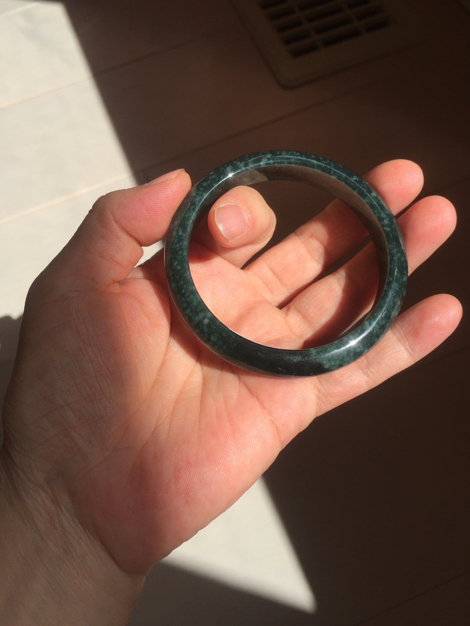 Under the sunlight, it is stunning beautiful blue. Under daylight without the sun, it is dark green/black/blue. Please check both videos to make sure you have a whole idea of what it looks like. Thanks.