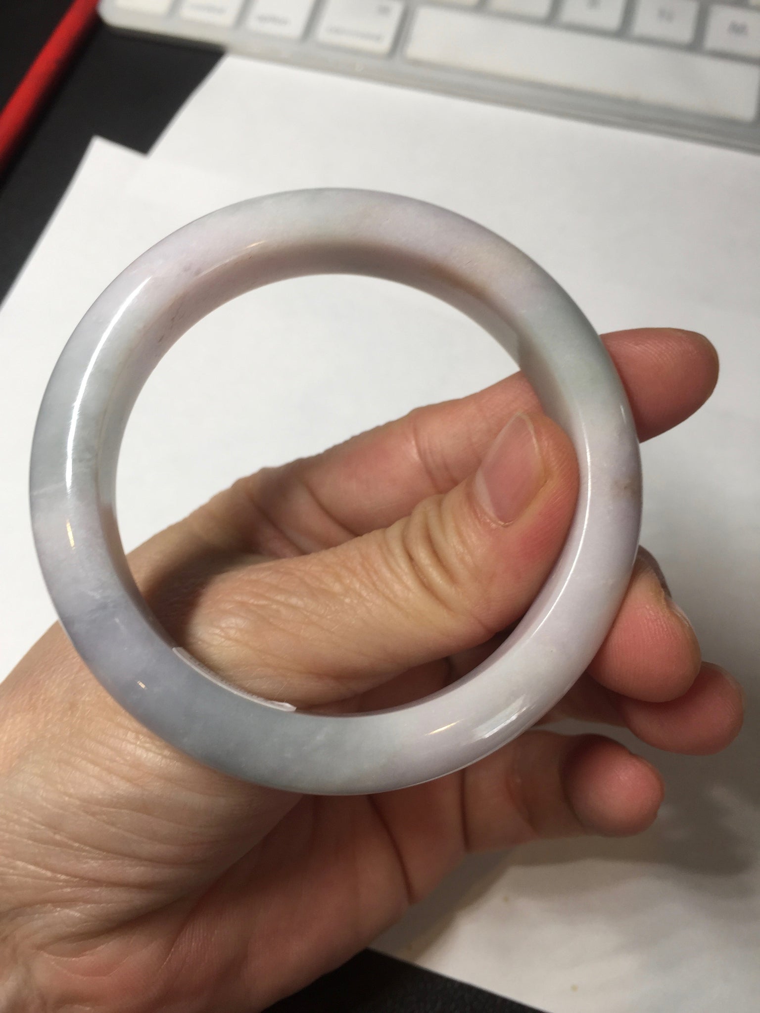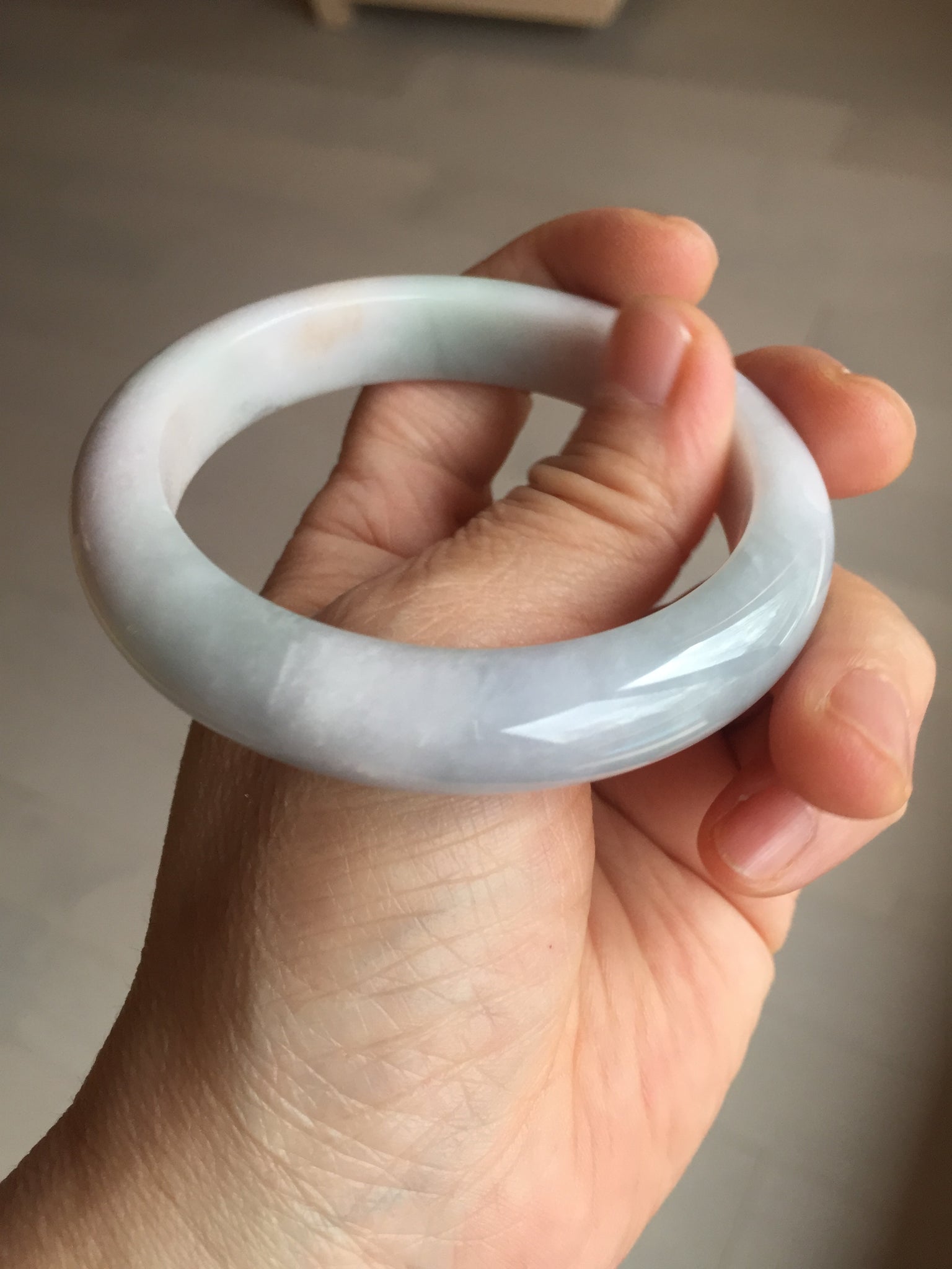 Some surface cracks, rough surfaces with surface cracks or fissures. The bangle is solid (Guaranteed!) Some relatively big cotton areas, and cotton spots.