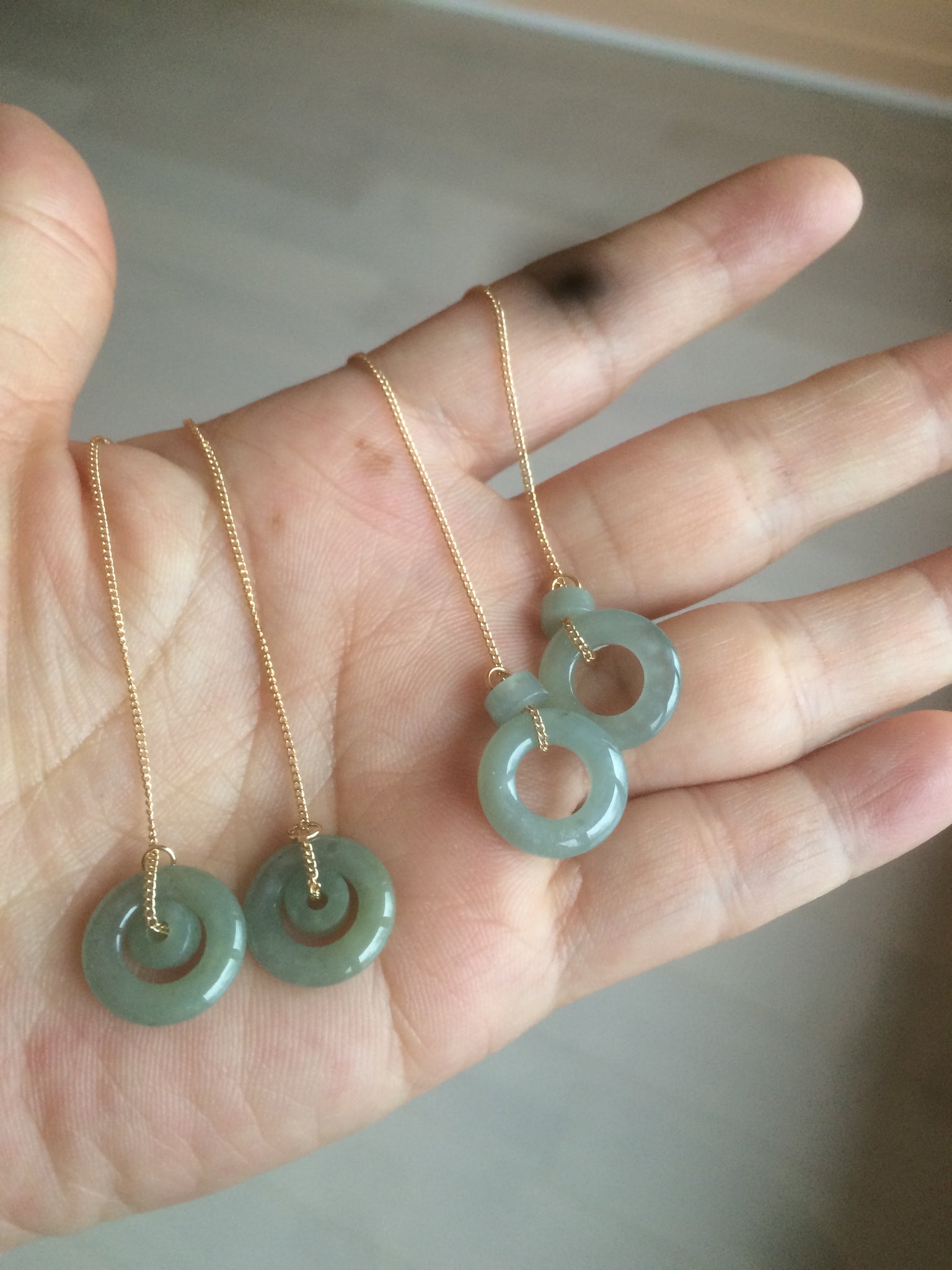 Size: Small Around 13-14mmx2.4mm beads. Handmade beads are all unique. In a pair of earrings, the two jade beads are similar, but not exactly the same size and shape.