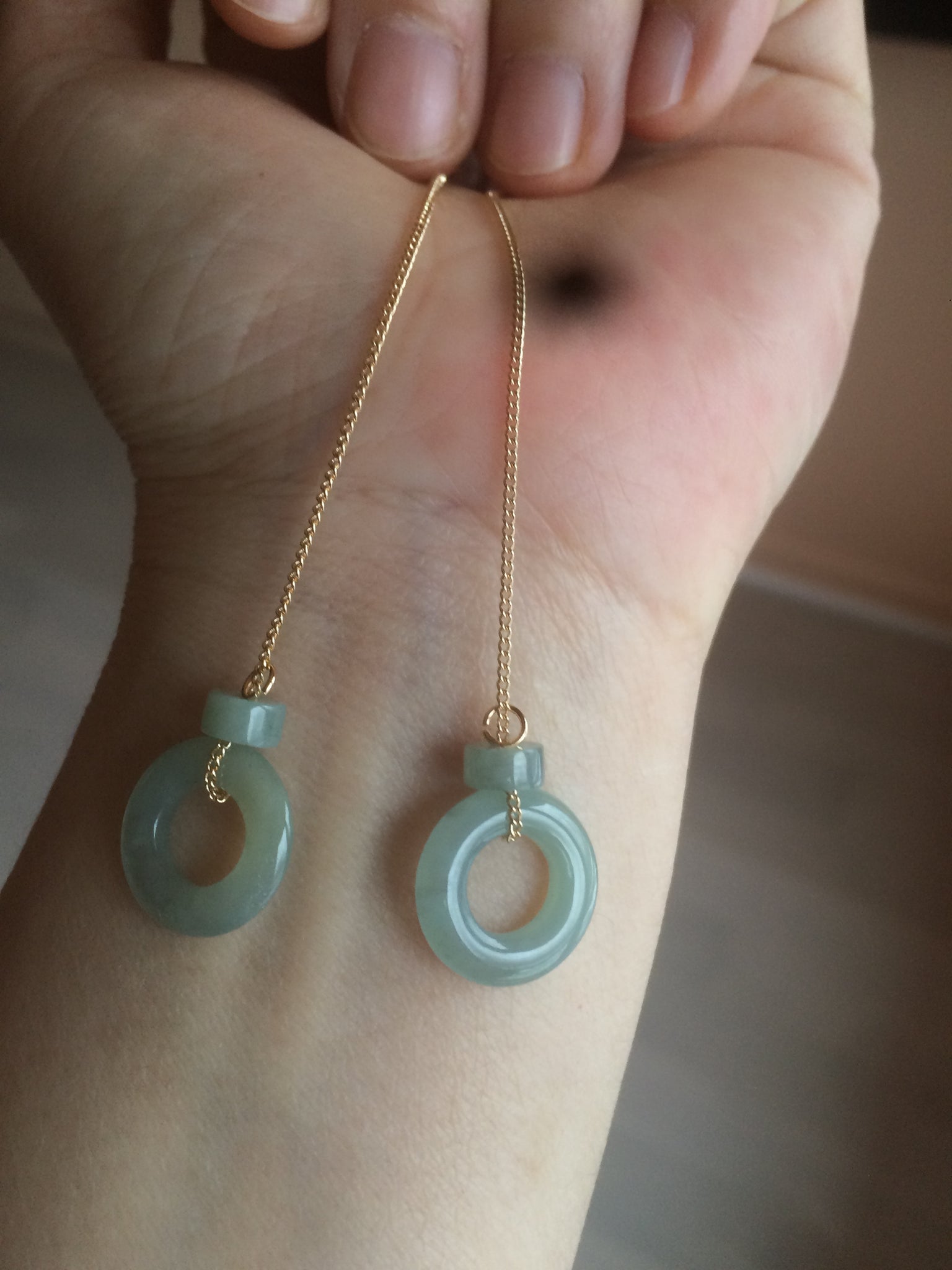 100% Natural Jadeite Jade earring with chain. The dangling chain makes it easy to adjust how long you want your earring to be.