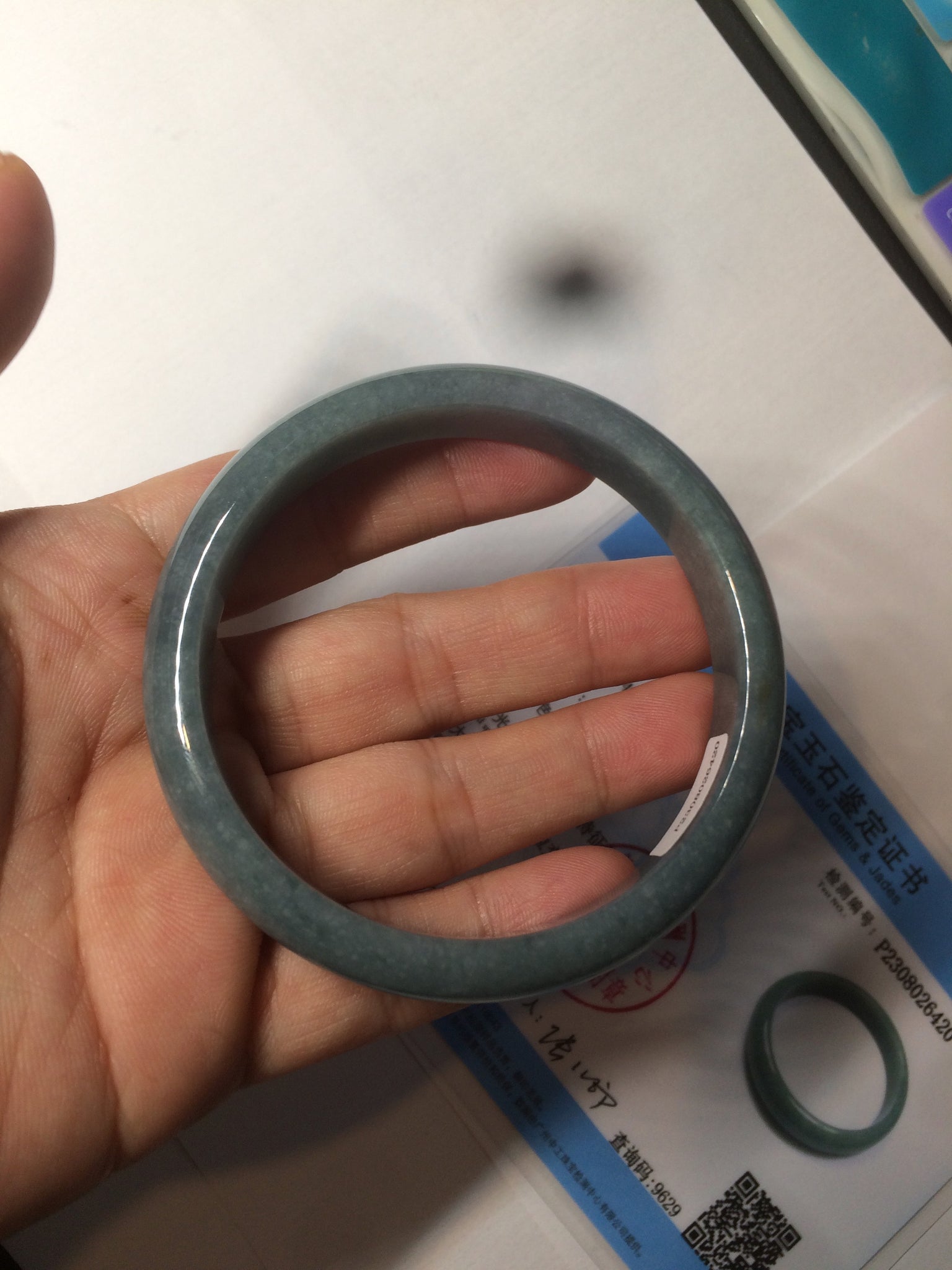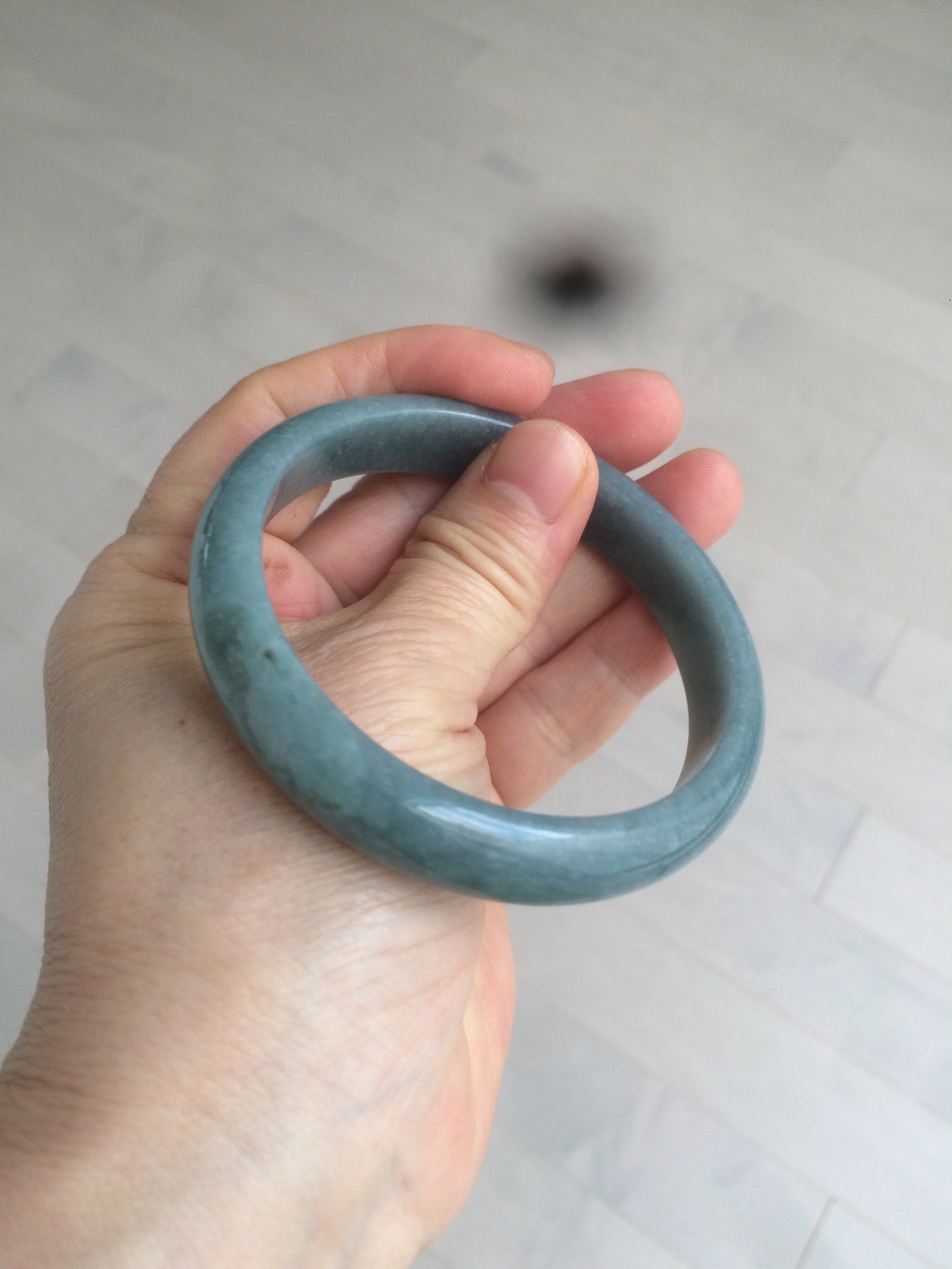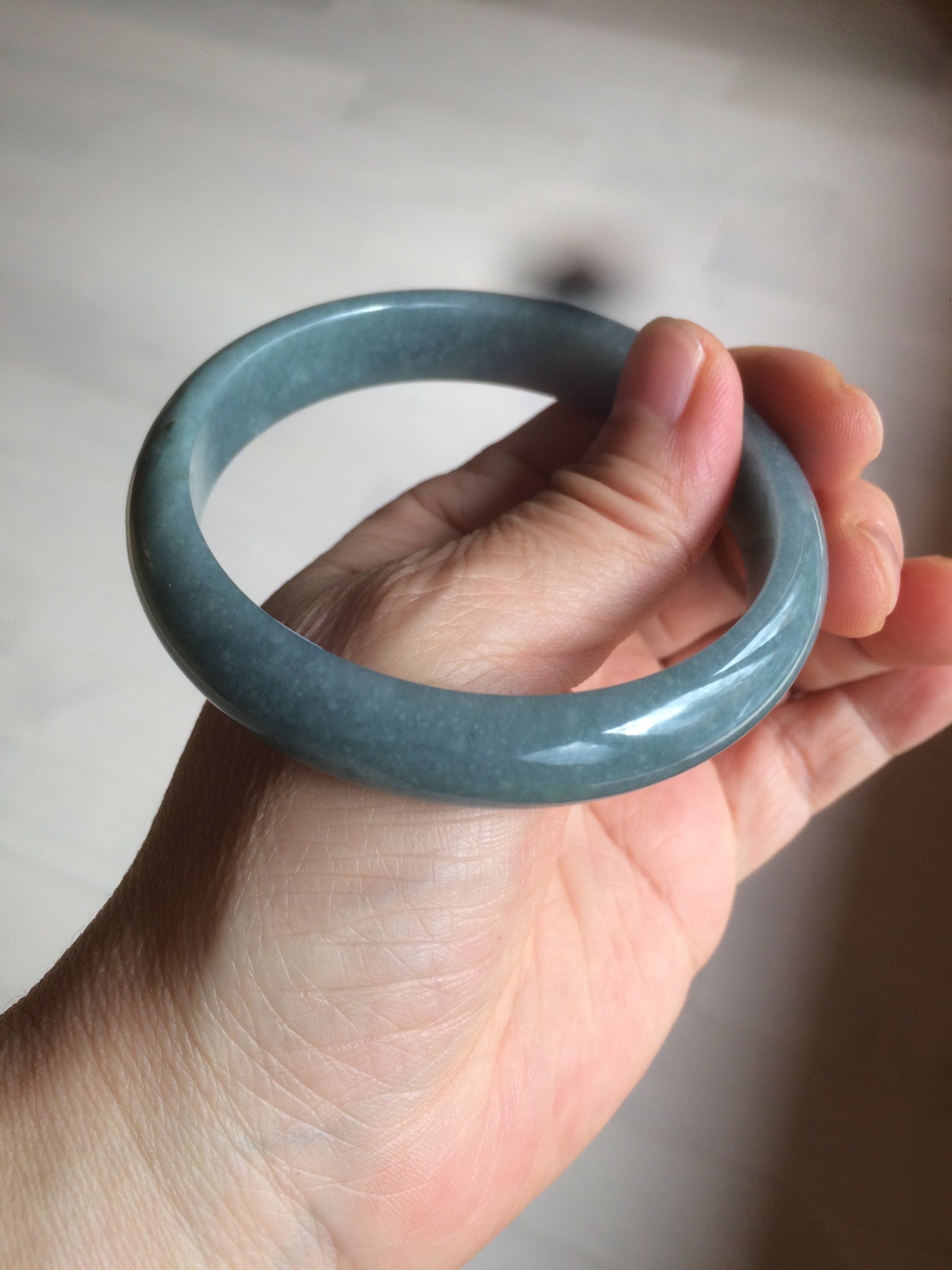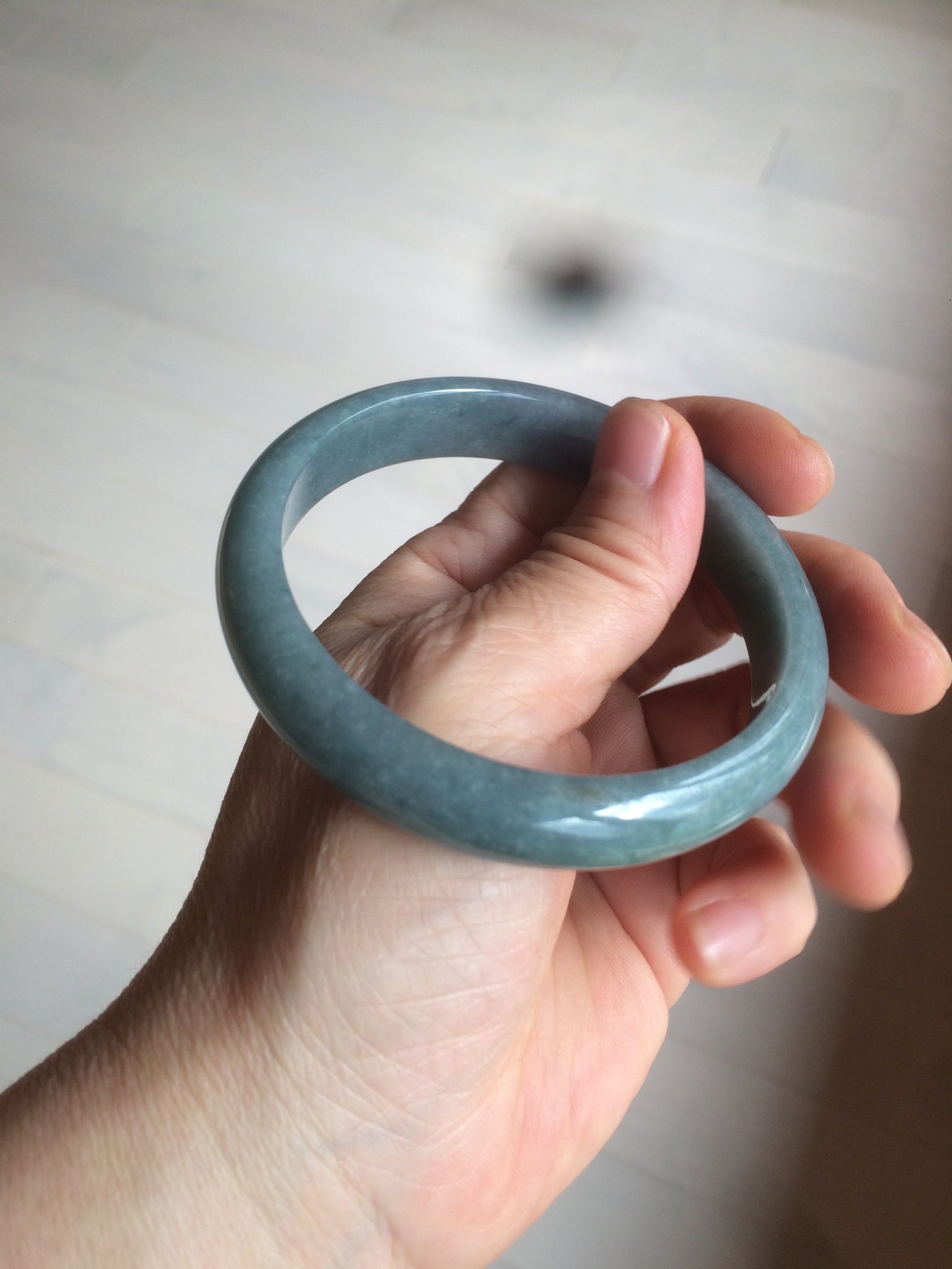 59mm Certified Type A 100% Natural light blue/gray Guatemala Jadeite bangle Y134-6420