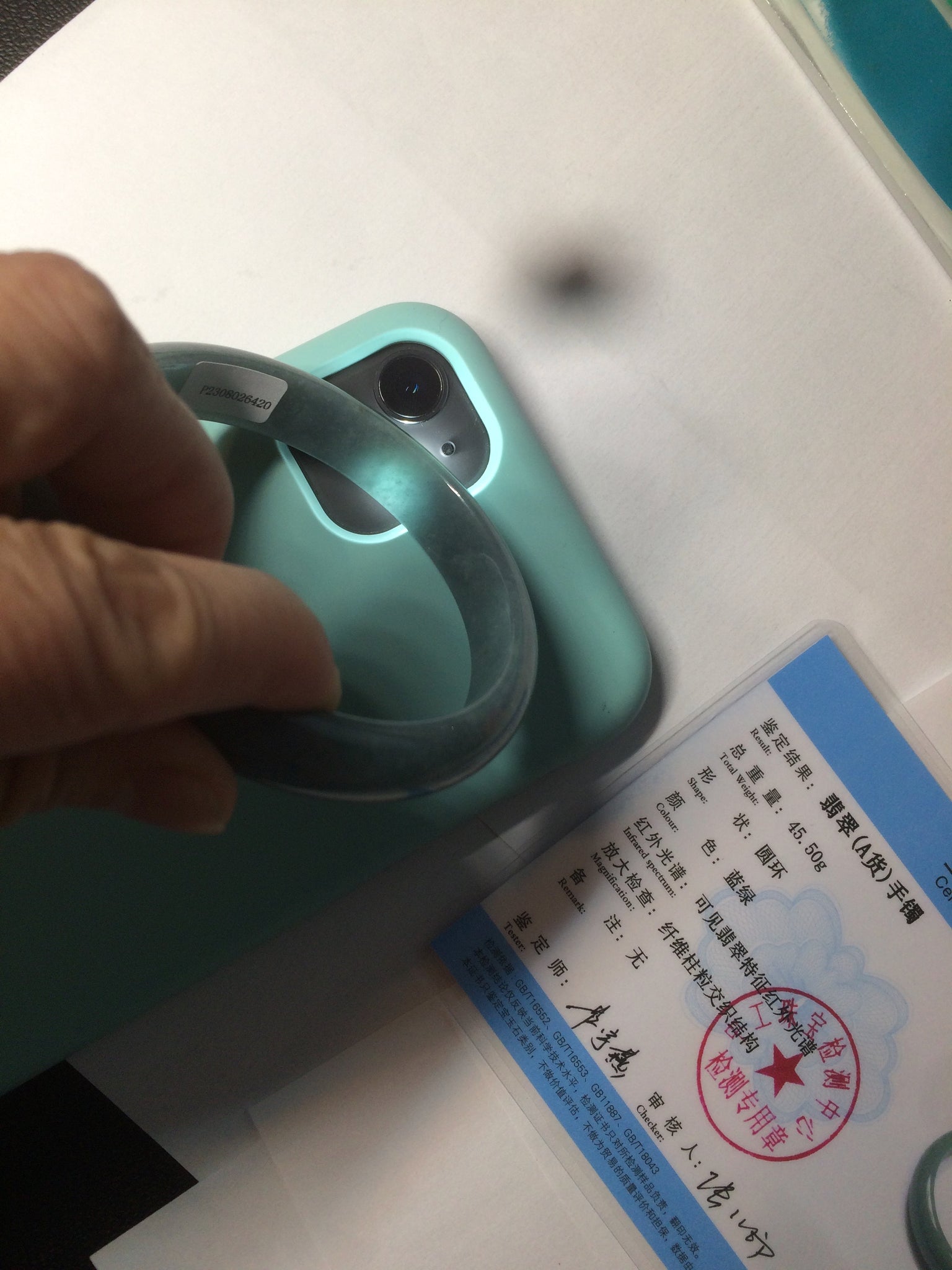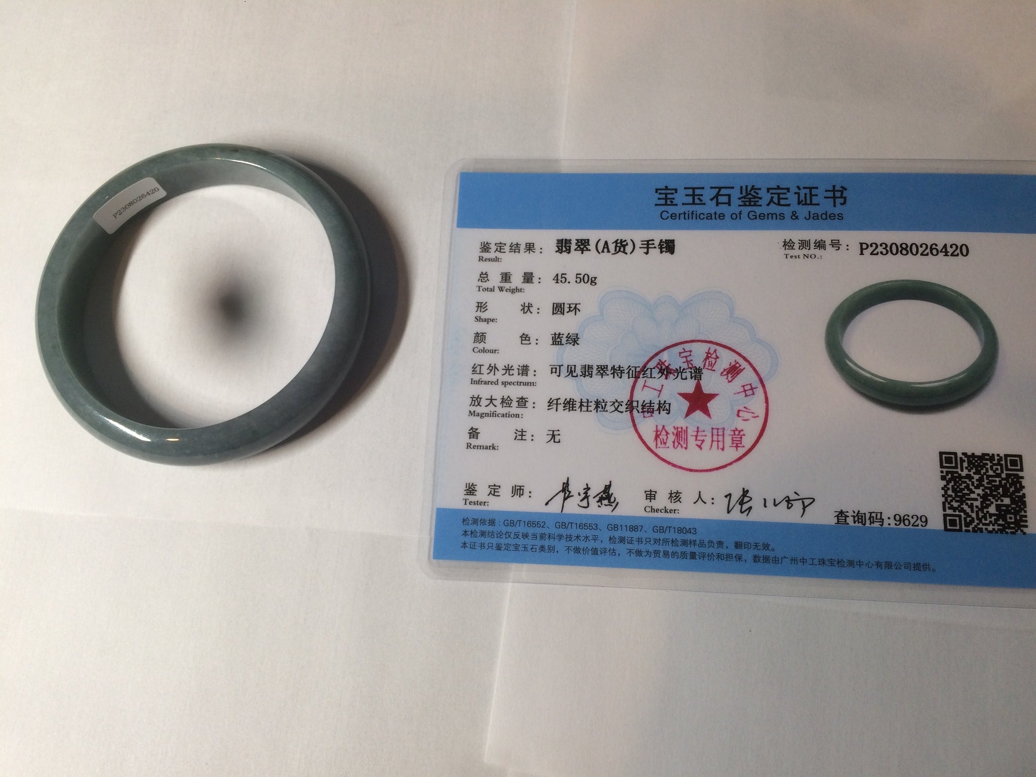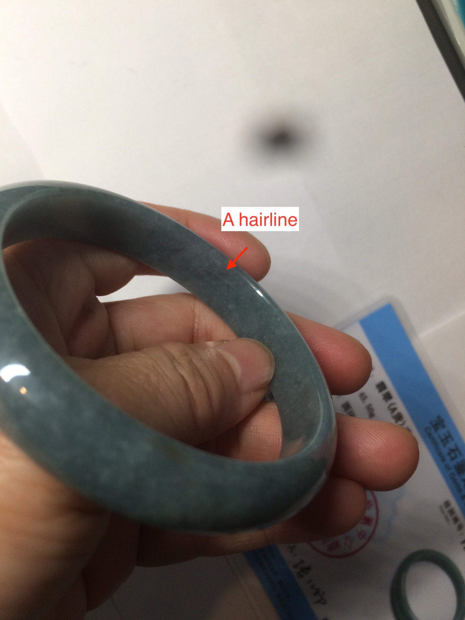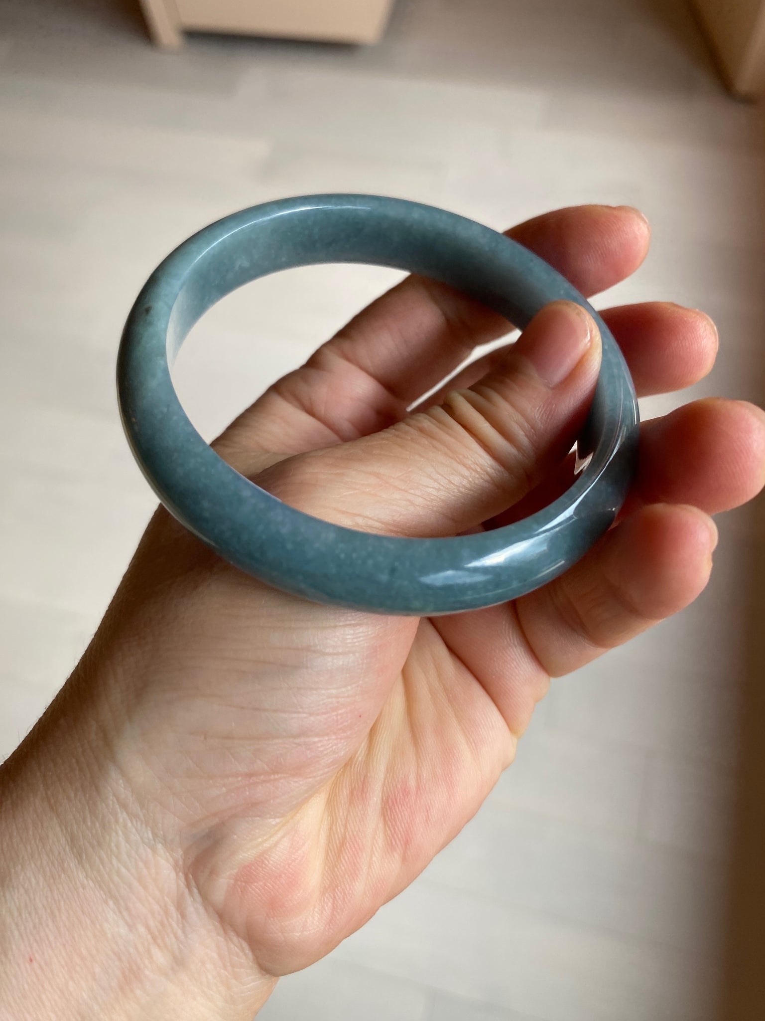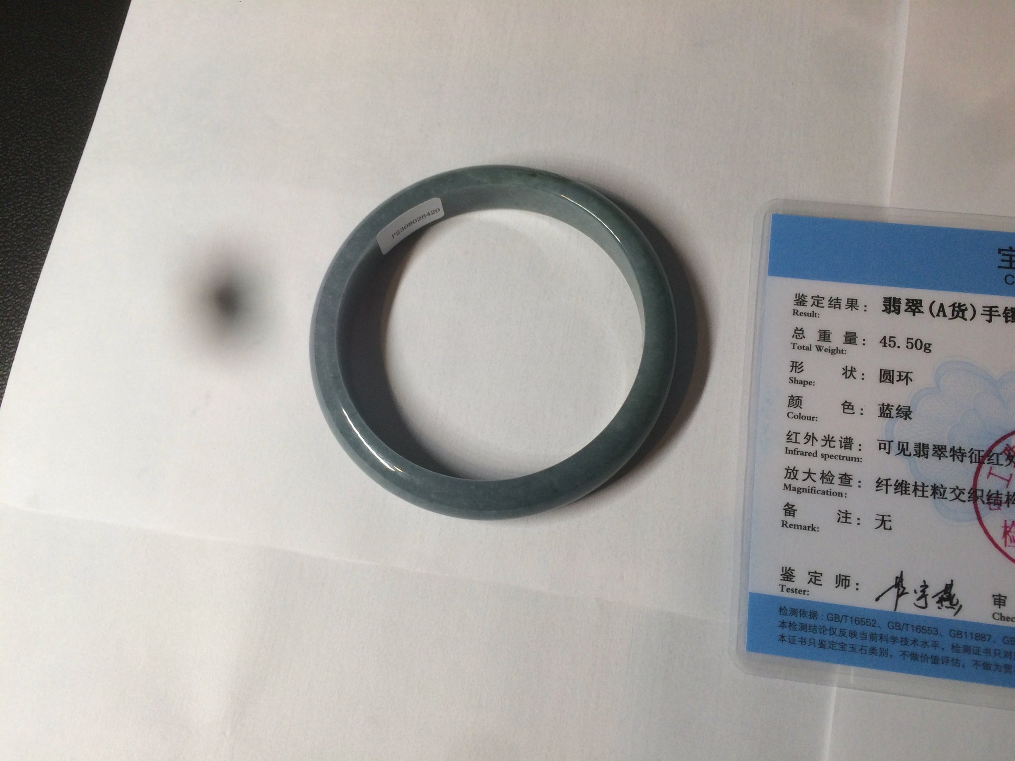 59mm Certified Type A 100% Natural light blue/gray Guatemala Jadeite bangle Y134-6420