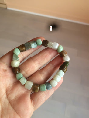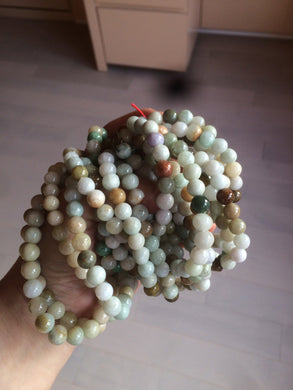7-7.6mm 100% natural type A green/white/yellow/brown jadeite jade beads bracelet AQ73