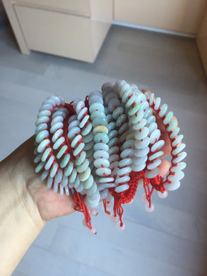 100% natural type A green white Safety Guardian Button donut jadeite jade thread woven bracelets PD99