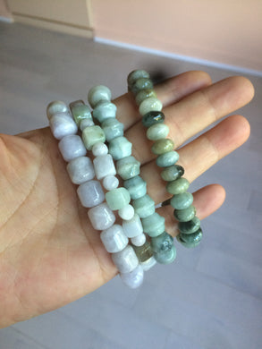 100% natural green/white type A jadeite jade Capsule bead bracelet AE-bracelet