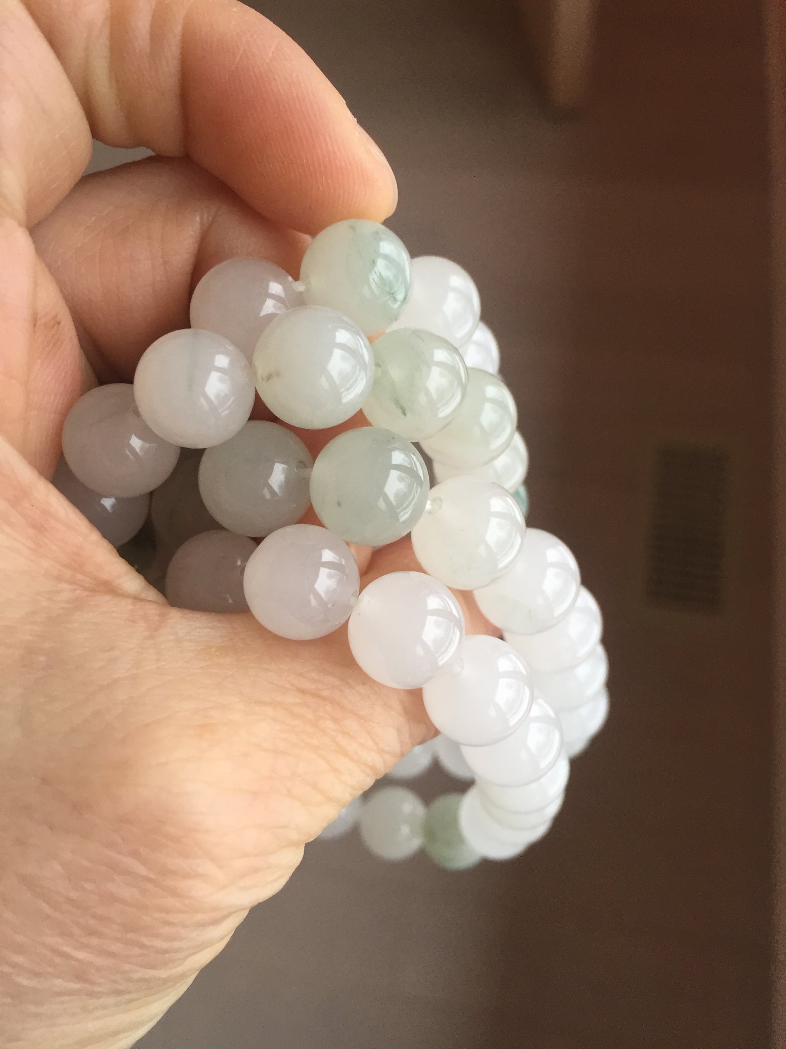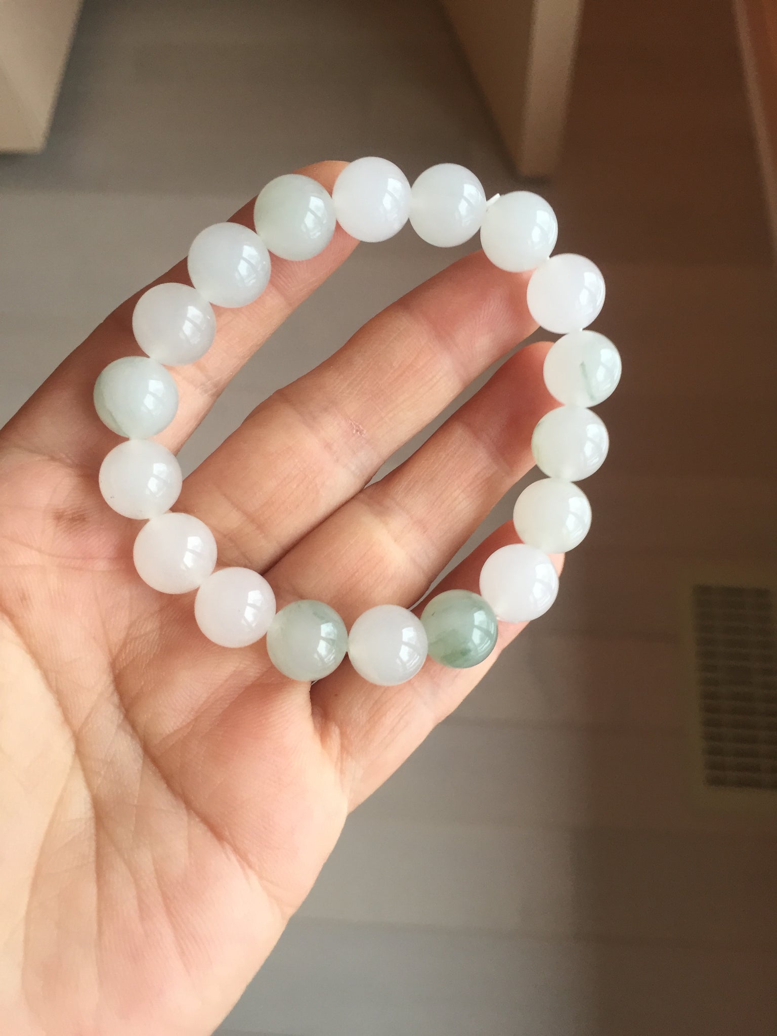 Bead size 10-10.5mm Icy watery. Good quality Quartzite. No crack.No hairline. The green areas may feel slightly different to the touch due to natural mineral differences.