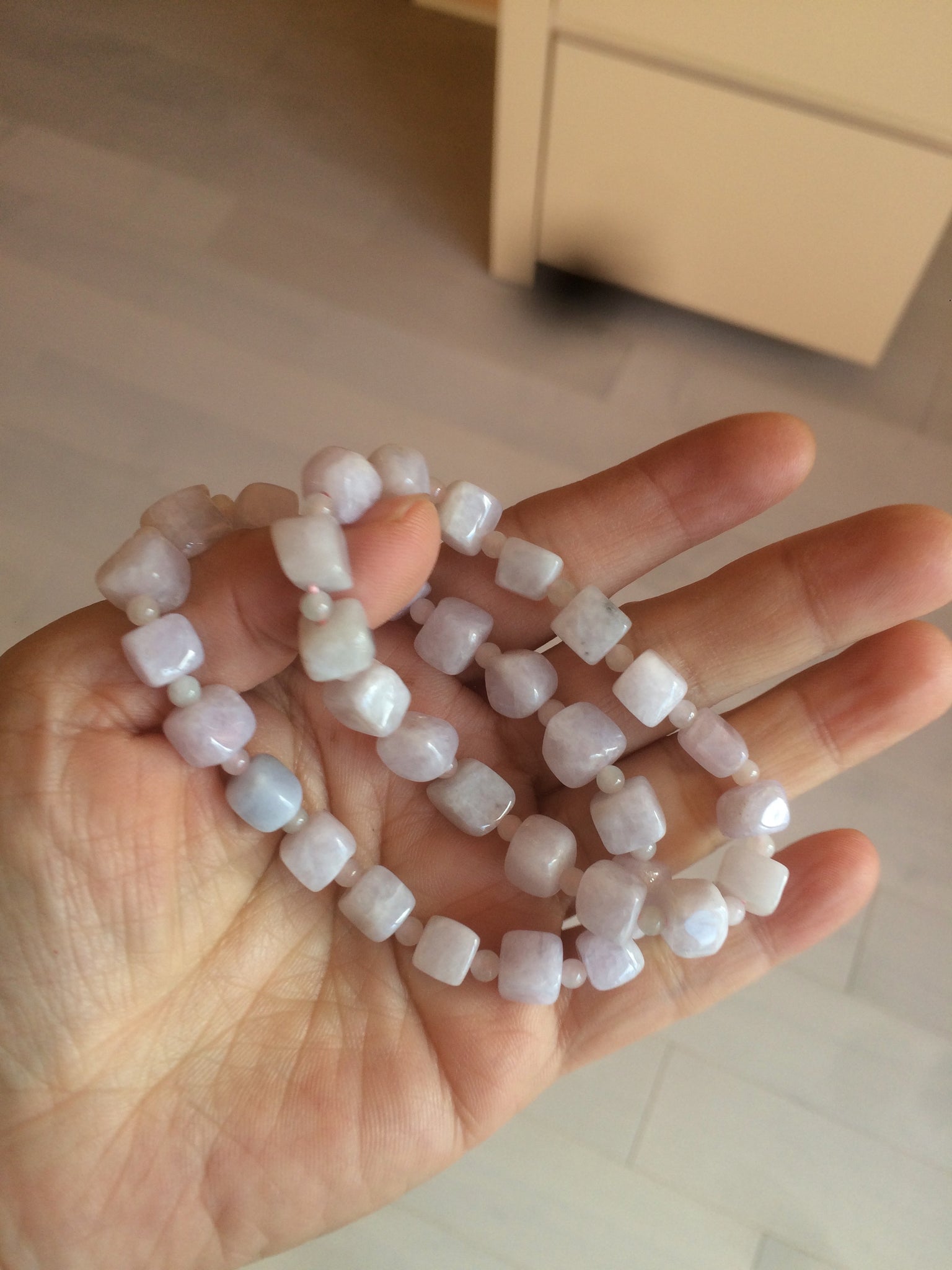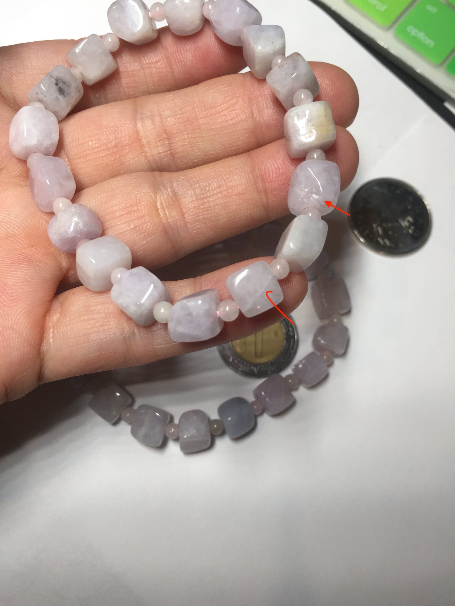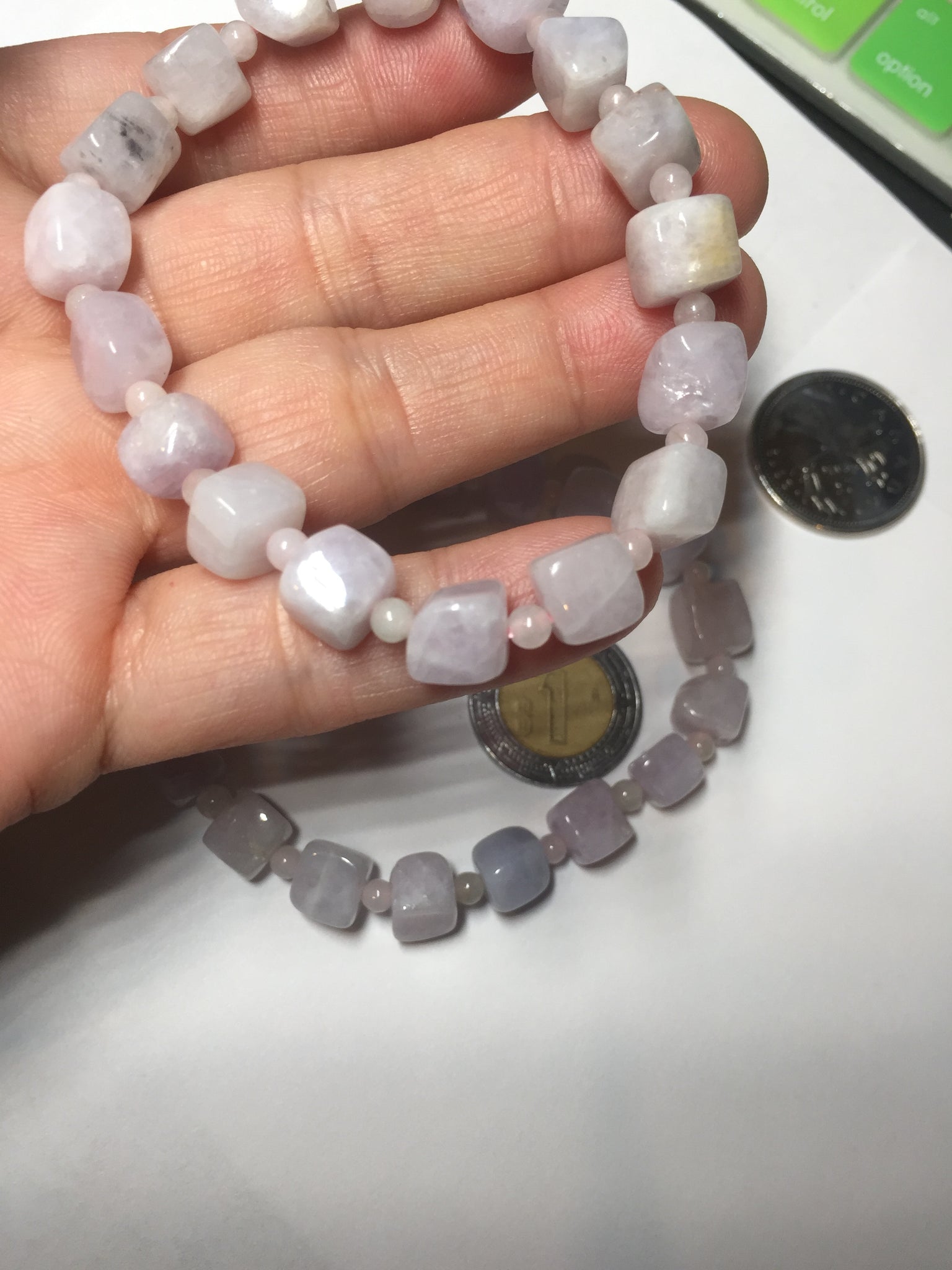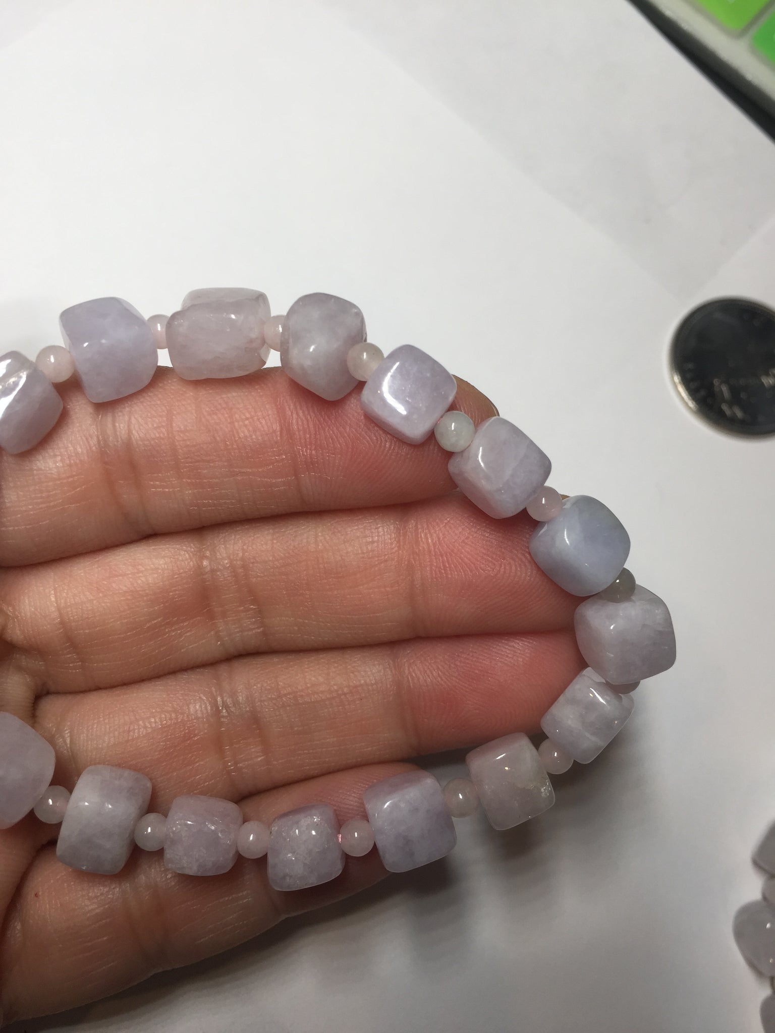 Note: The beads are not big. Please refer to the coin and the measurement. They may have hairlines, cotton lines, or small notches. The color is more white than purple. The purple is super light. lighter than in photos due to the purple color always being more camera-friendly.