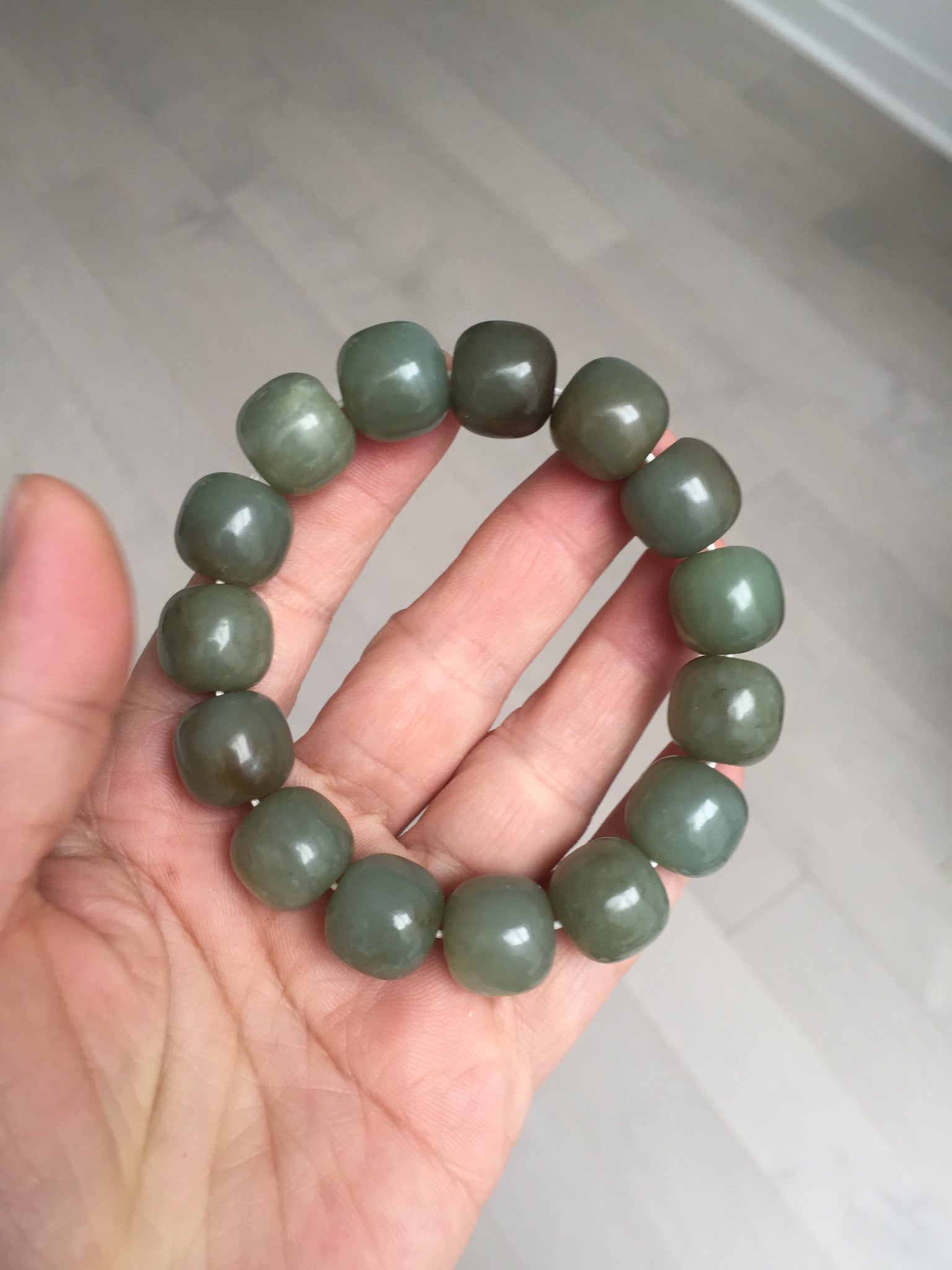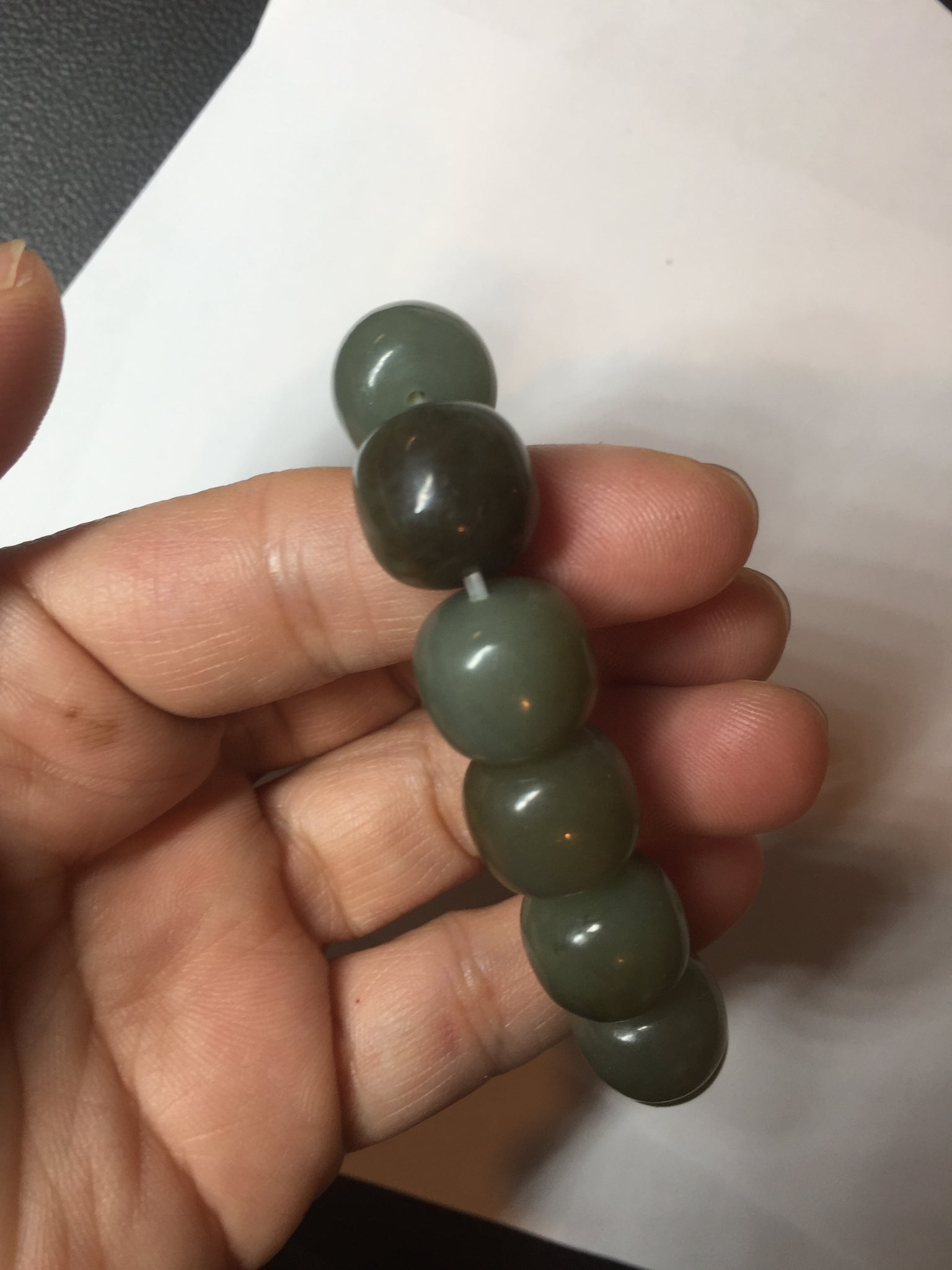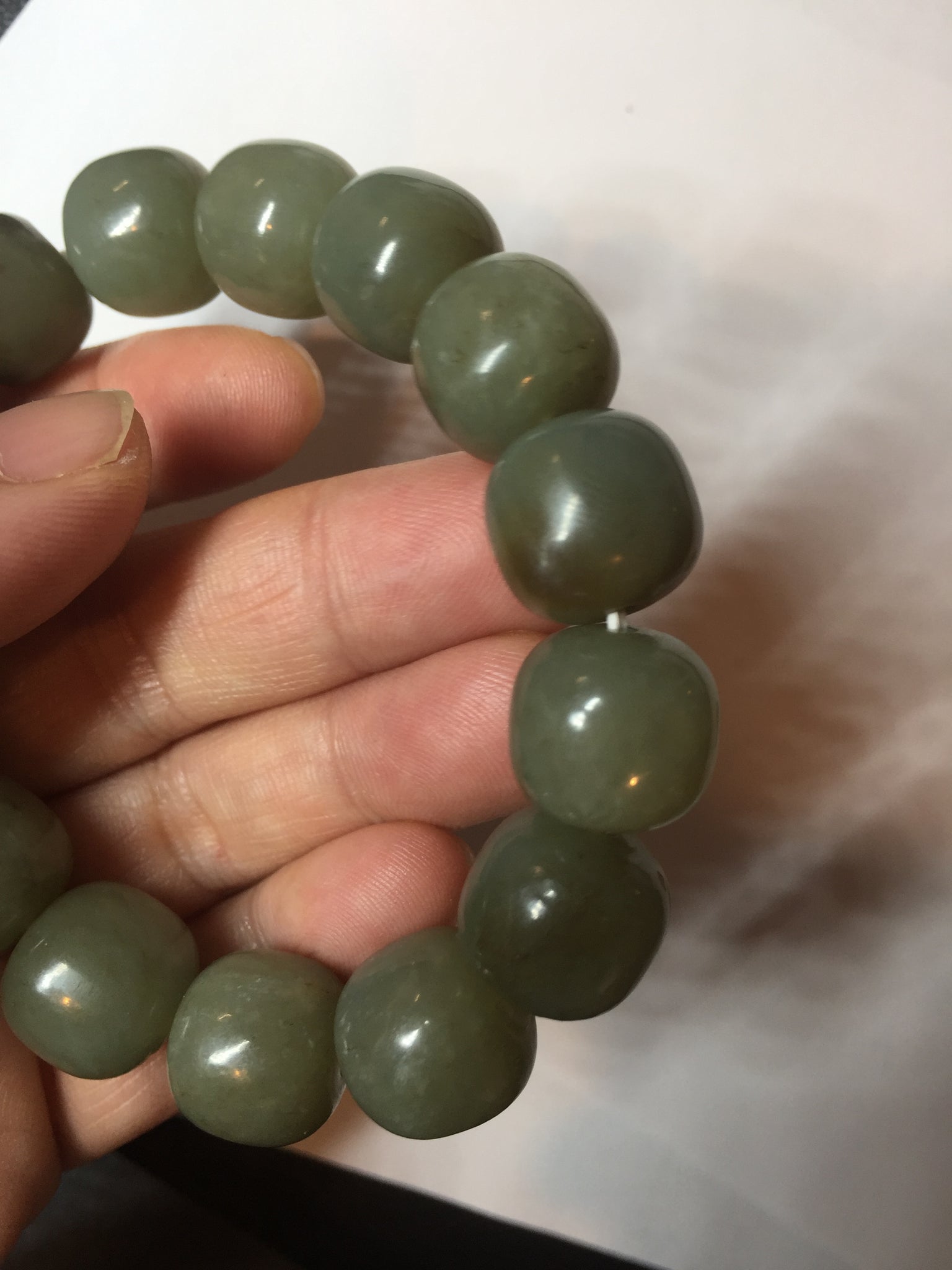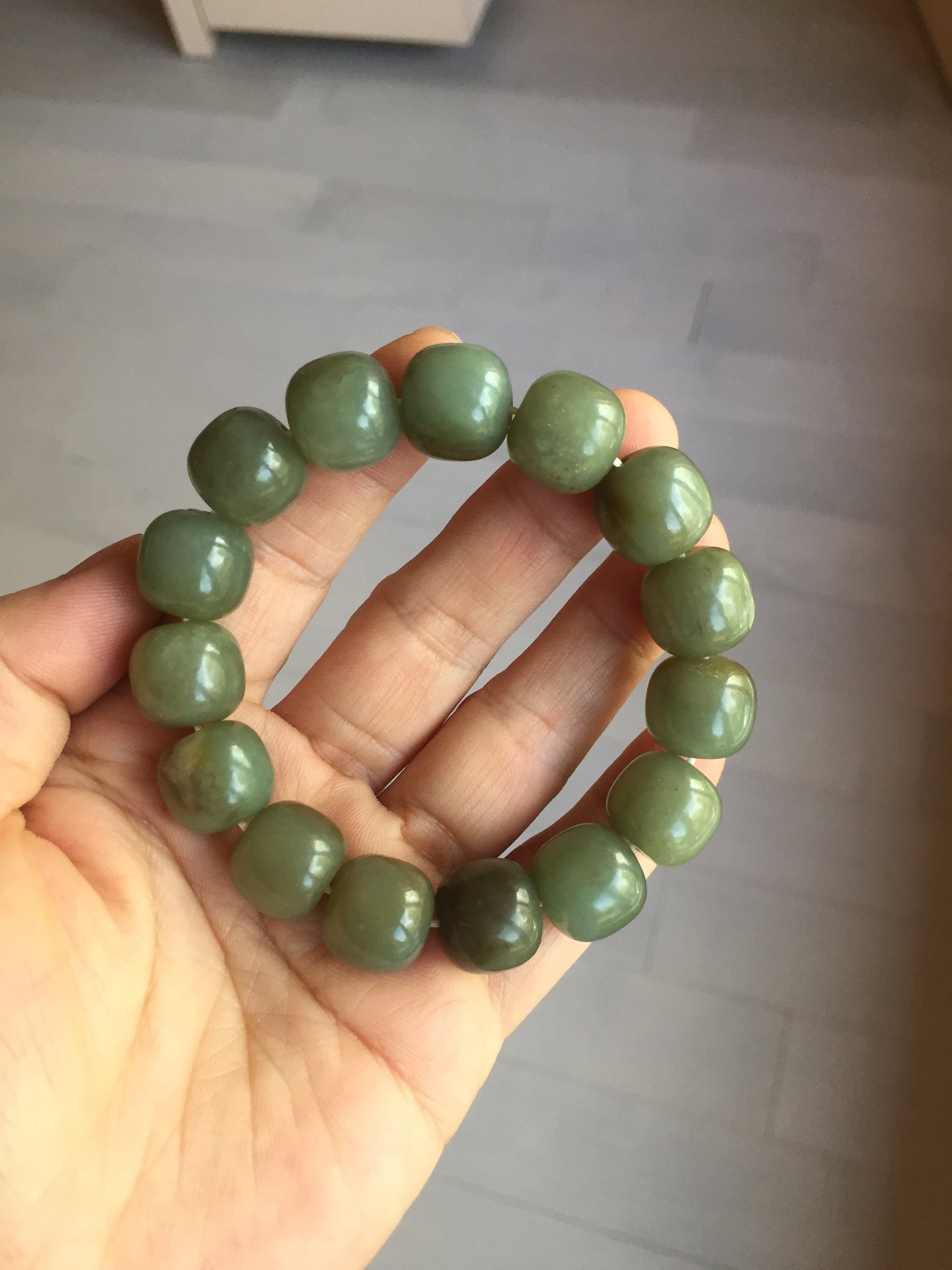 • Load image into Gallery viewer, 100% Natural 13.8x12.5mm dark green/gray/brown vintage style nephrite Jade bead bracelet HF76