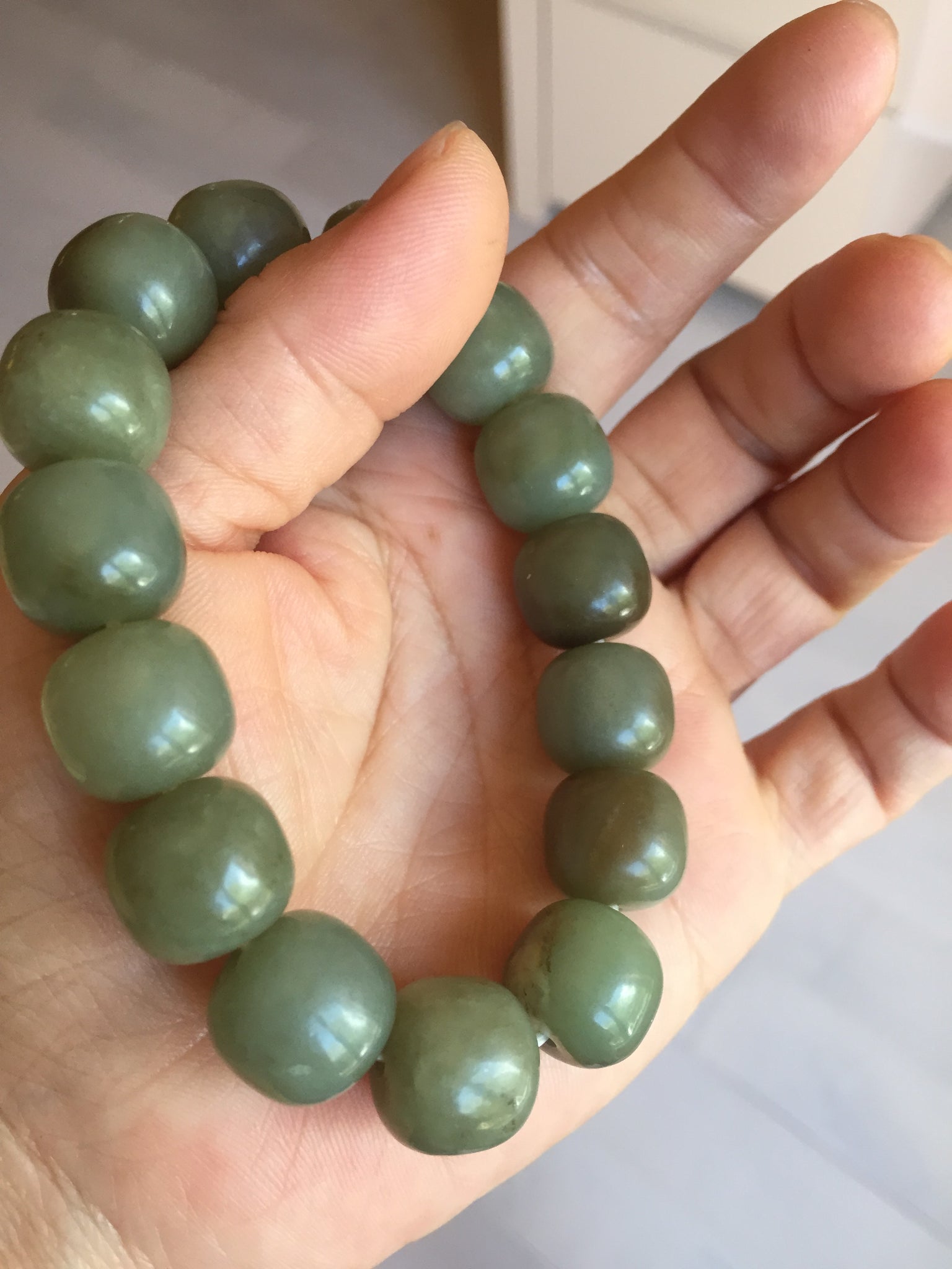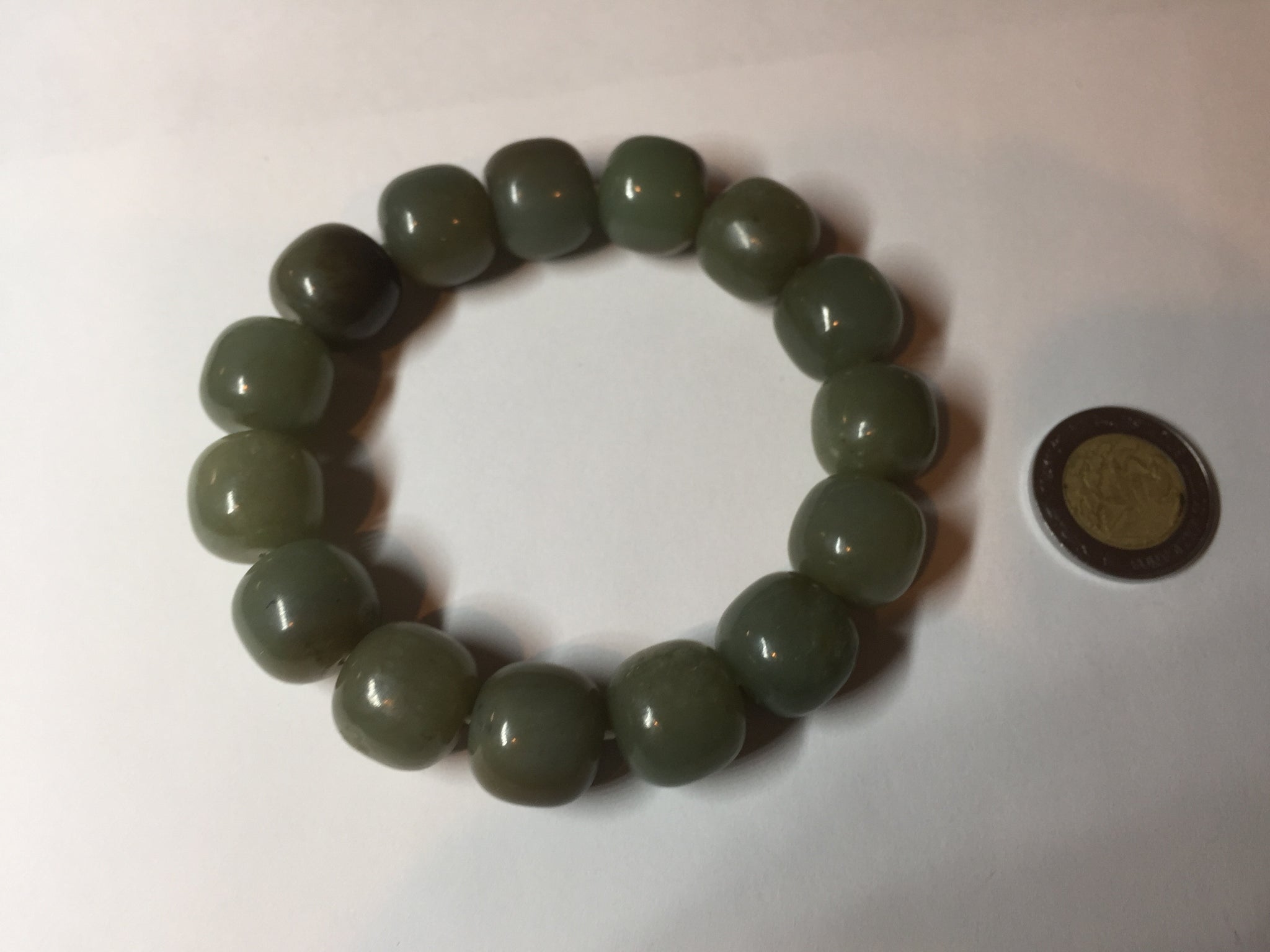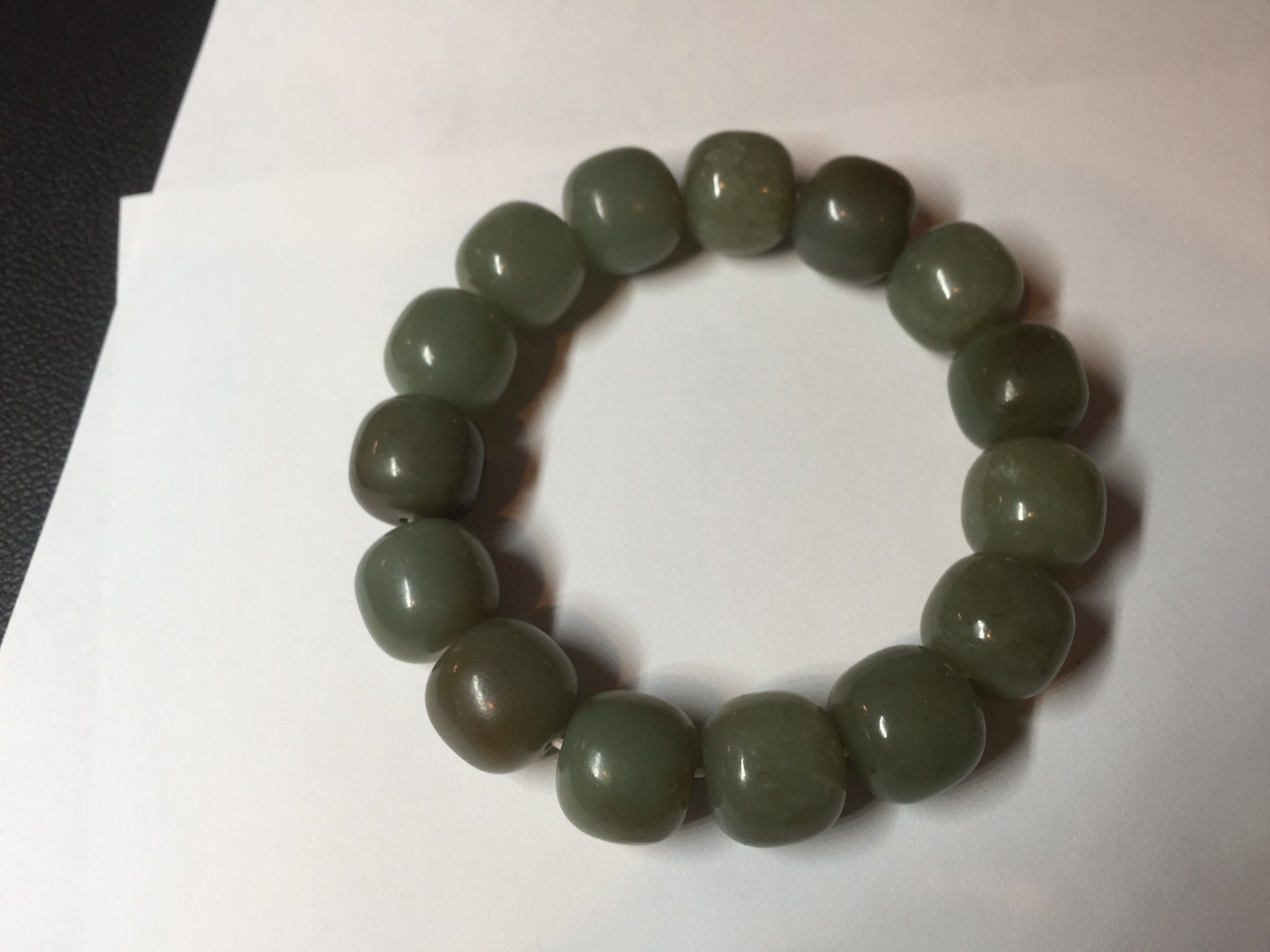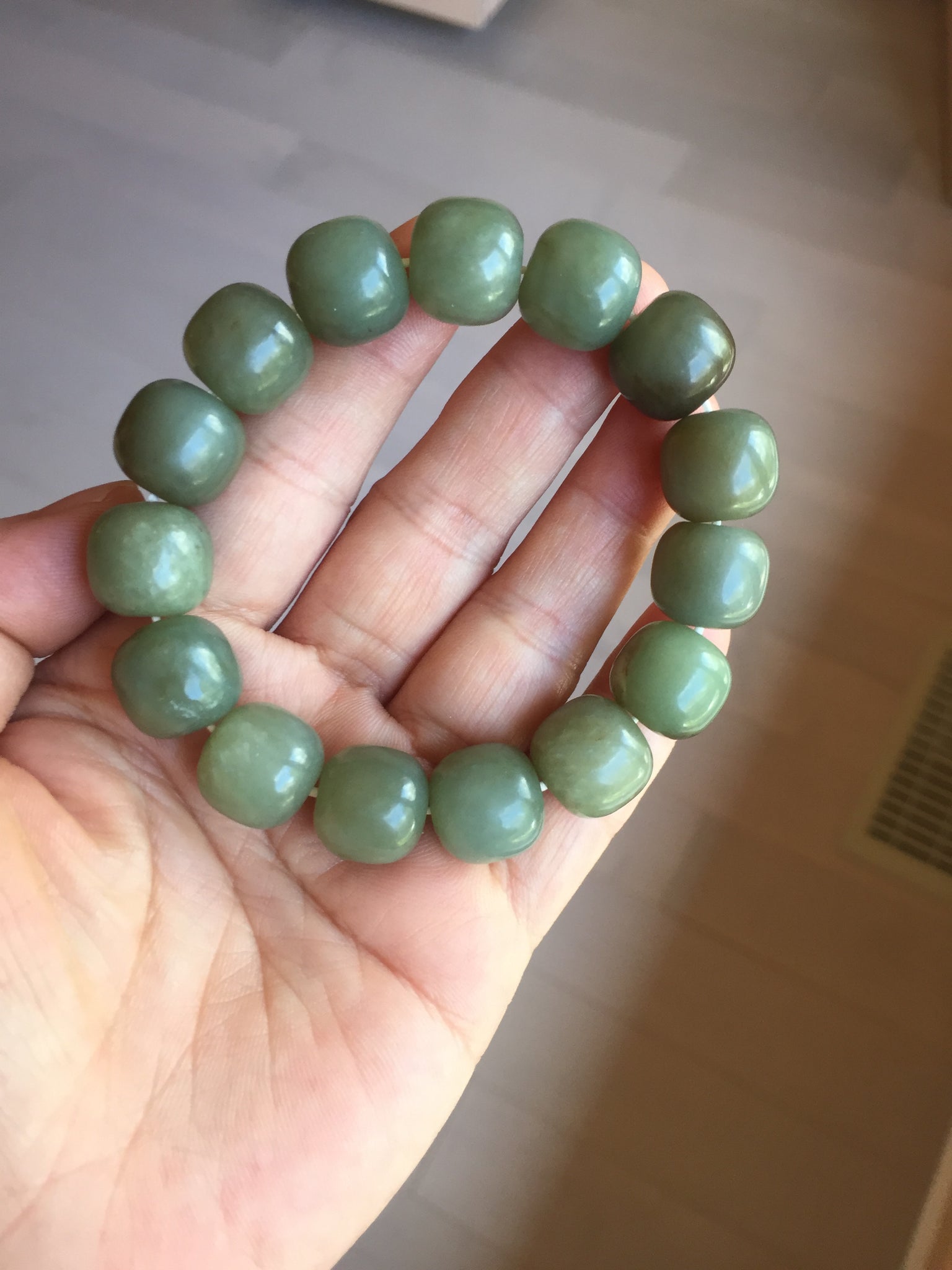• Load image into Gallery viewer, 100% Natural 13.8x12.5mm dark green/gray/brown vintage style nephrite Jade bead bracelet HF76