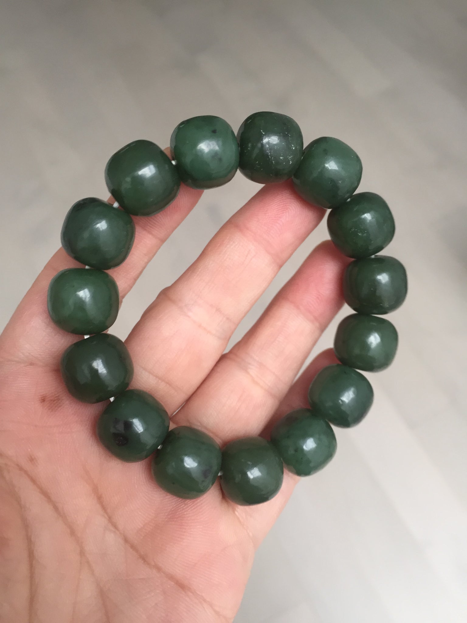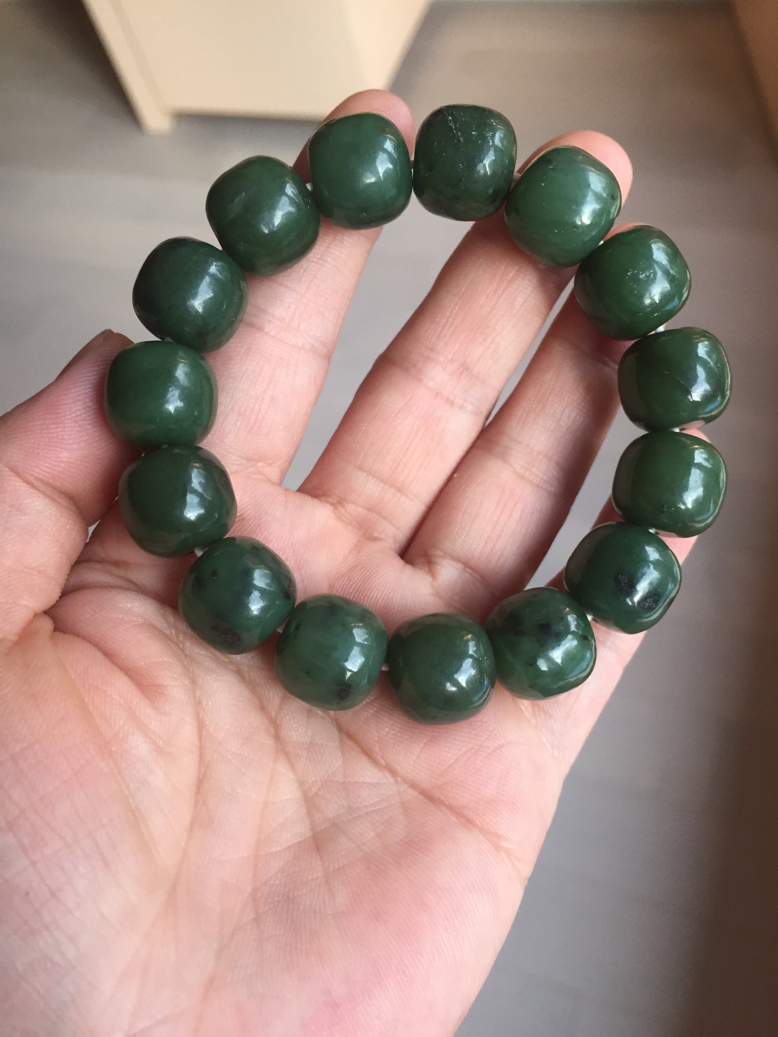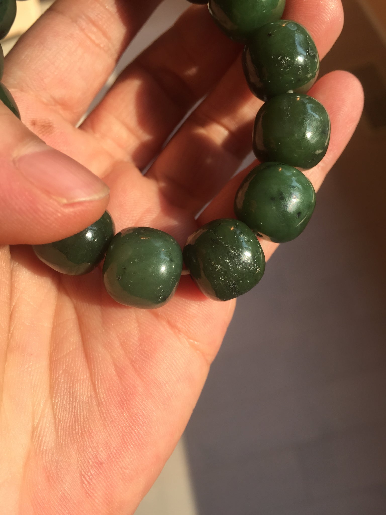 No cracks. One bead has a hairline. Some black spots, maybe small mine pits, and cotton spots/ lines/ areas/ brown areas.