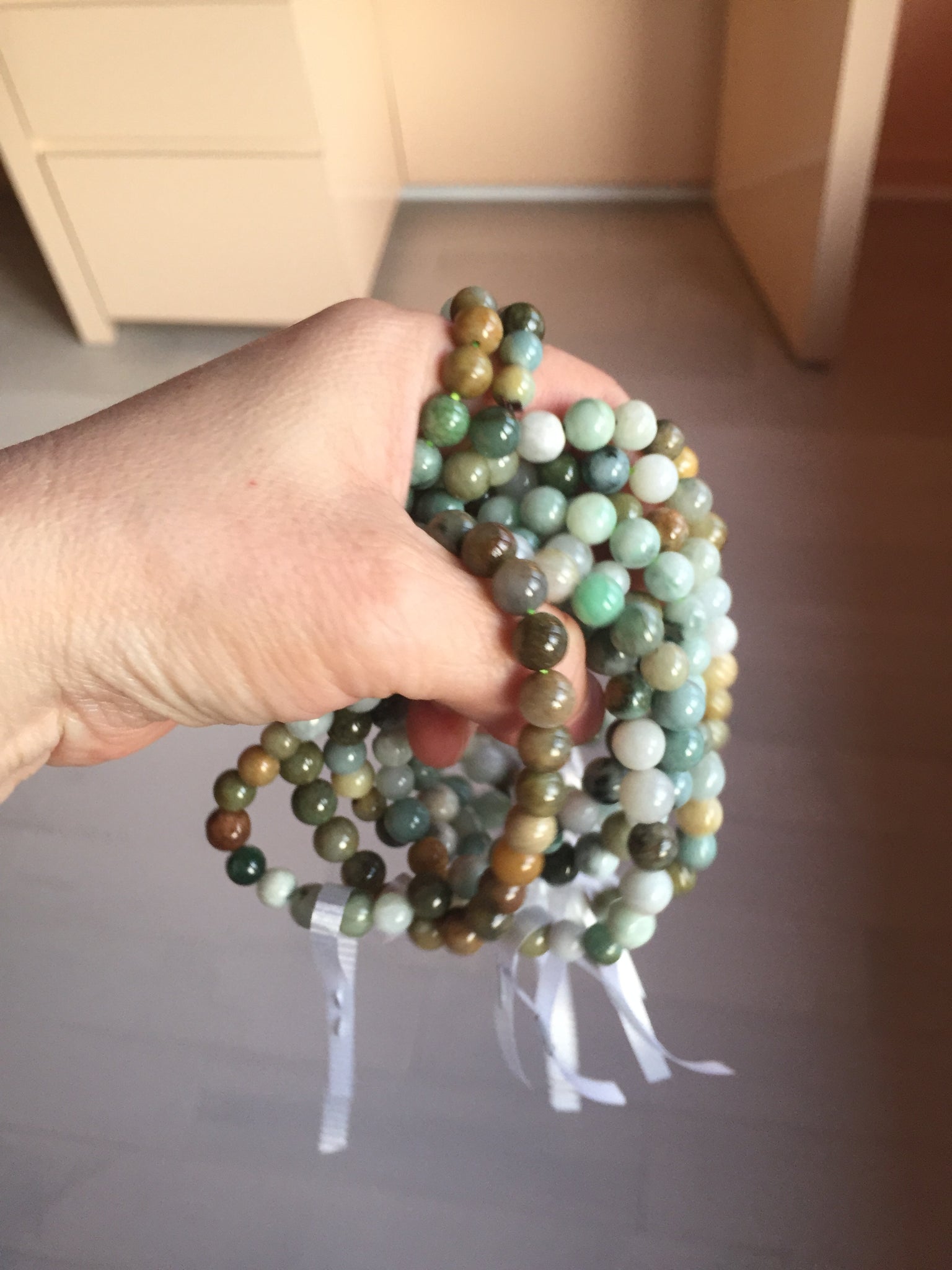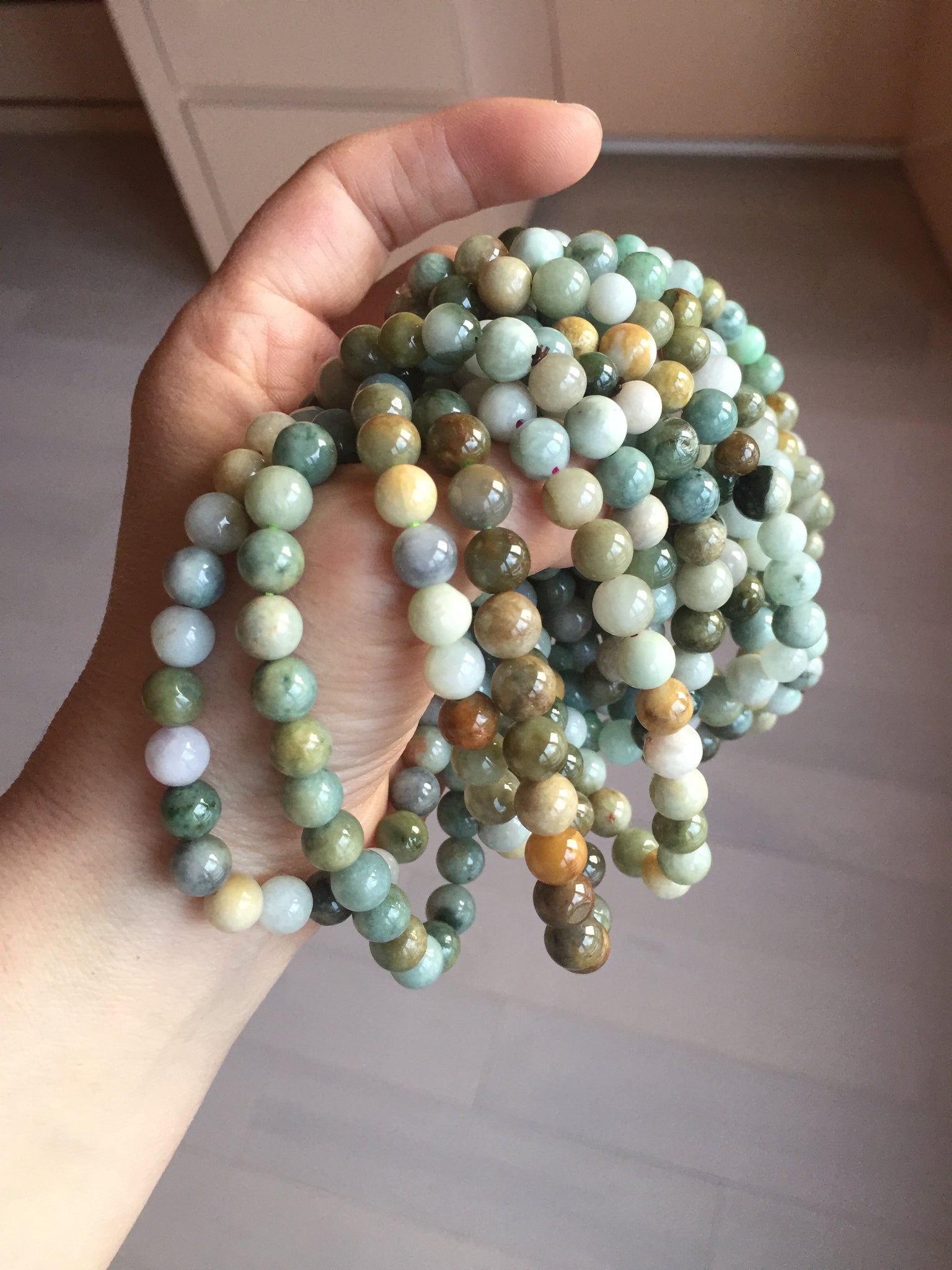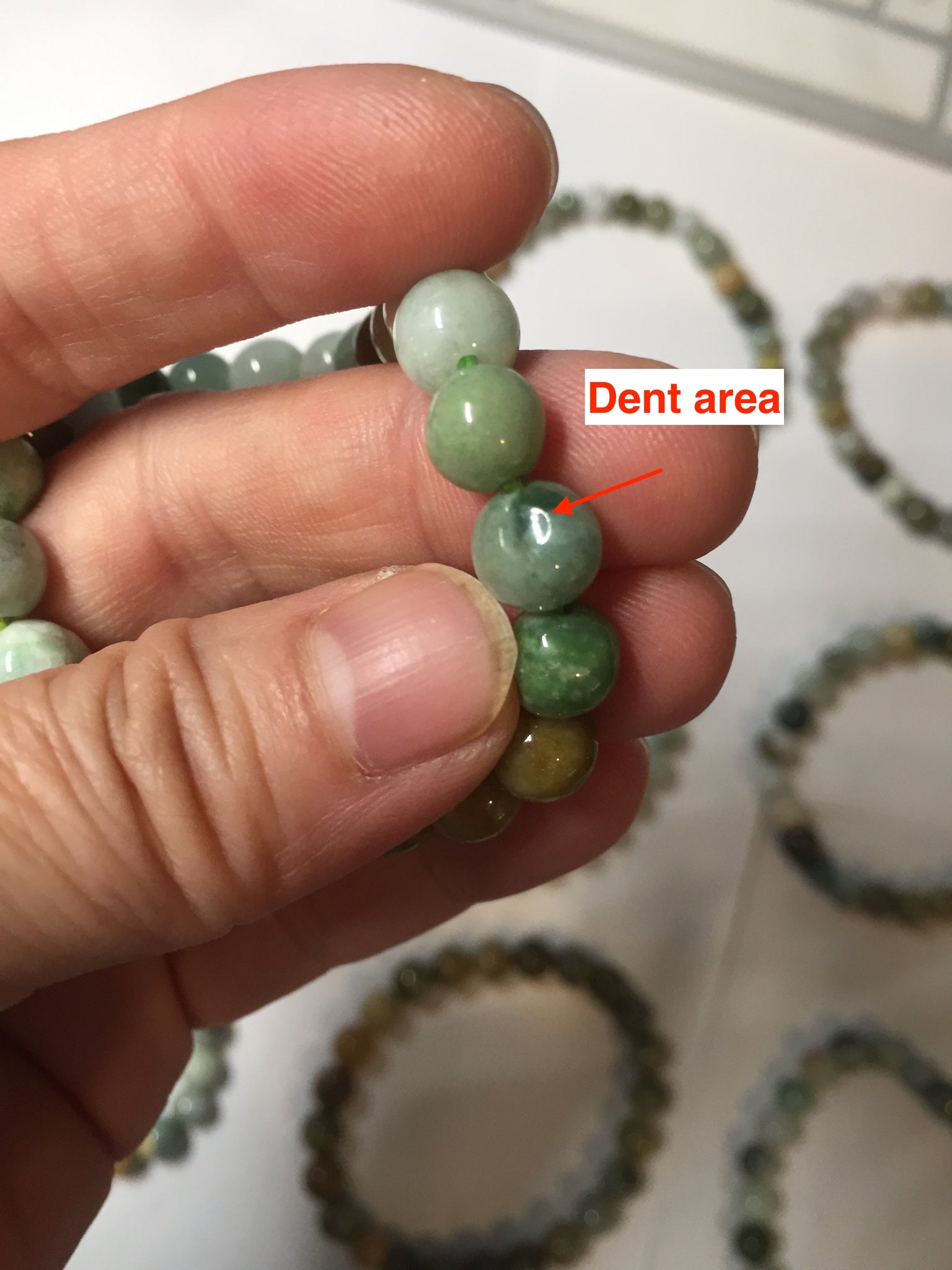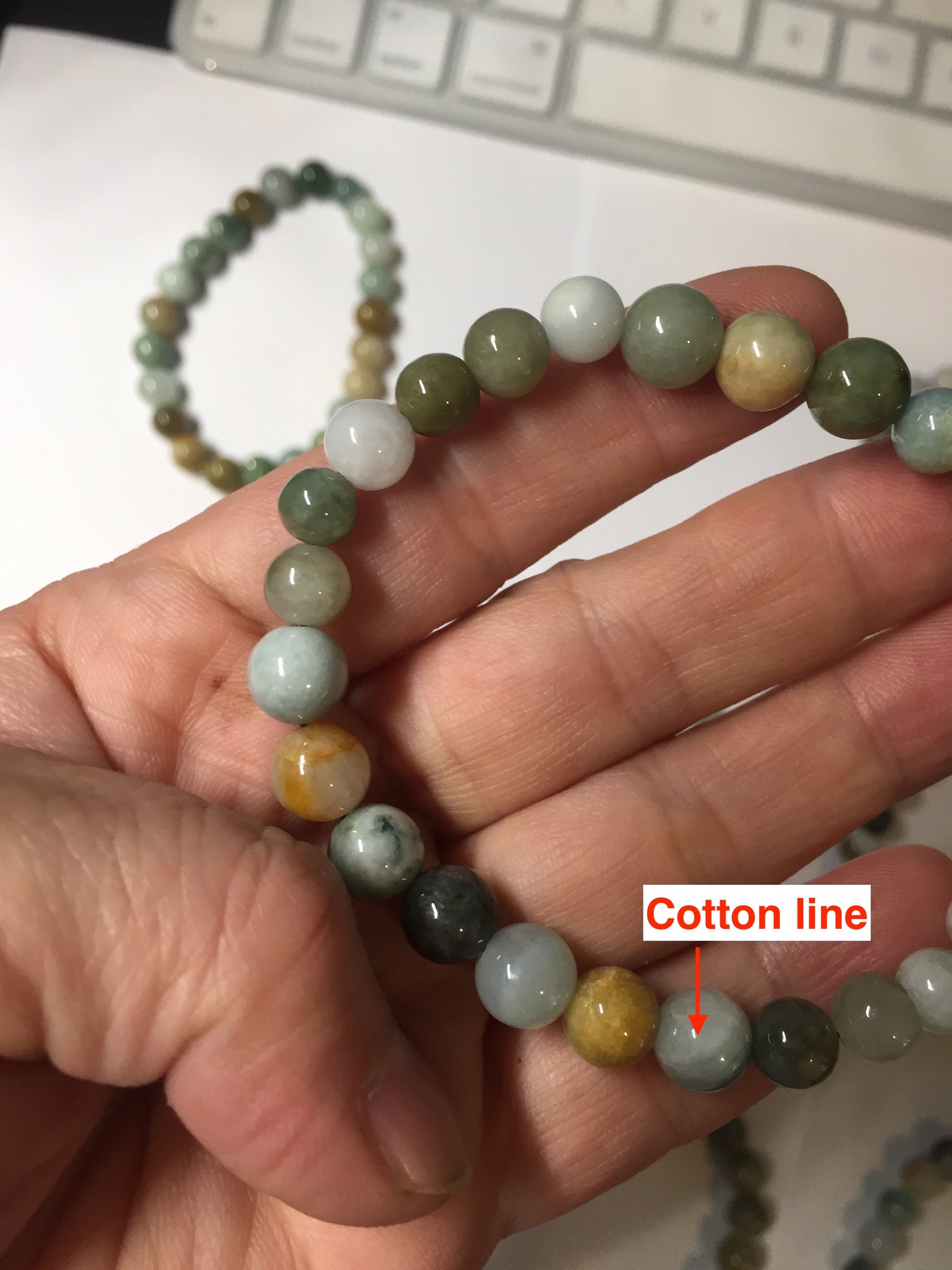 Some beads may have surface cracks, flat surface, mineral band that finger can feel it, cotton lines, not prefect round. The photos are slightly better than actually item.