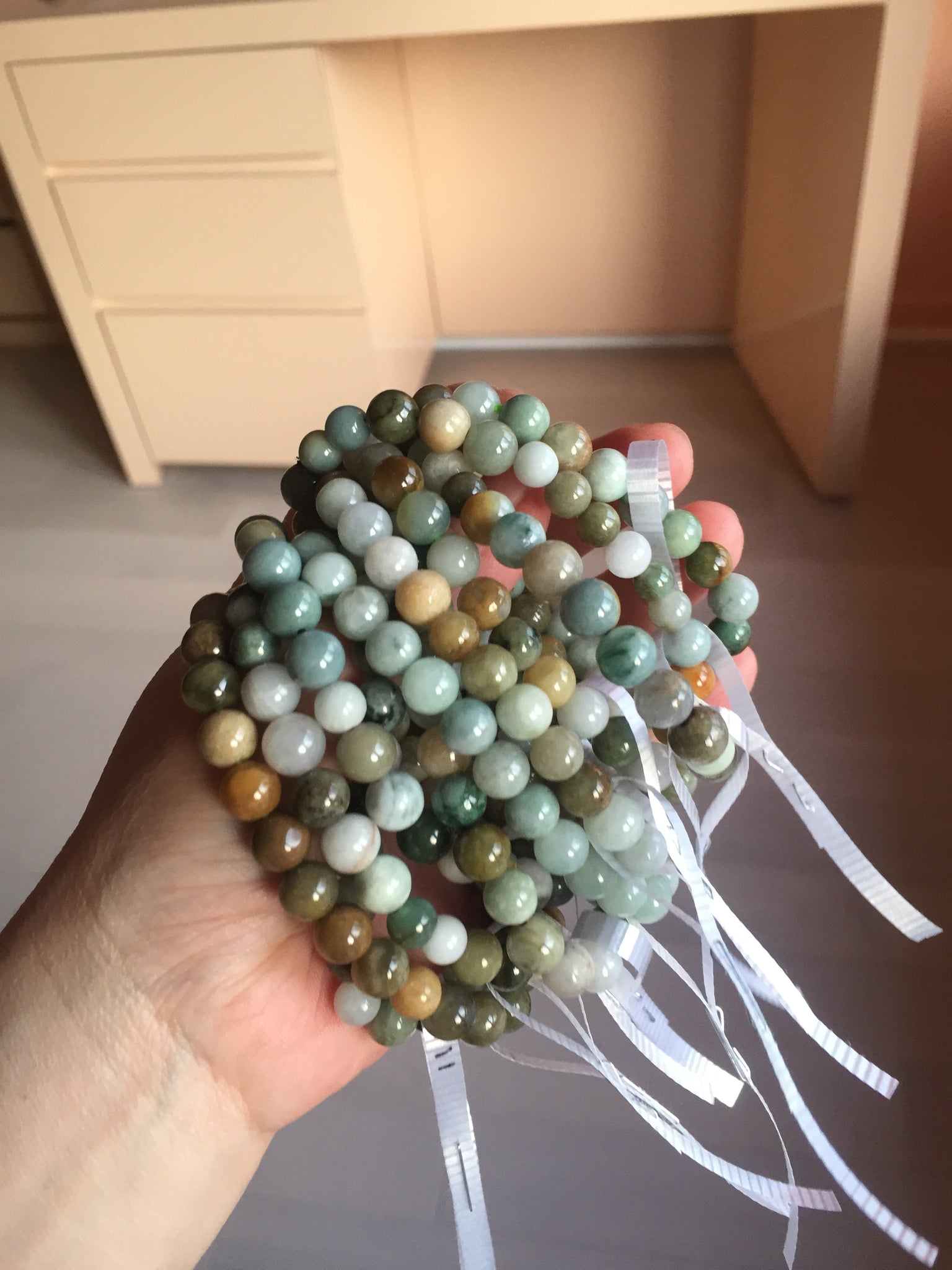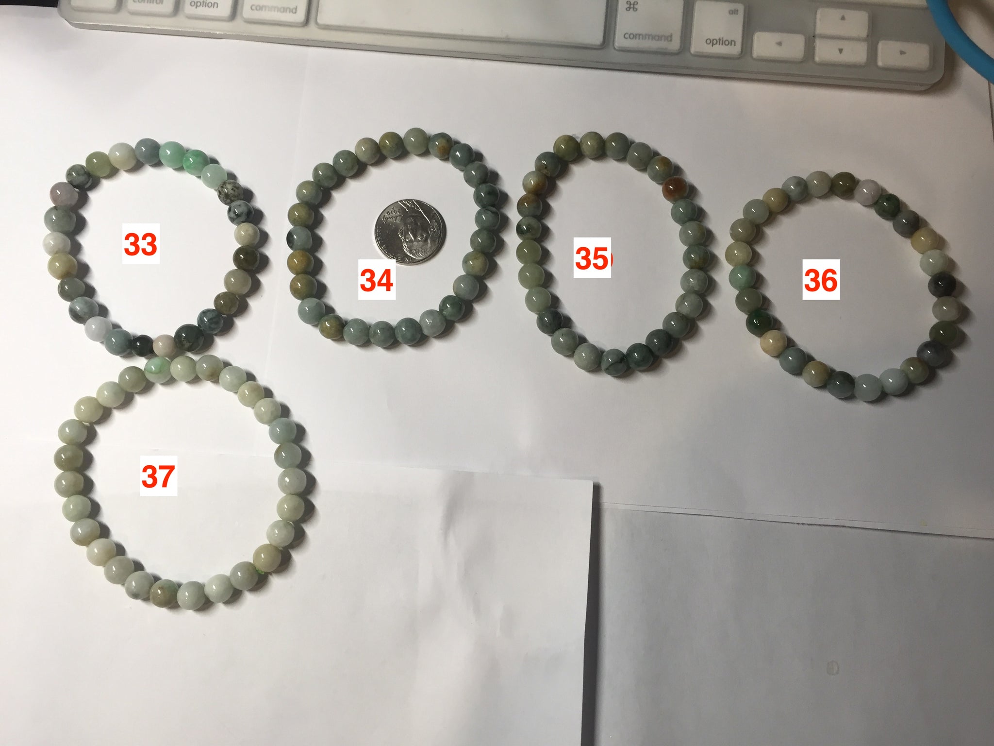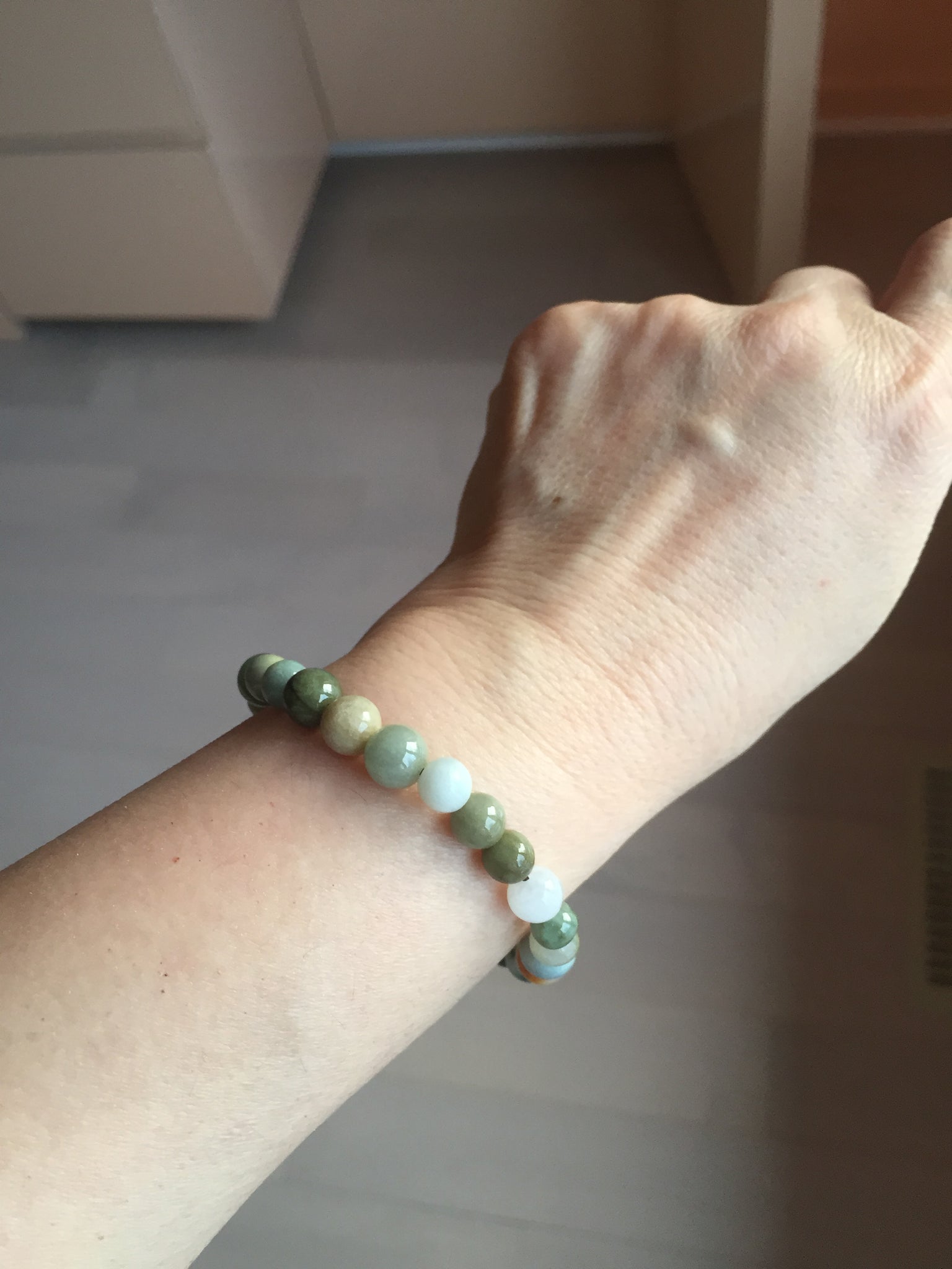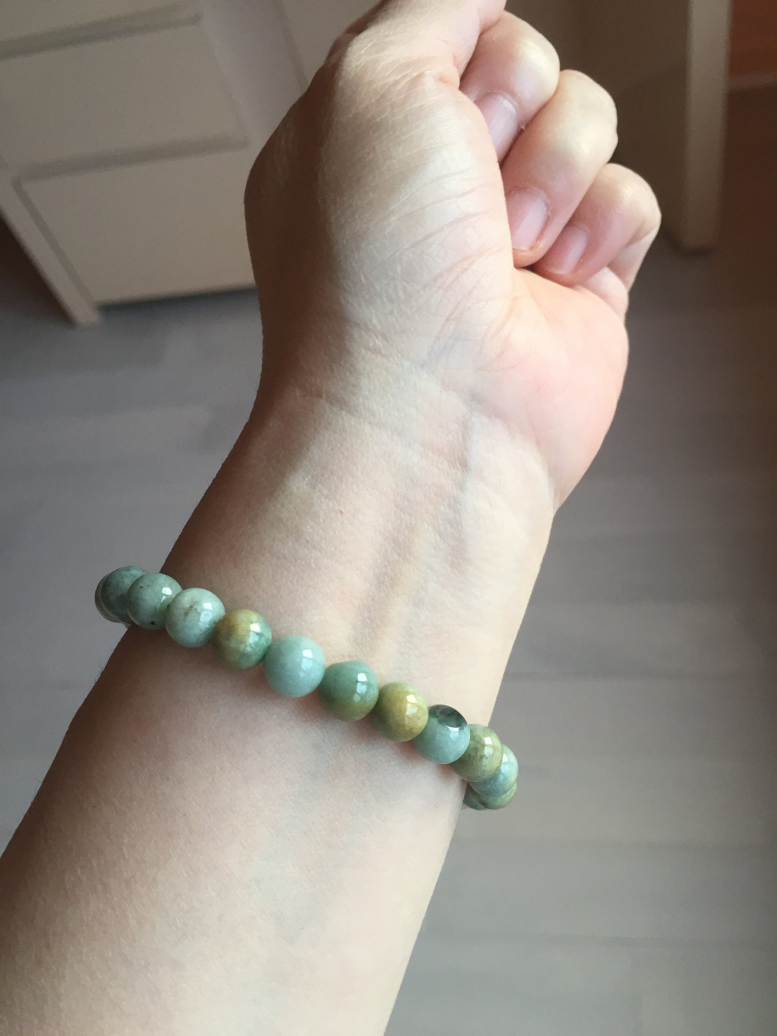 Some beads may have surface cracks, flat surface, mineral band that finger can feel it, cotton lines, not prefect round. The photos are slightly better than actually item.