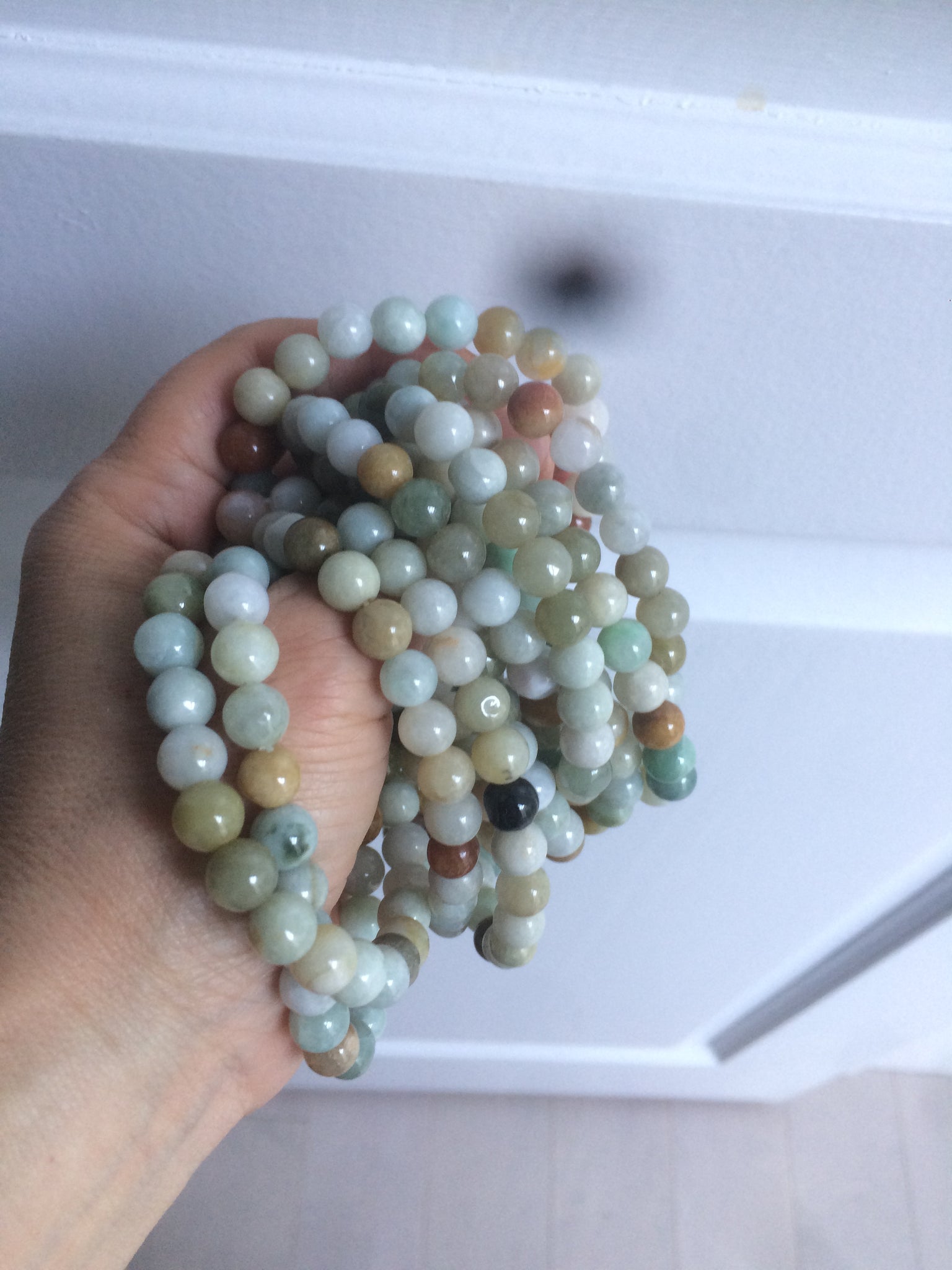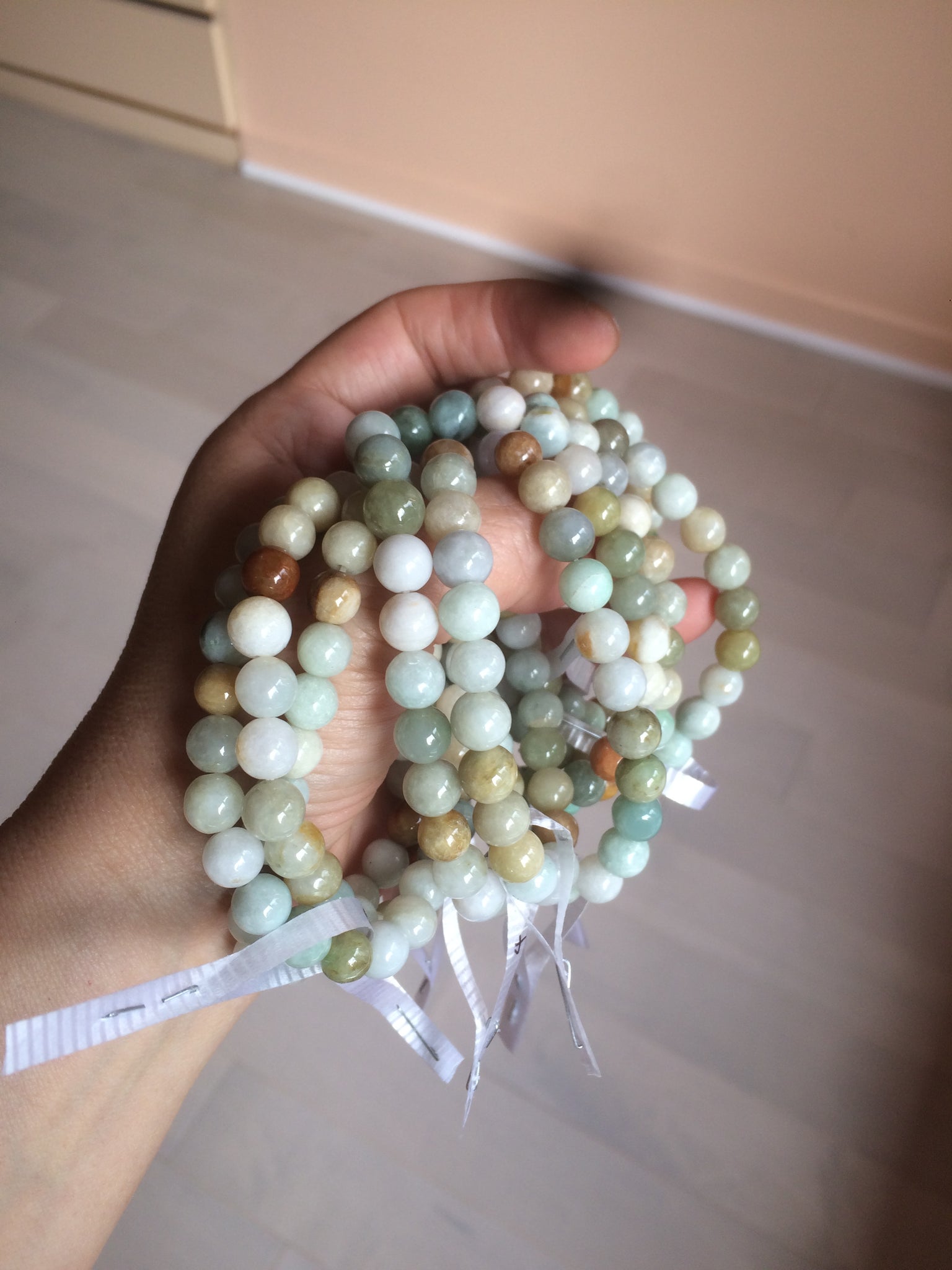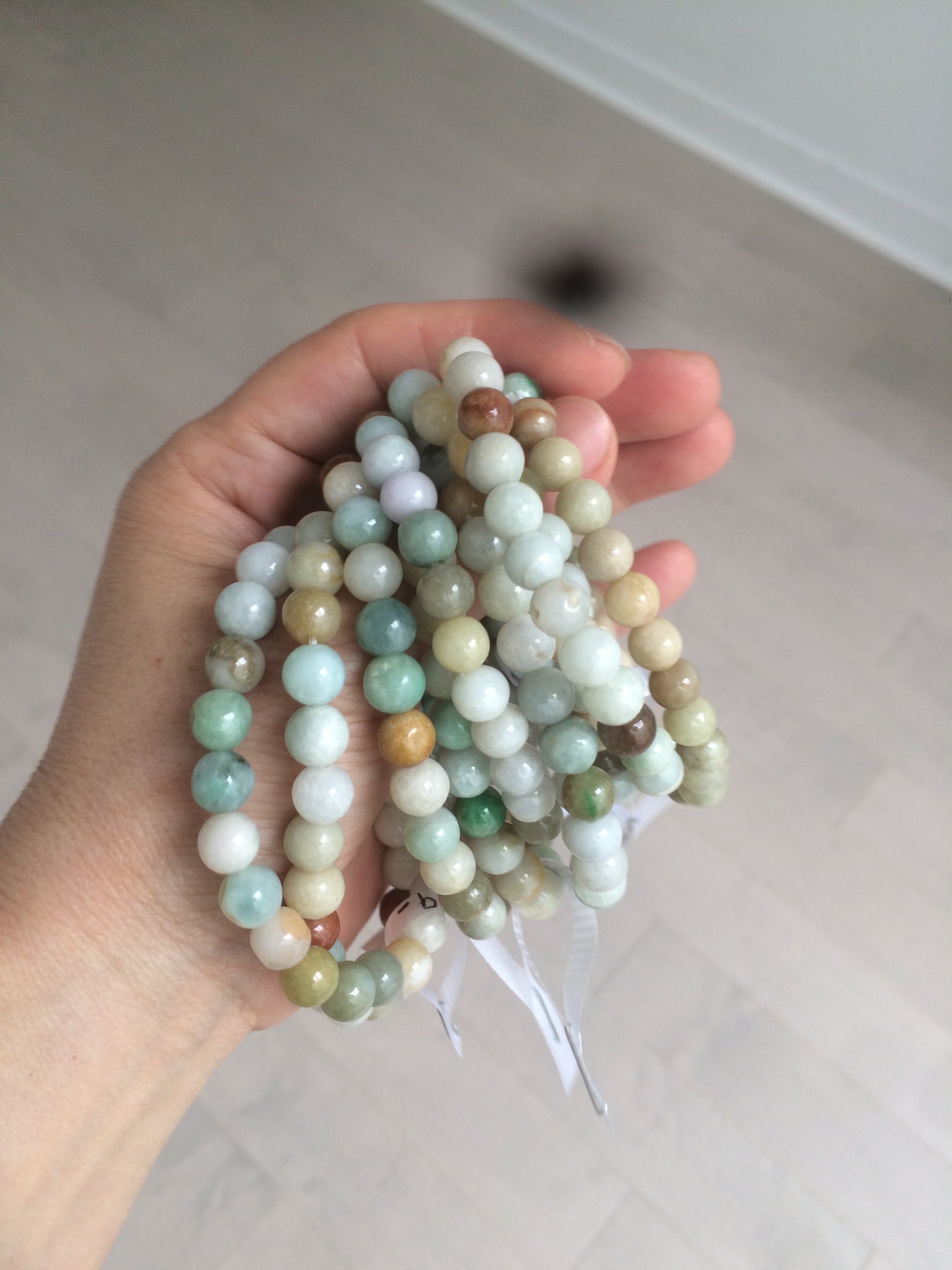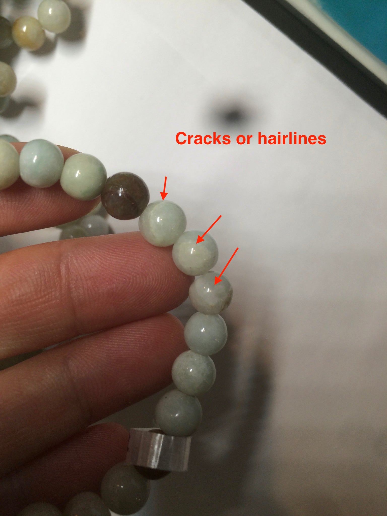 For each bracelet, some beads may have small cracks, hairlines, flat surfaces, color roots, black spots, small notches, not round enough, or not fine texture.