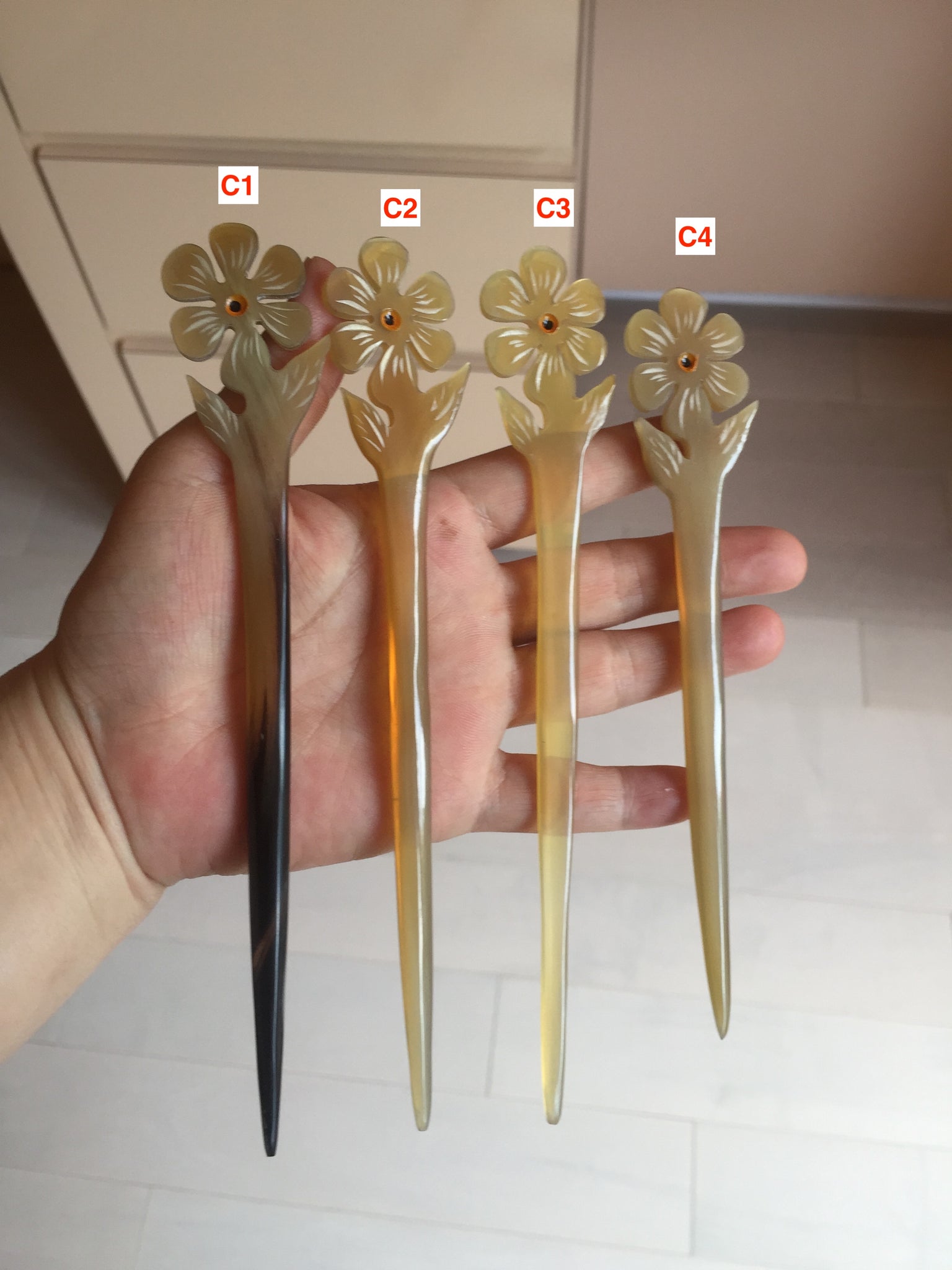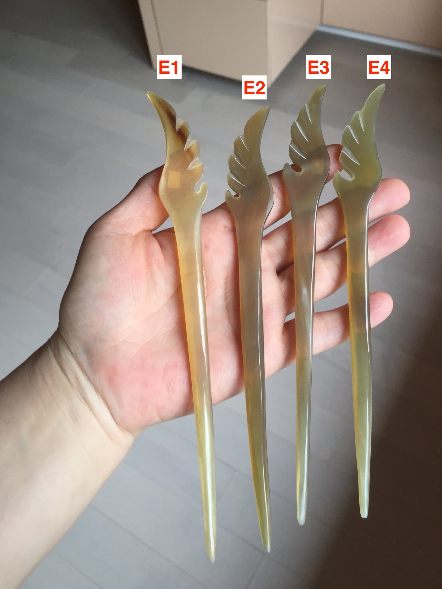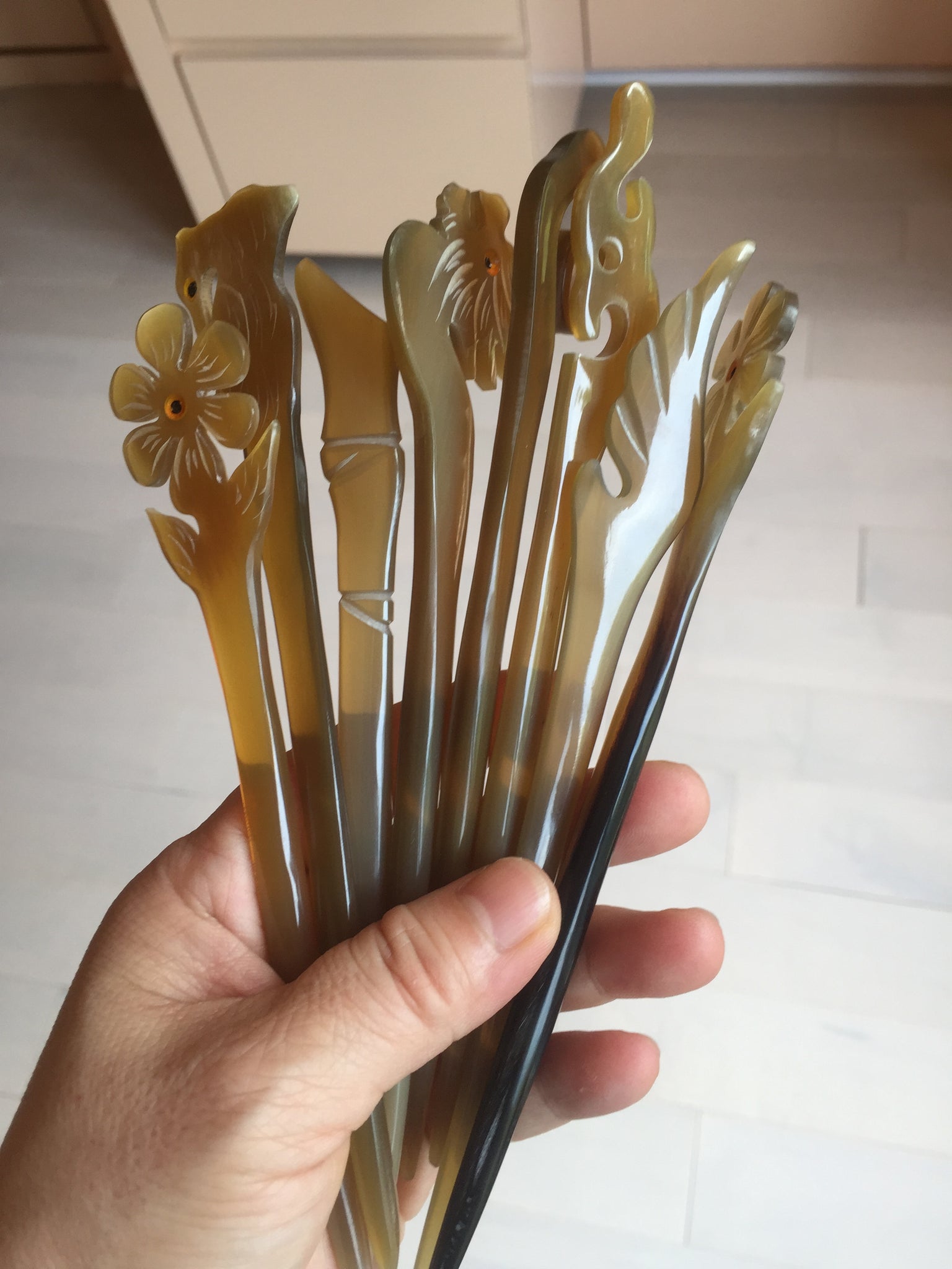 100% Natural Buffalo Horn carved flowers/bamboo/Auspicious Clouds/love bird stick hairpin CB81 (Add-on item! not for sale individually)
