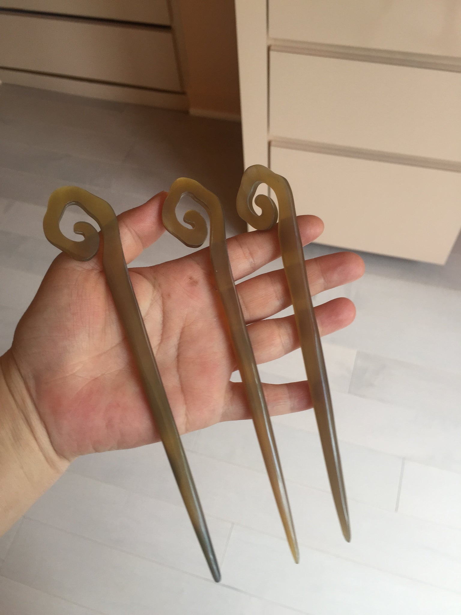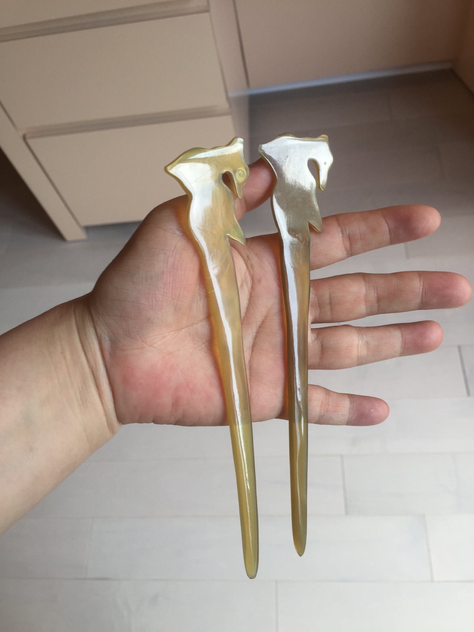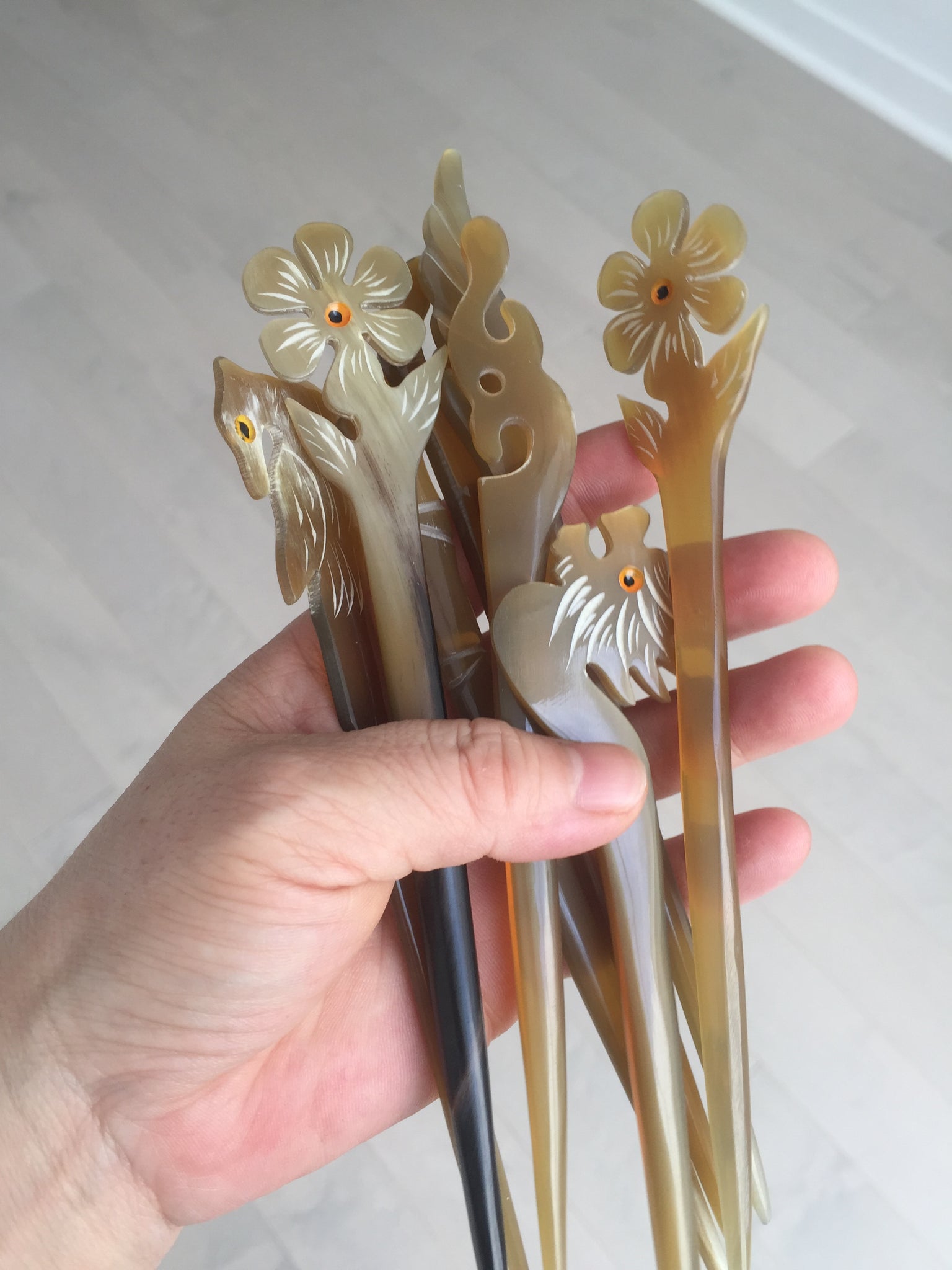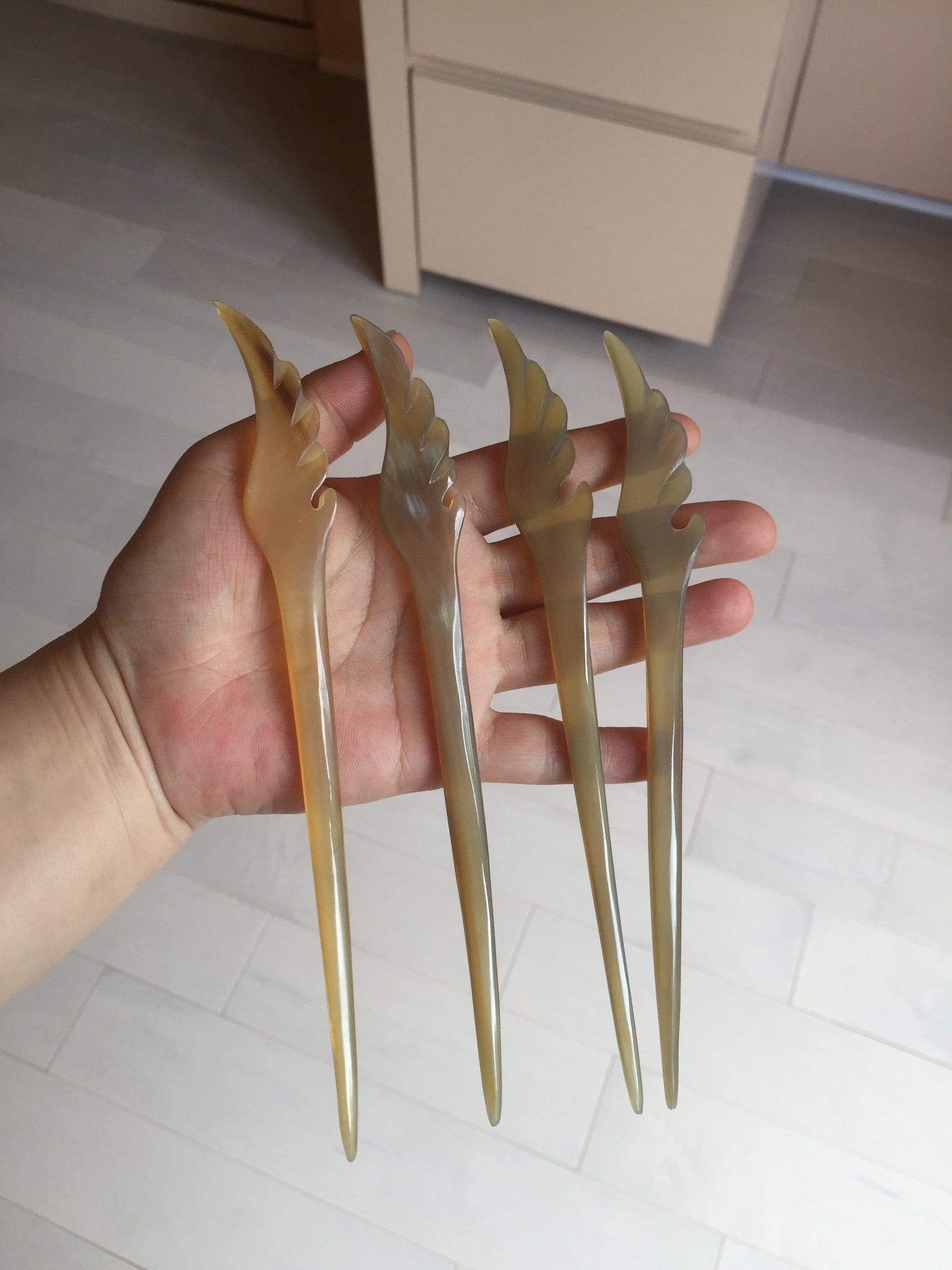 Buffalo Horn stick hair pin: Form yellow buffalo. The product is made from natural horns, each one will have different colors and is unique.