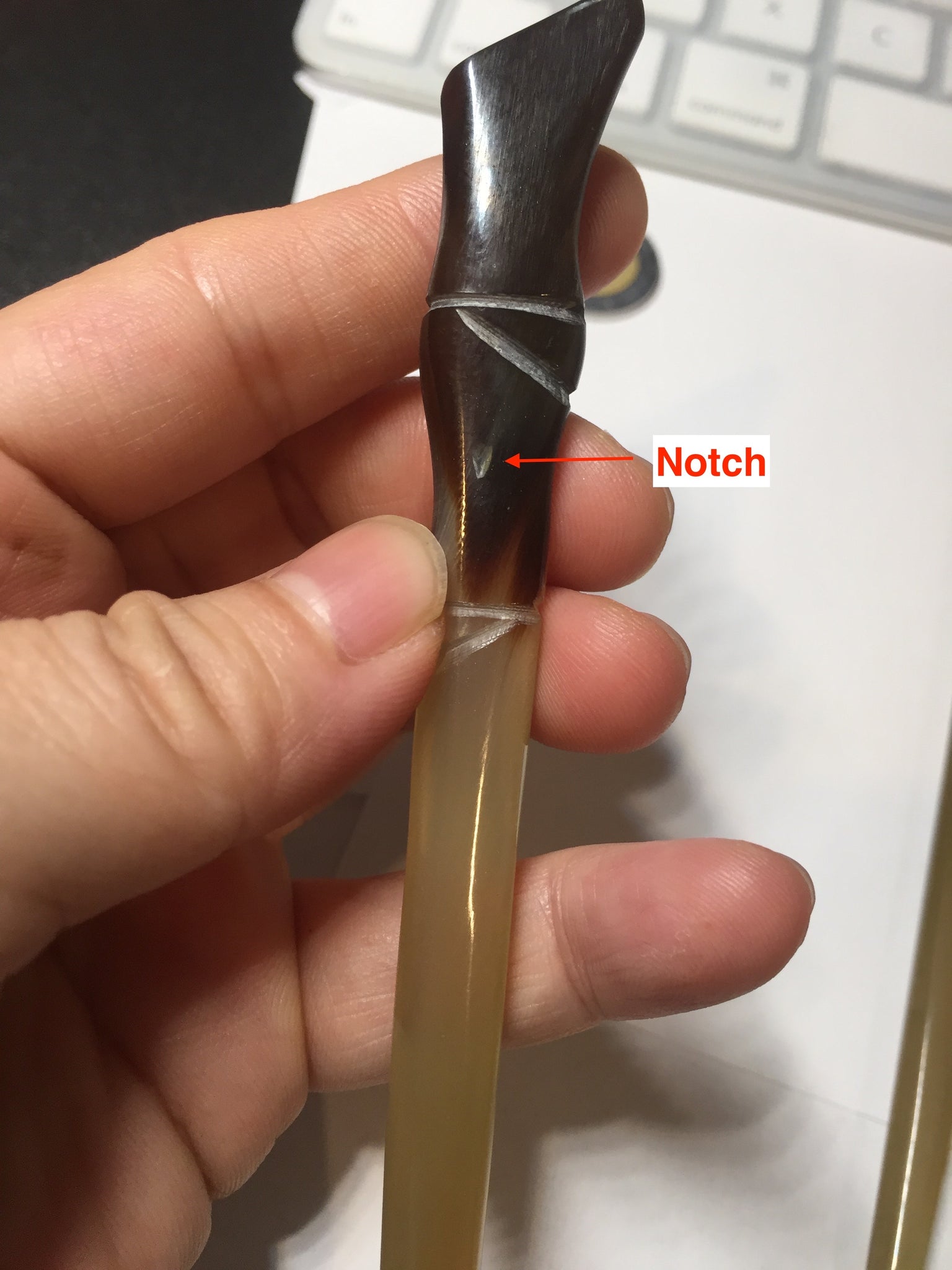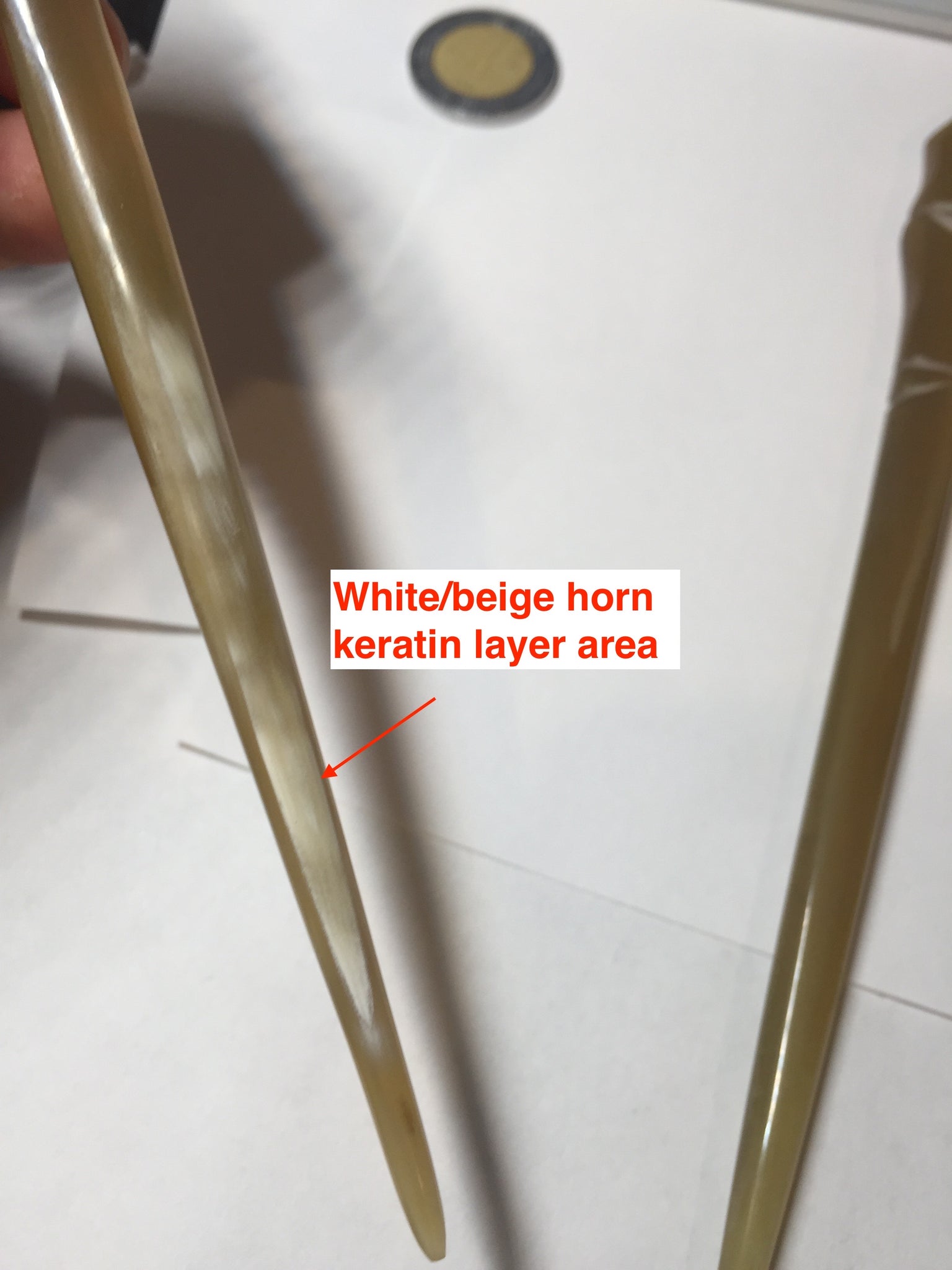 Most of them have natural growth patterns. They are not flaws. Also, may have natural curve since a buffalo horn alway has curve. Some has white/beige areas which is the horn keratin layer. Not a flaw.