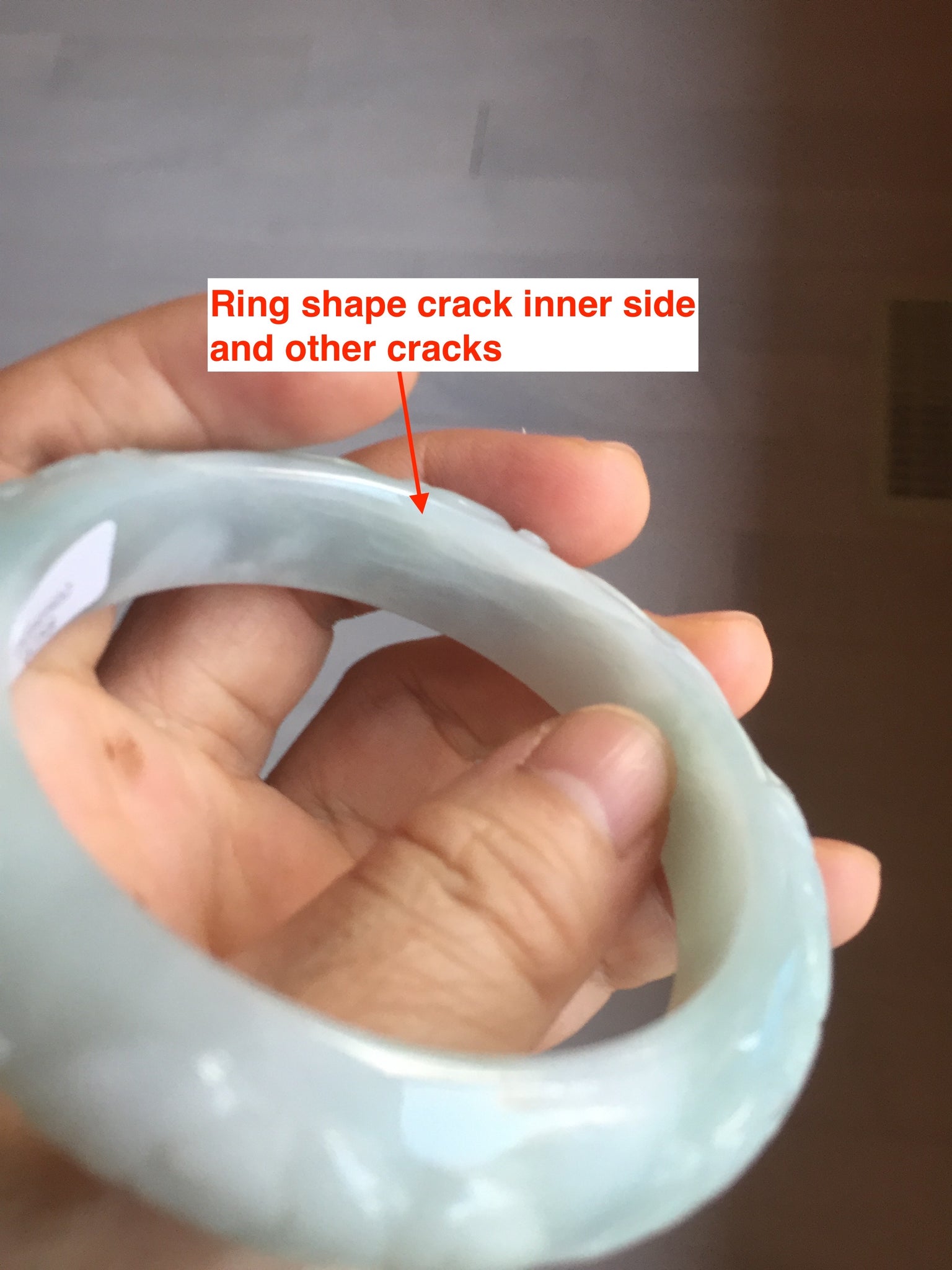 Some cracks. One of them is a ring shape crack. Some hairlines are hidden by the carving. Guaranteed solid. Some cotton spots and cotton lines.