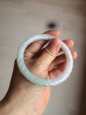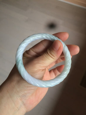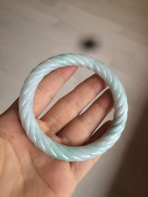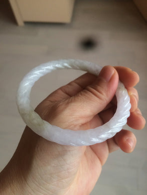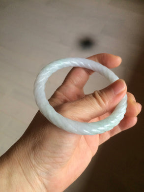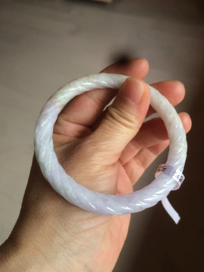 57mm Certified 100% Natural type A fresh light green/white/purple vintage twist style Jadeite Jade bangle KS97-0779