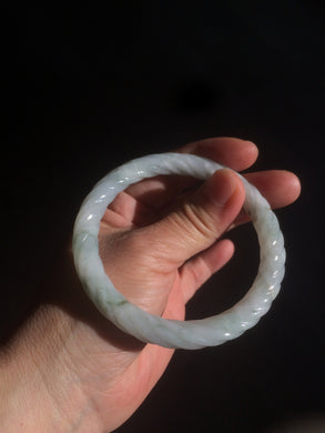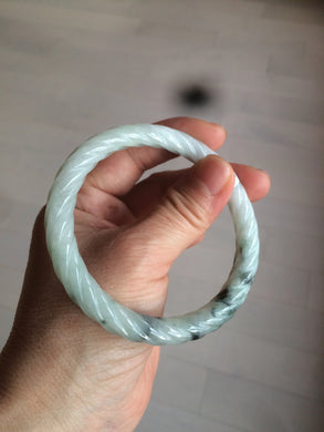58mm Certified 100% Natural type A green/white/gray vintage twist style Jadeite Jade bangle PB136-7972